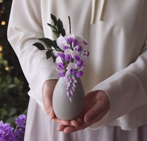 ◆粘土のお花◆ 藤の花&信楽焼(花瓶) F1161