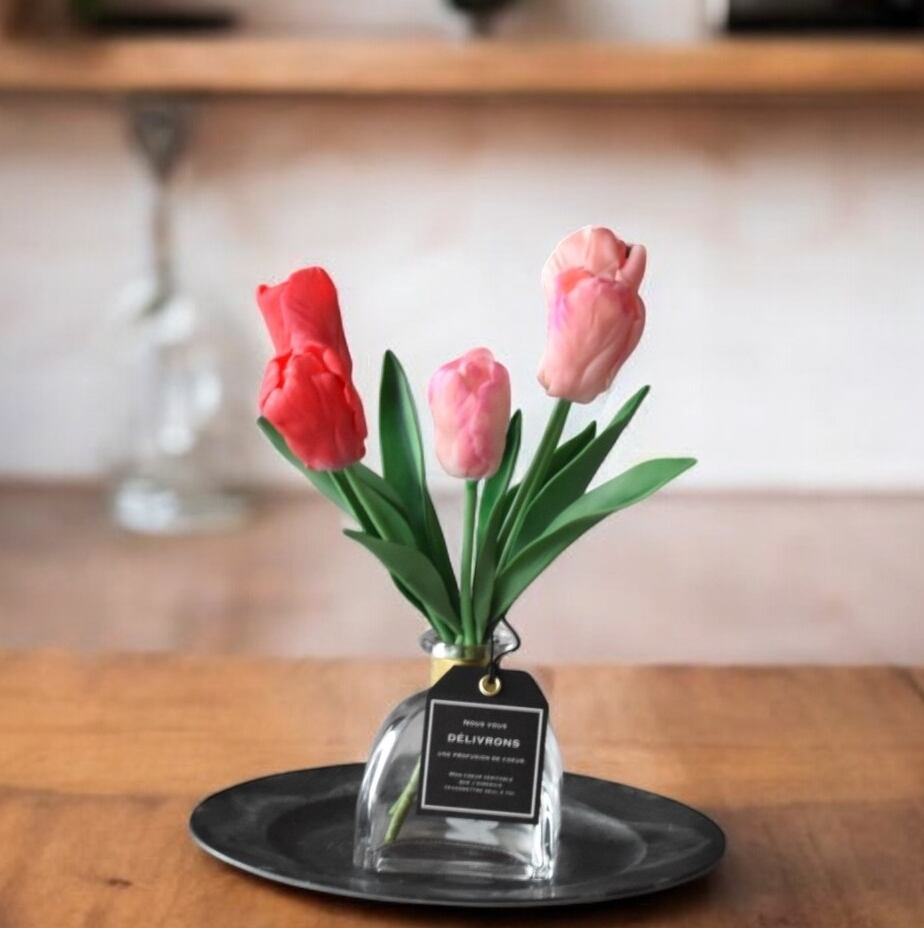◆粘土のお花◆ チューリップ レッド&ピンク T1182