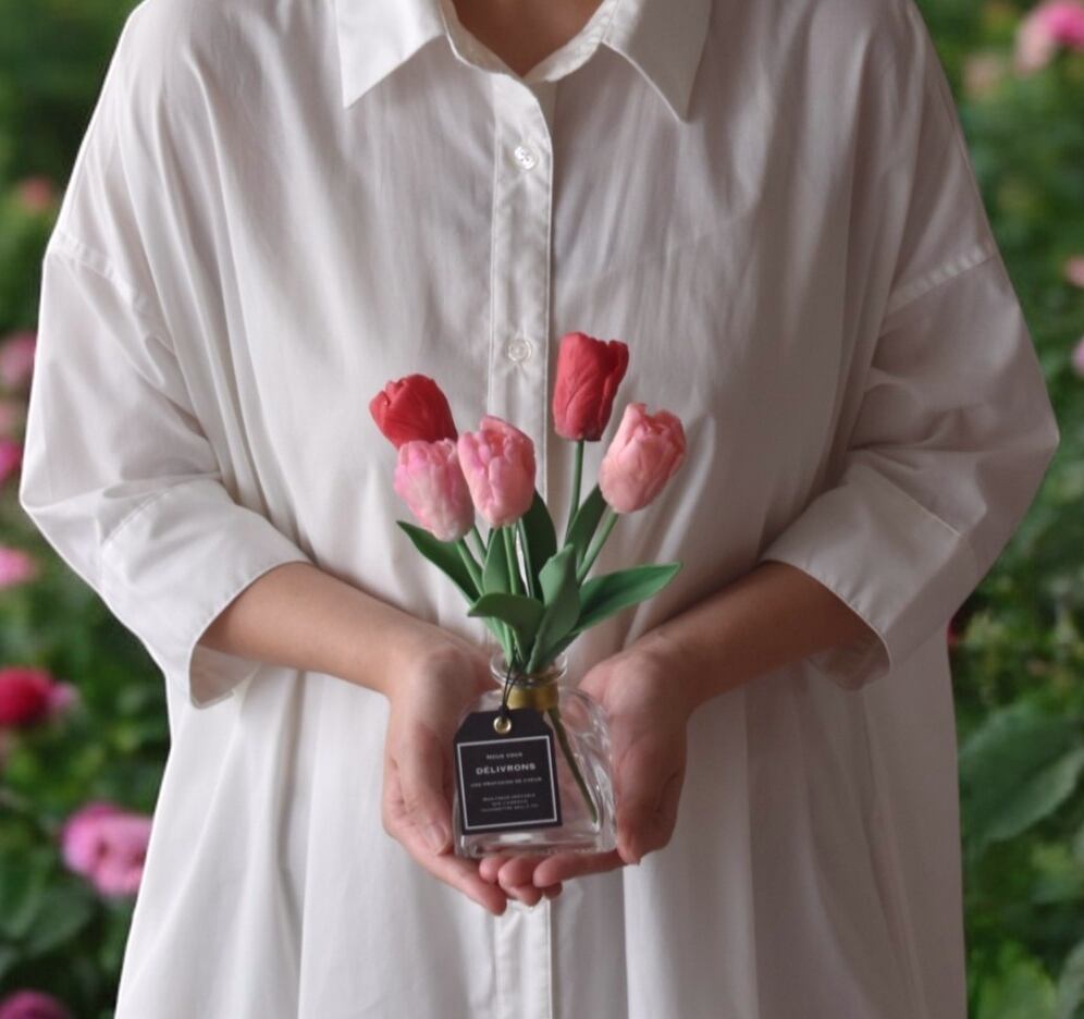 お気に入りのコーナーやキャビネットに飾って、いつでも可愛らしい花姿をお楽しみください。