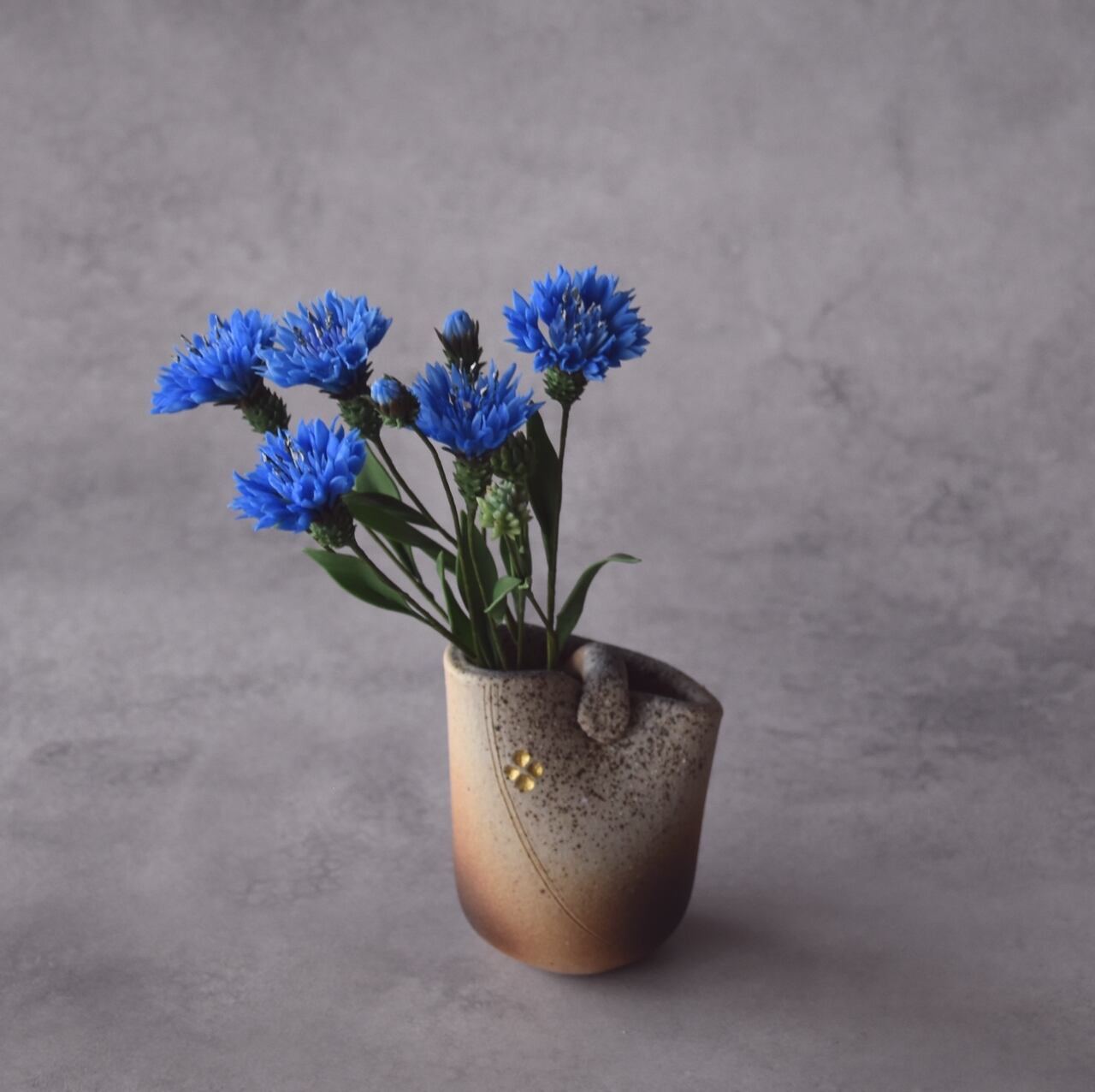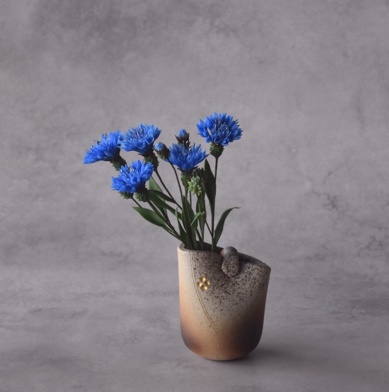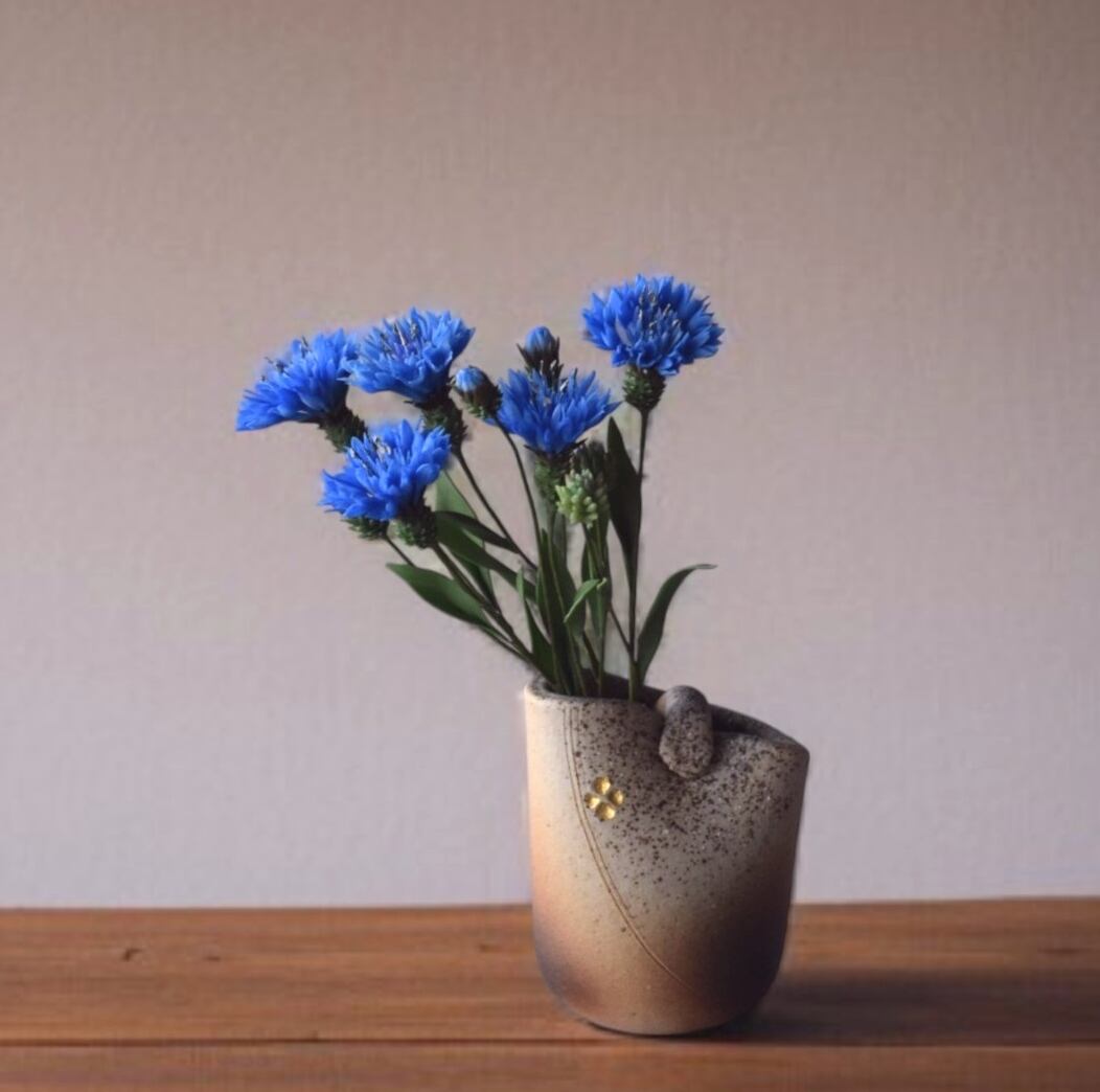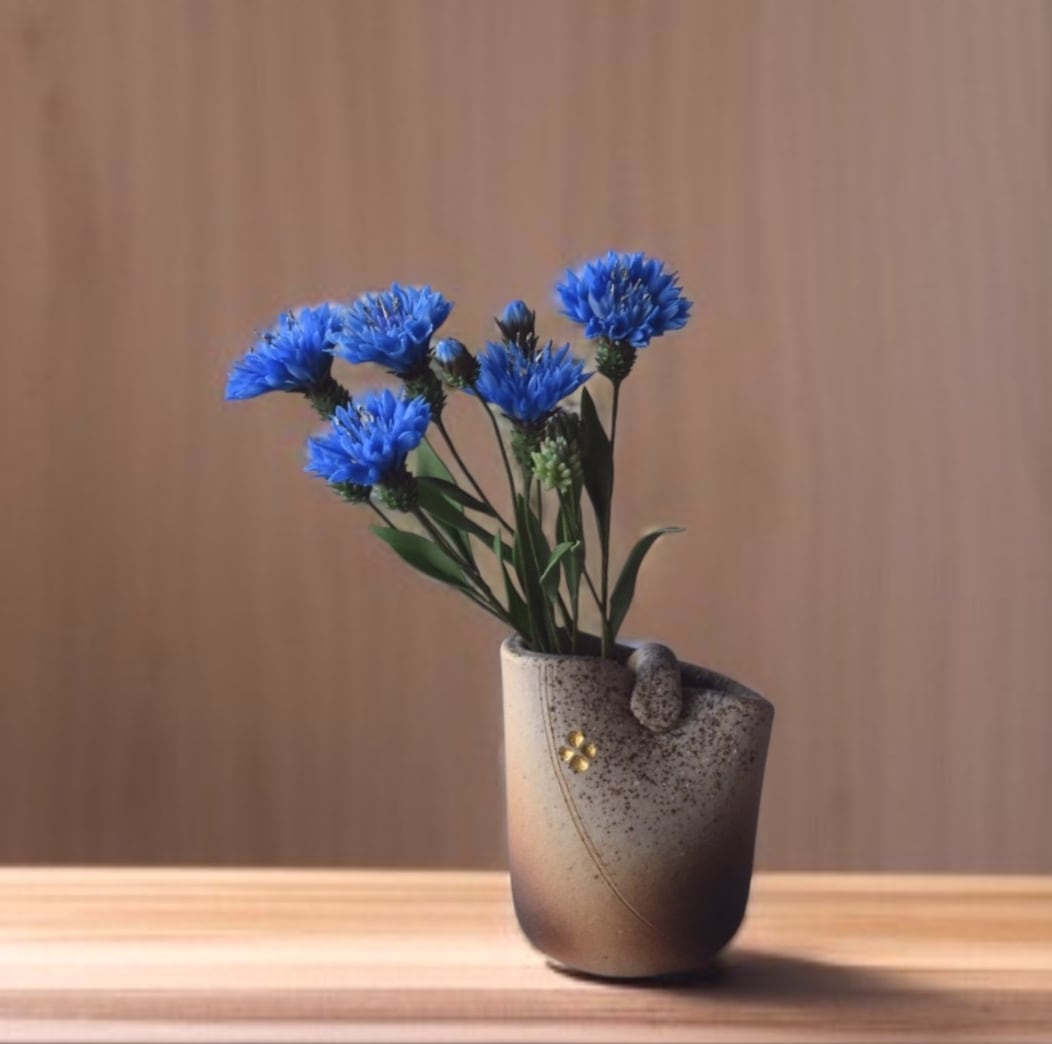◆粘土のお花◆ ヤグルマギク(矢車菊)(花瓶 信楽焼)T1216