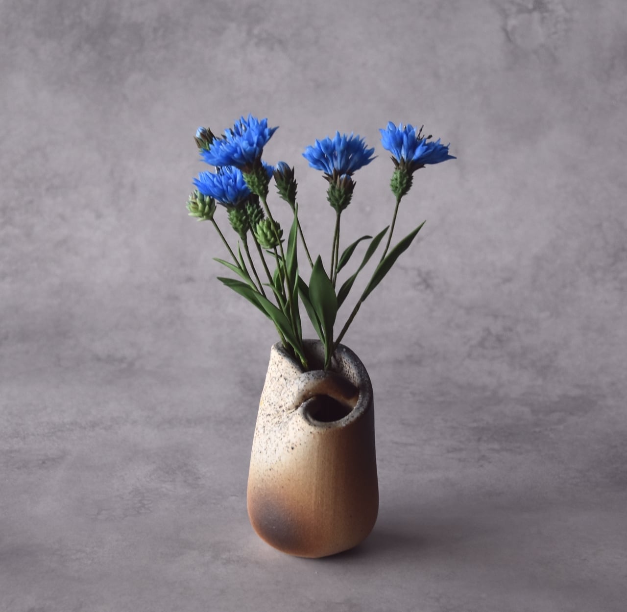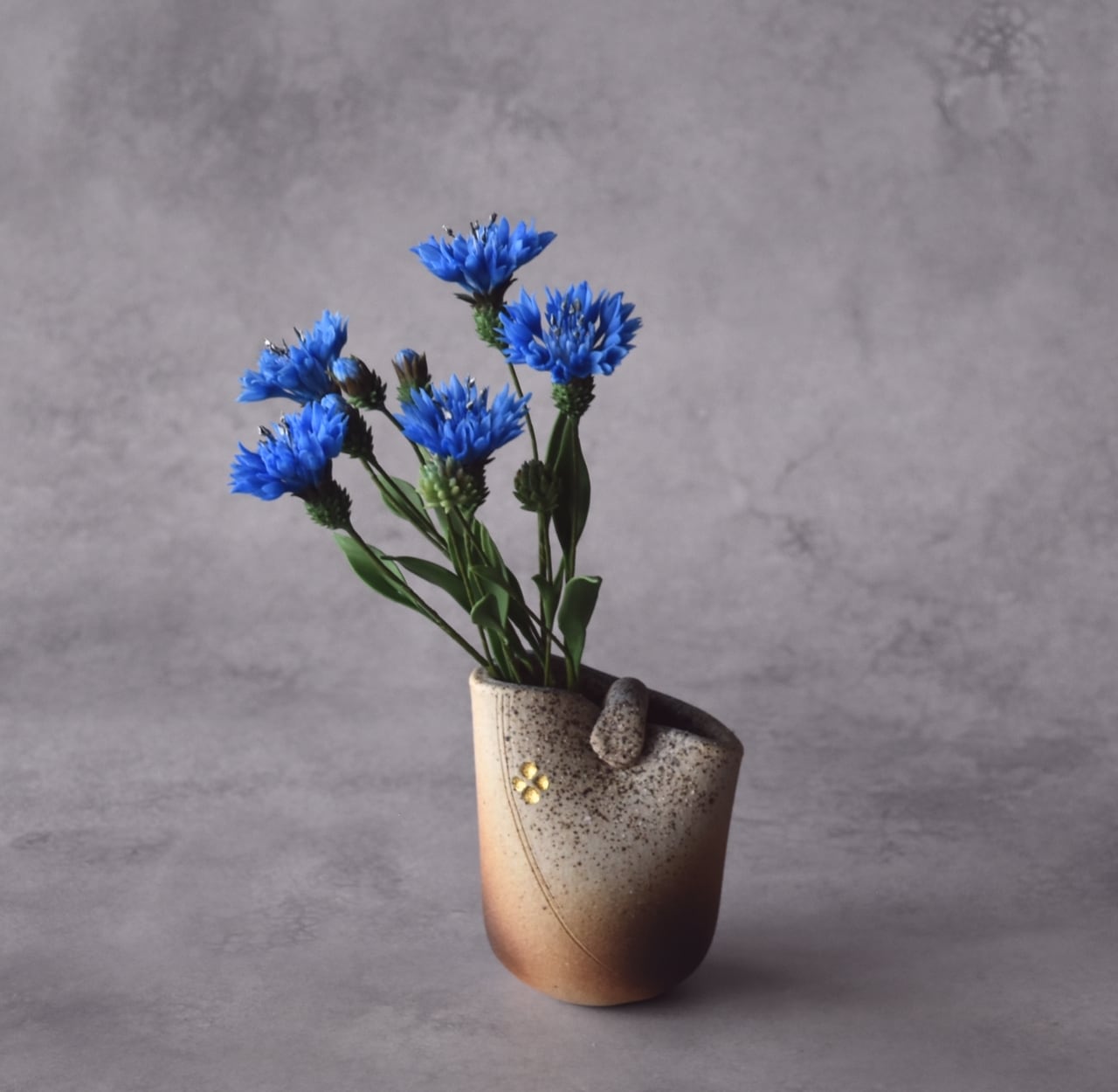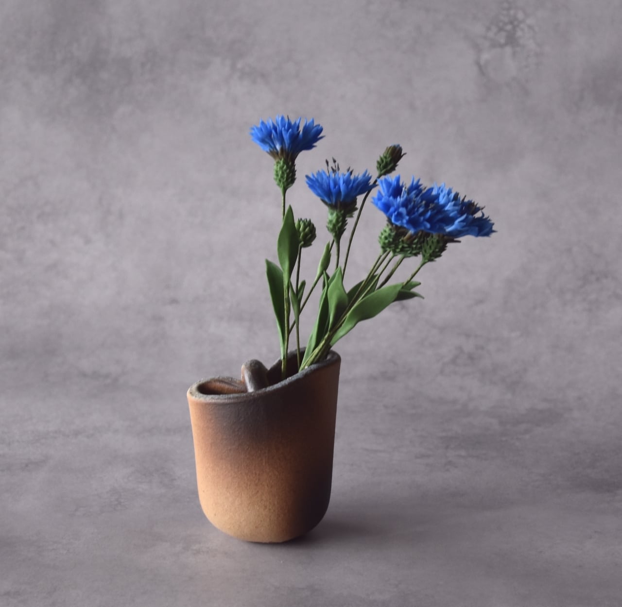 ◆粘土のお花◆ ヤグルマギク(矢車菊)(花瓶 信楽焼)T1216