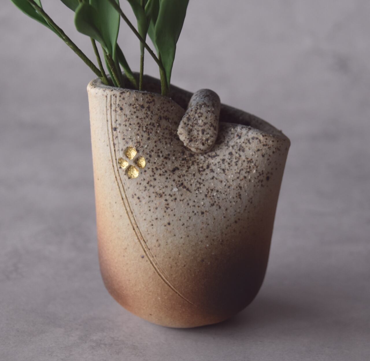 花器は小ぶりなサイズの信楽焼です。