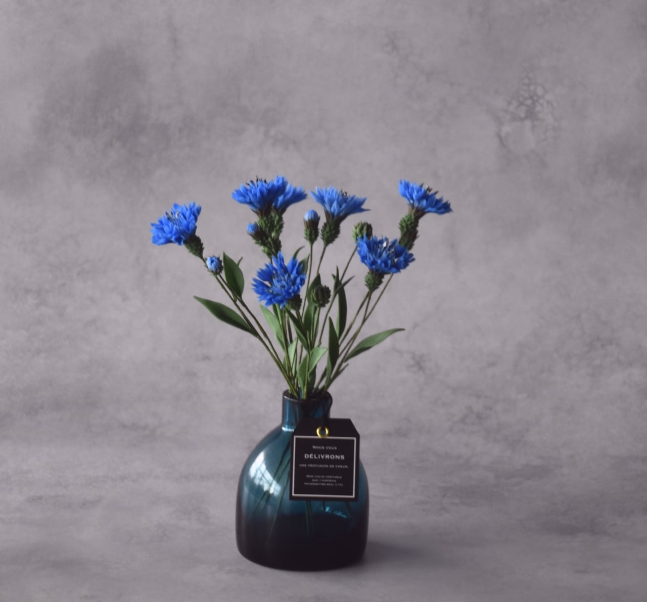 フラワーベースはリサイクルガラスが使用されており、環境にも優しく、シンプルでどっしりとした重厚感があるボトルです。カラーはダークブルーです。