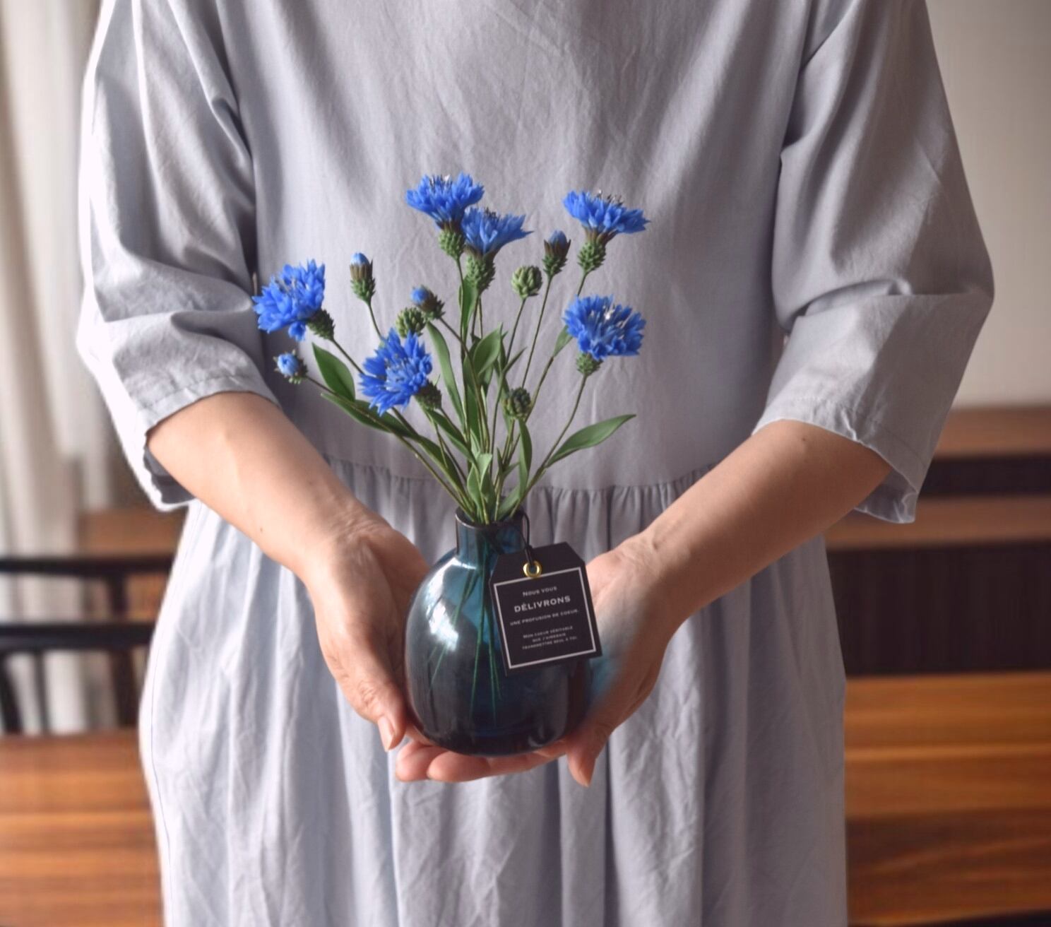 お気に入りのコーナーやキャビネットに飾って、いつでも可愛らしい花姿をお楽しみください。