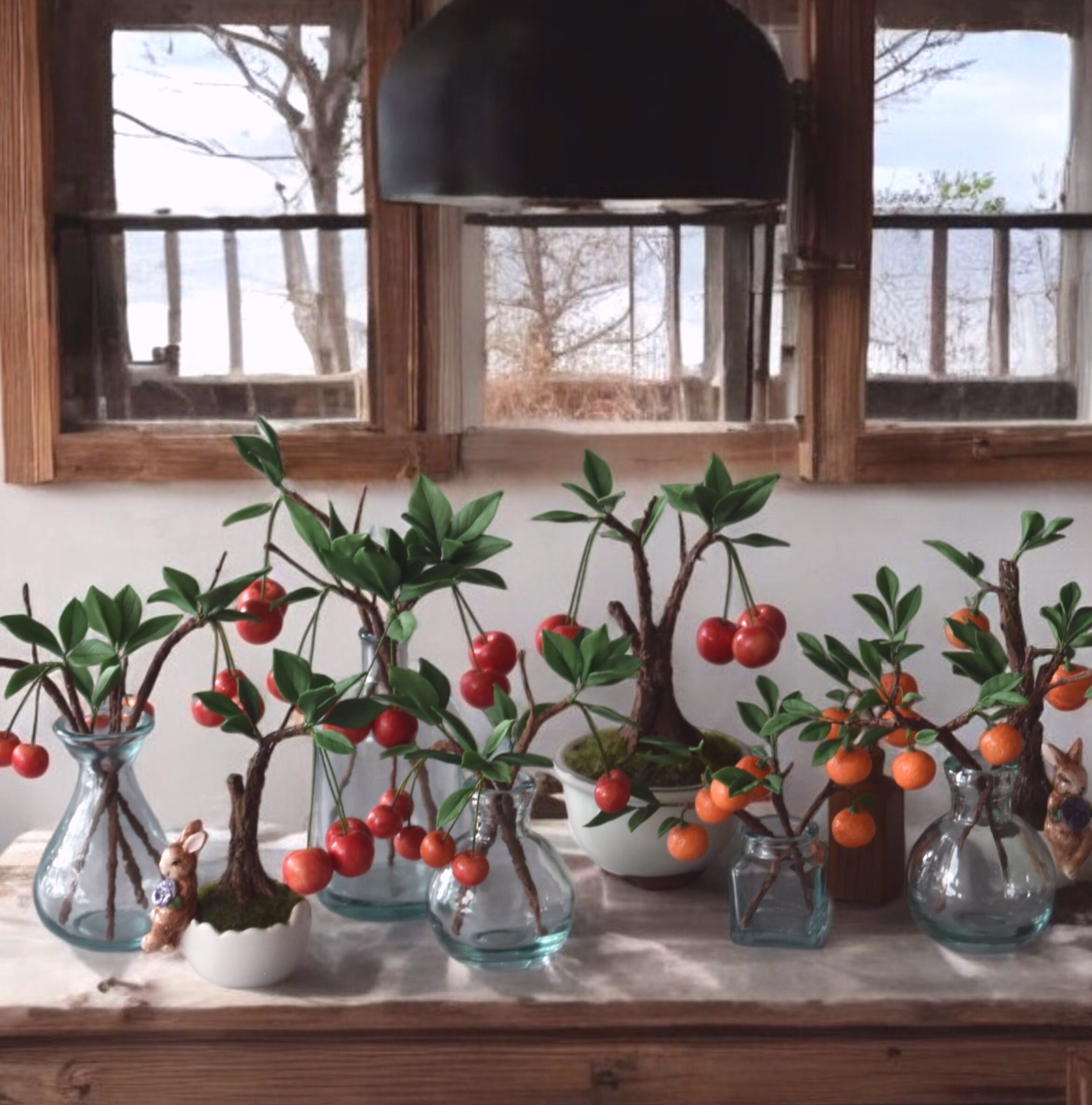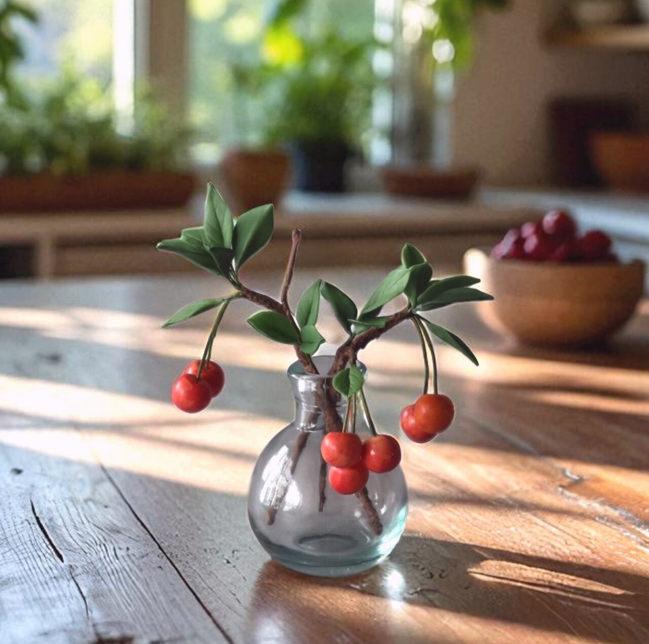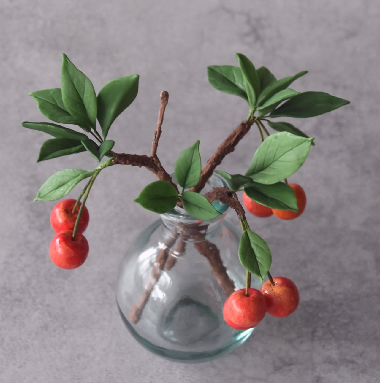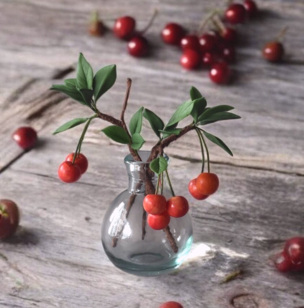 ◆粘土のお花◆ ミニサイズ♪ さくらんぼ S1280