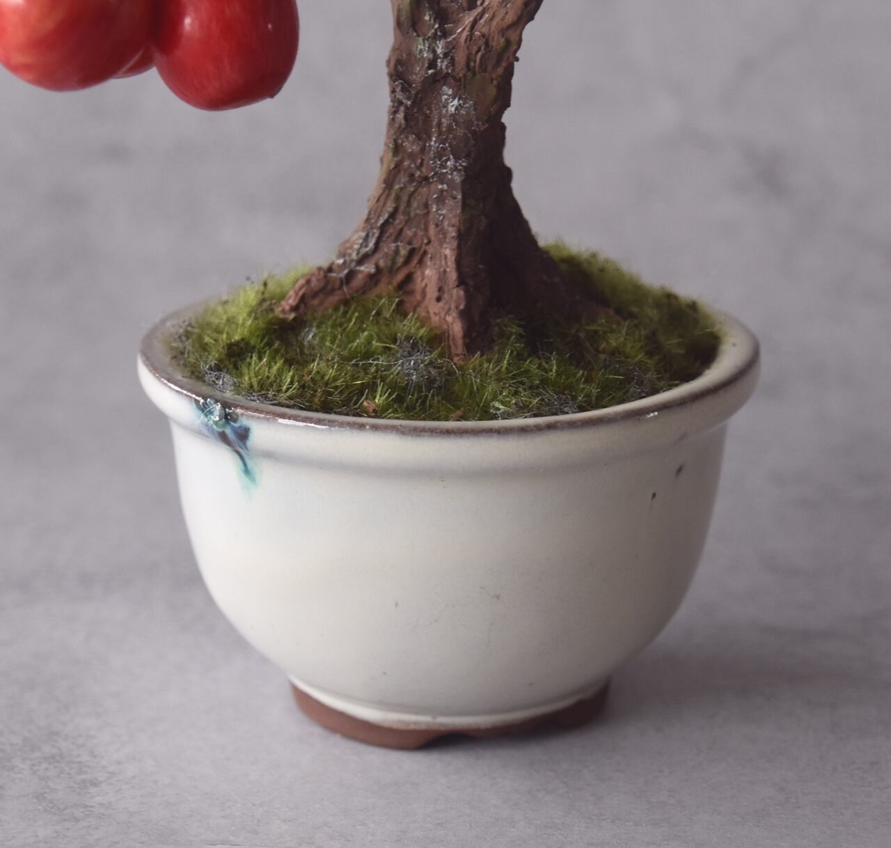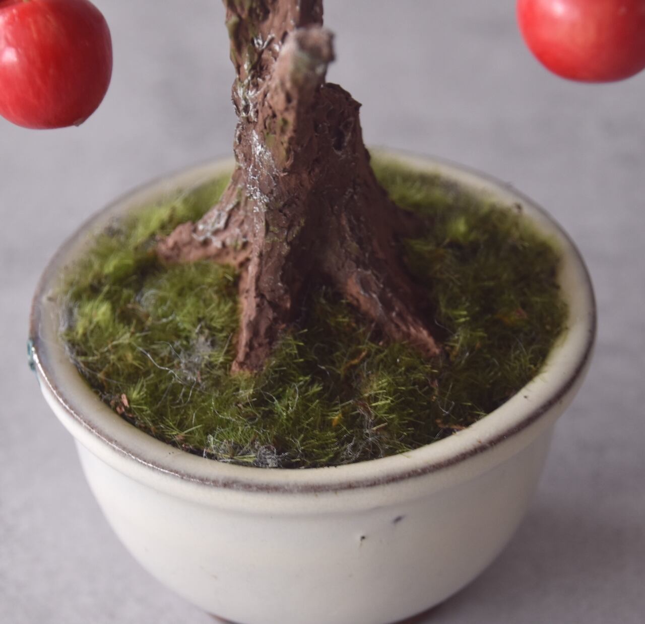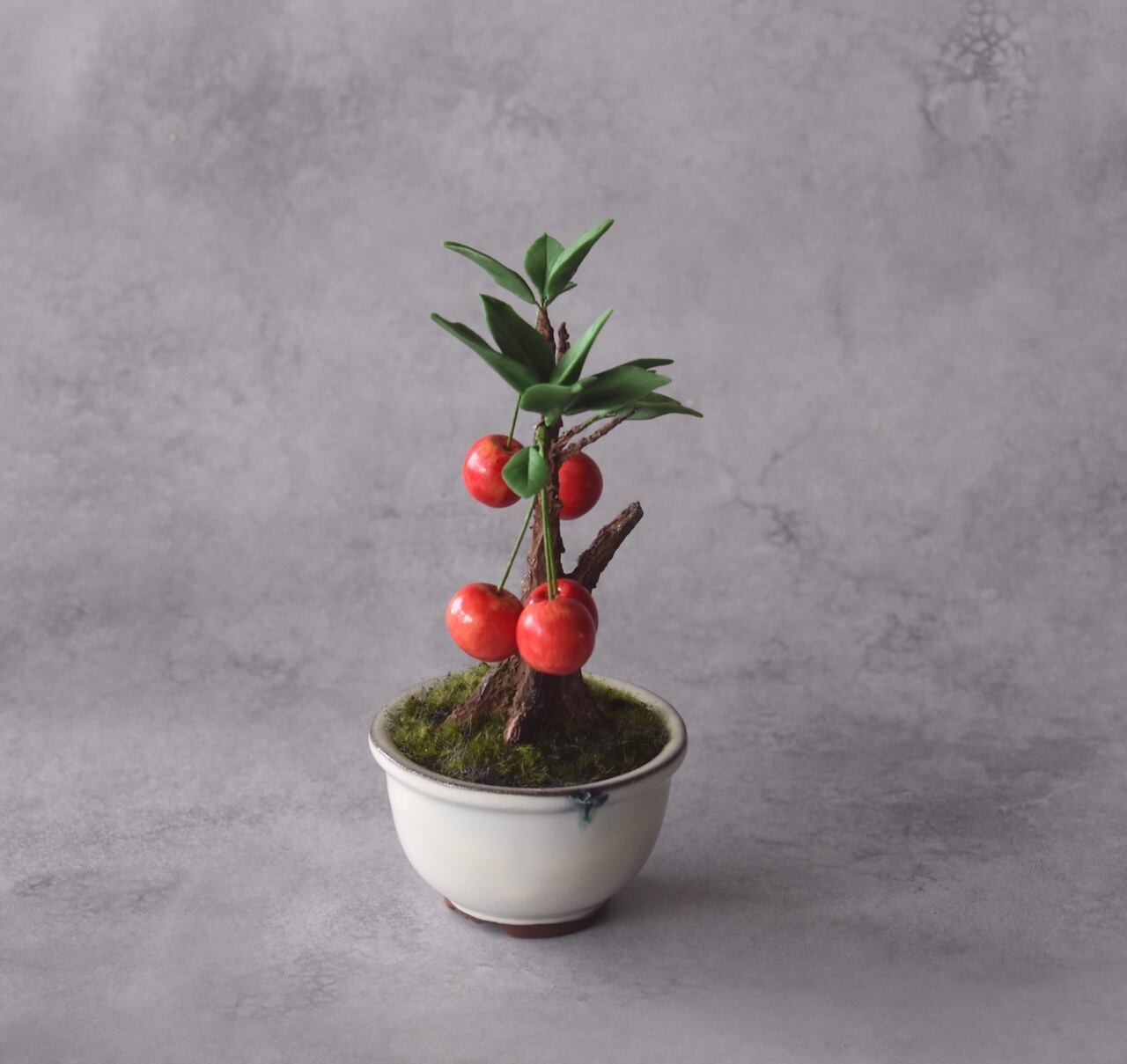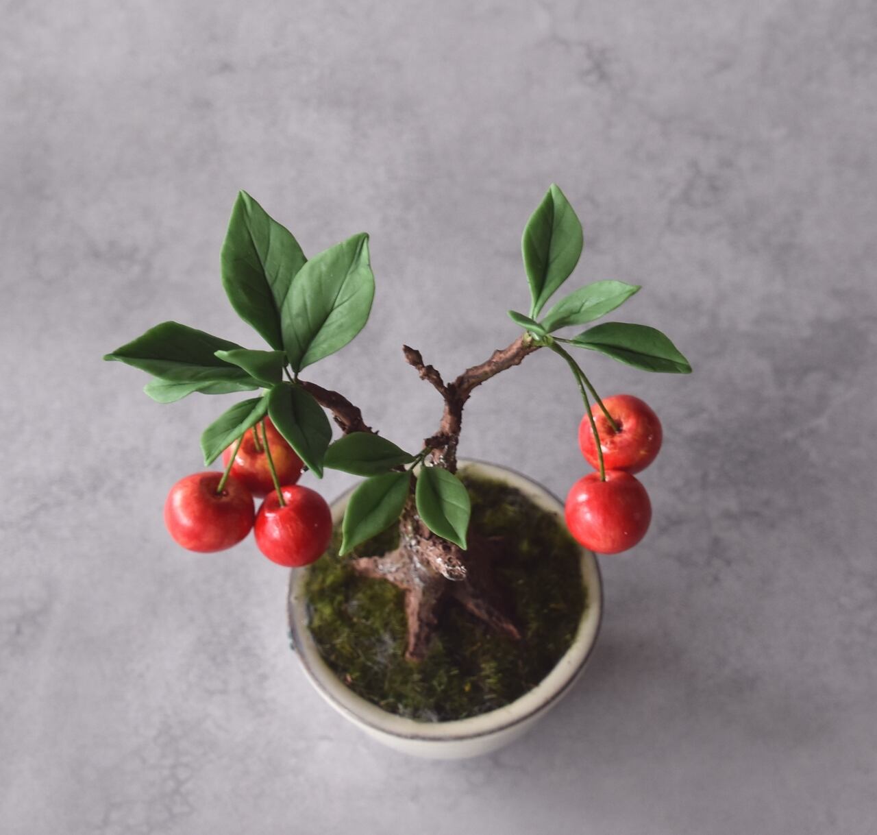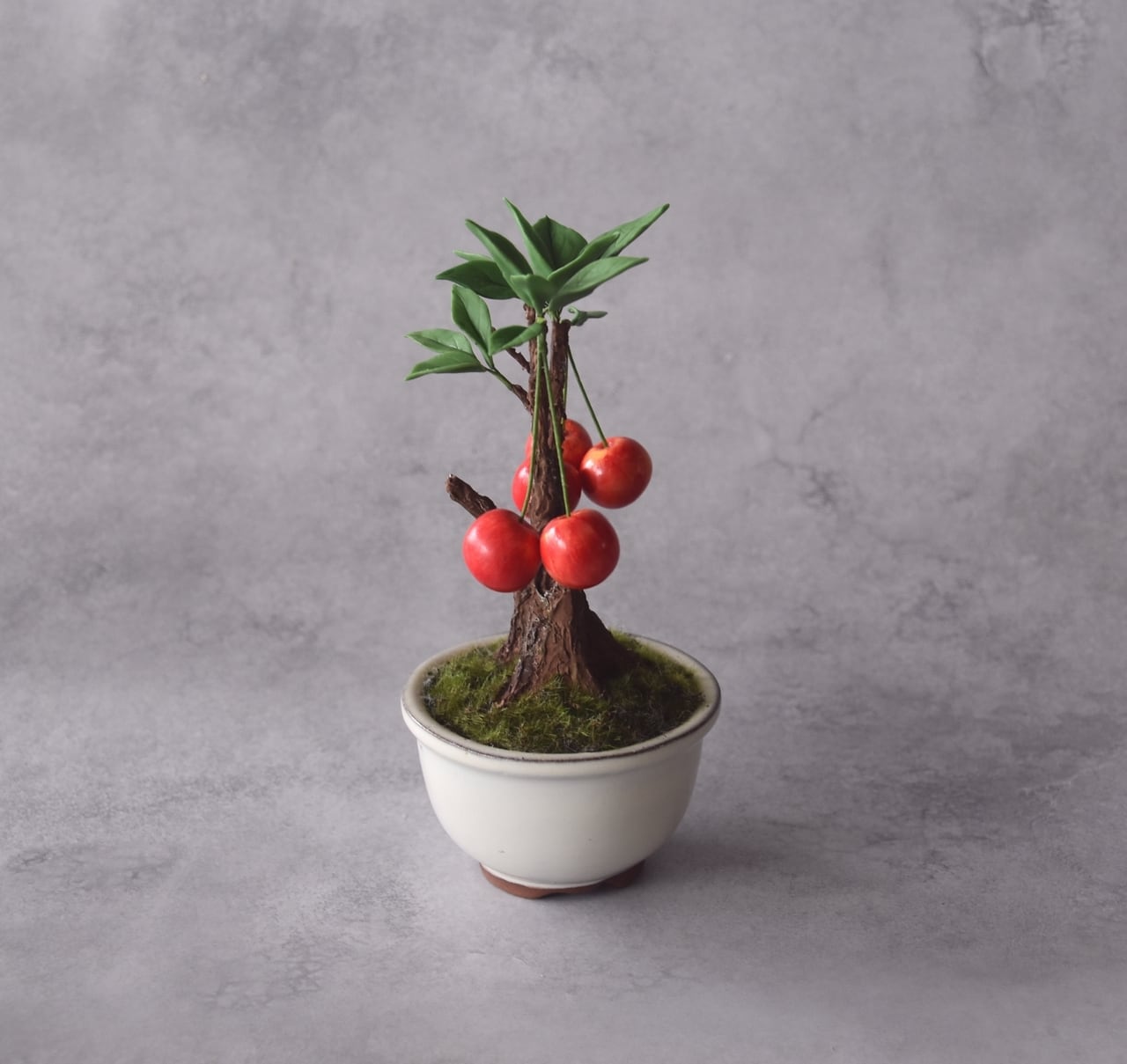粘土で一つひとつ丁寧に制作し、太い幹に細い枝とさくらんぼをバランスよく配置しました。
