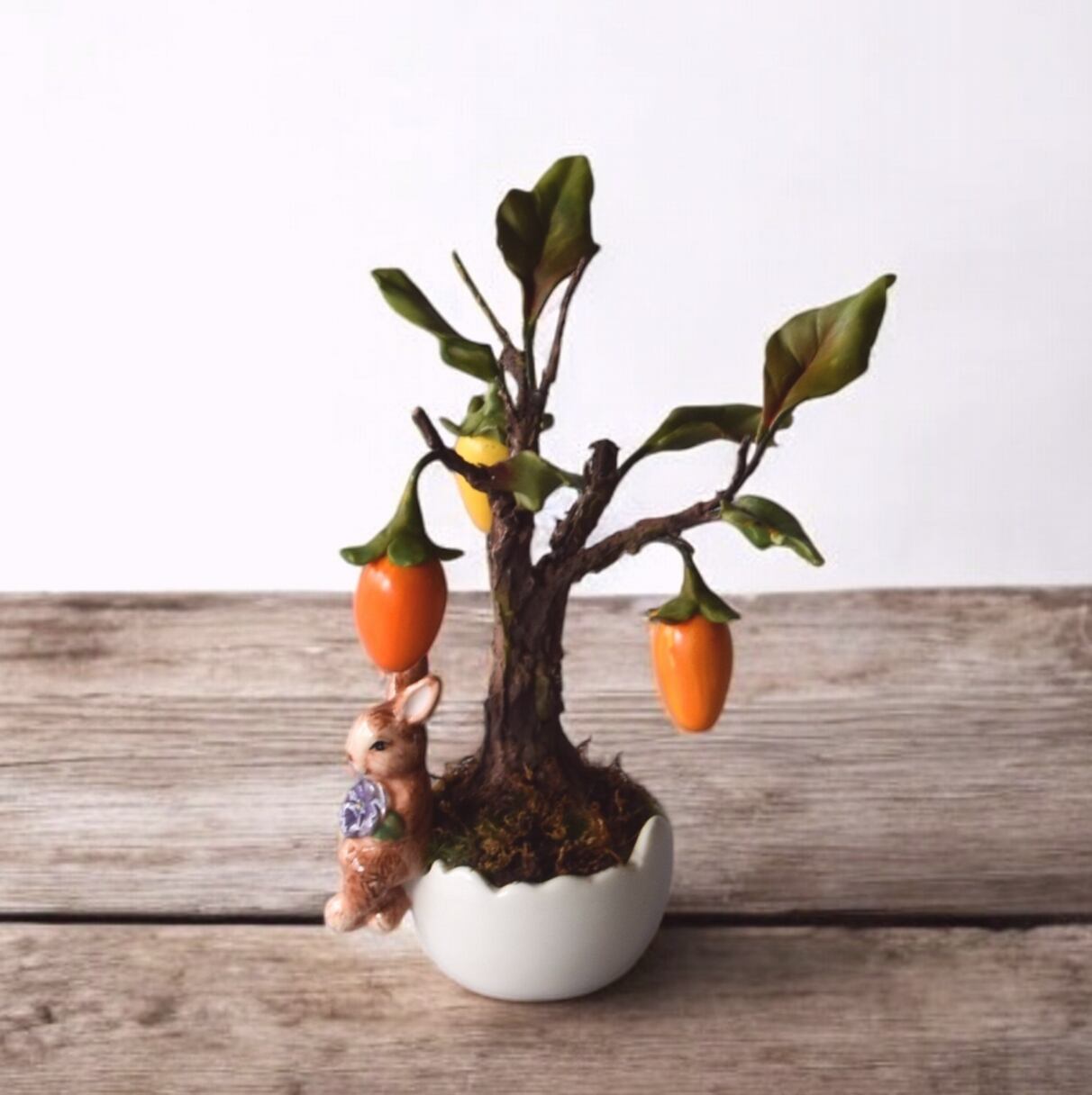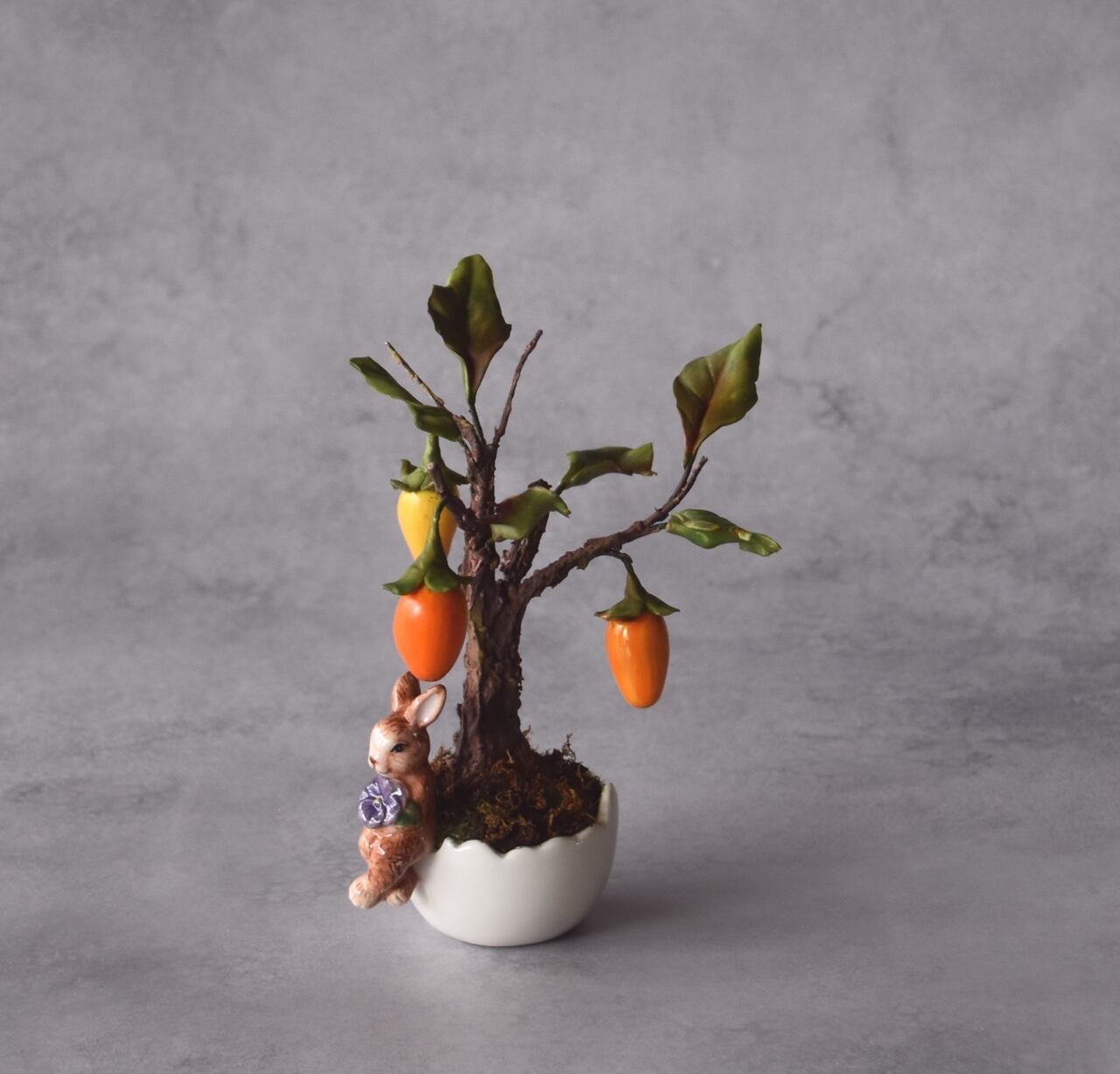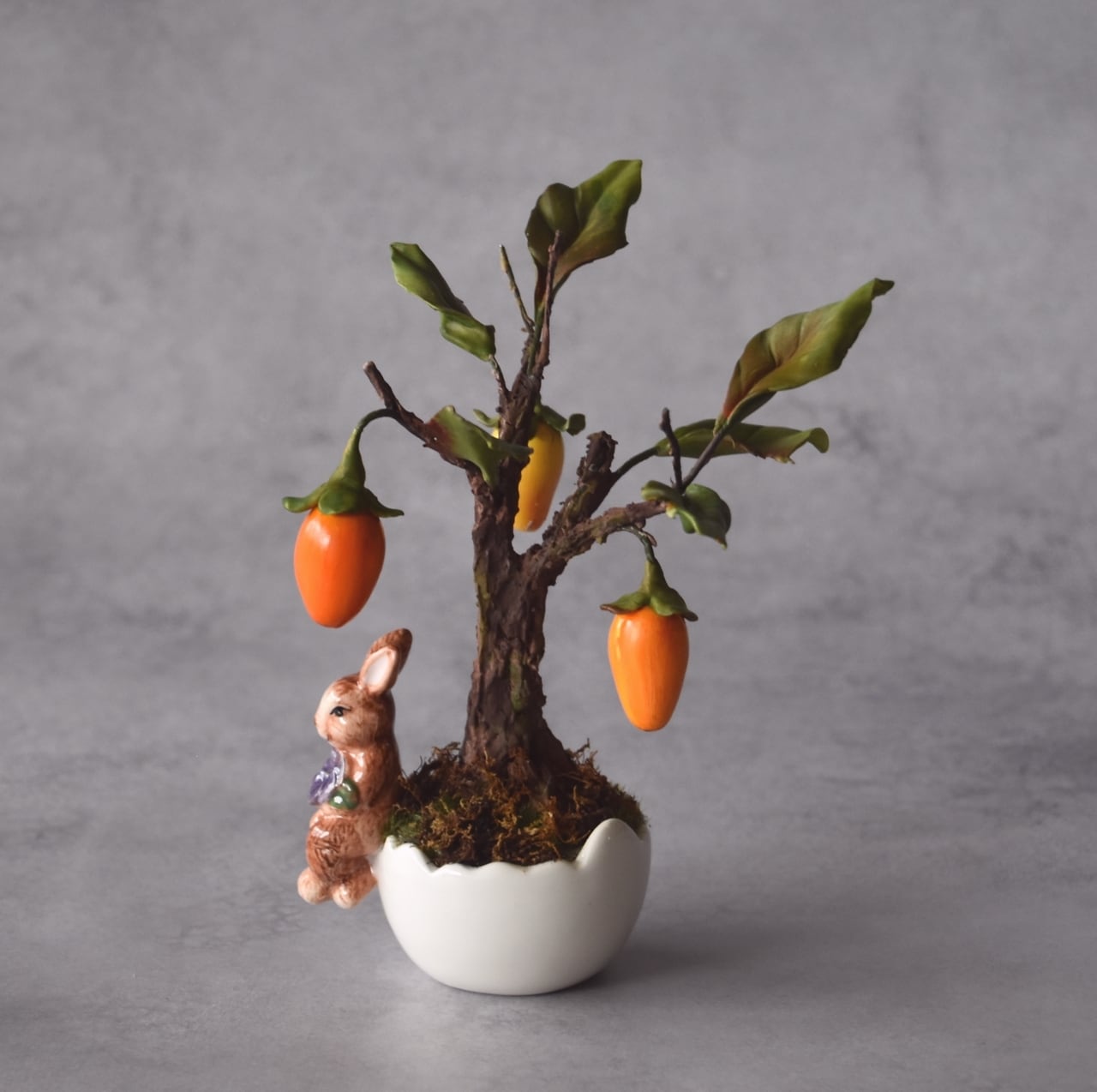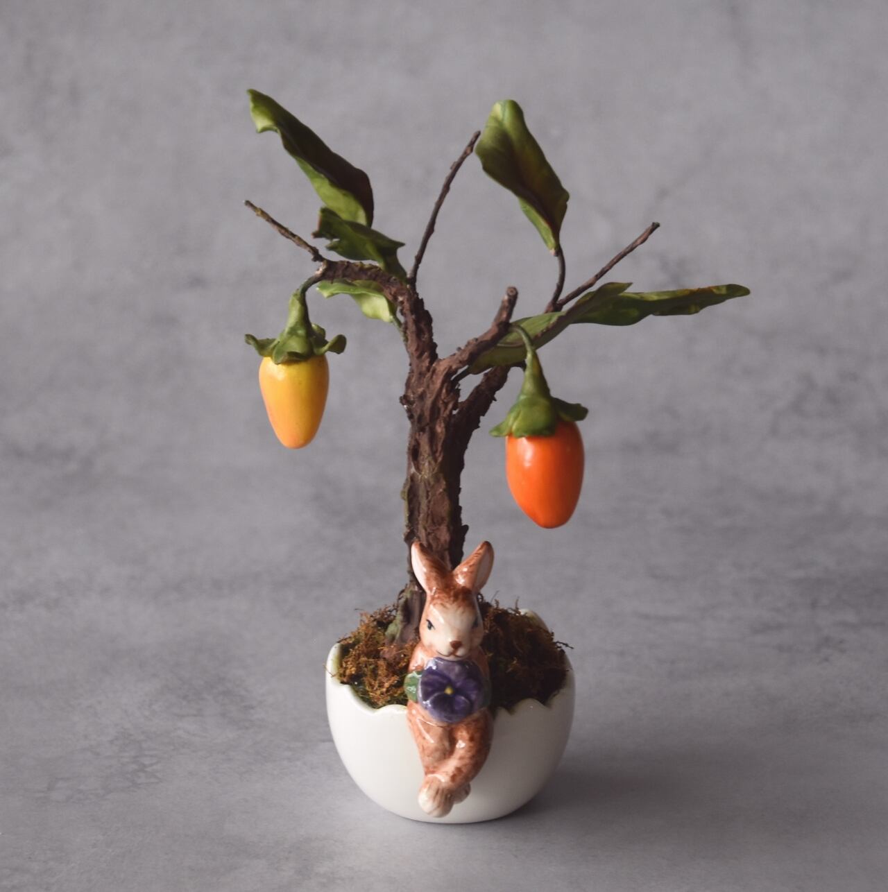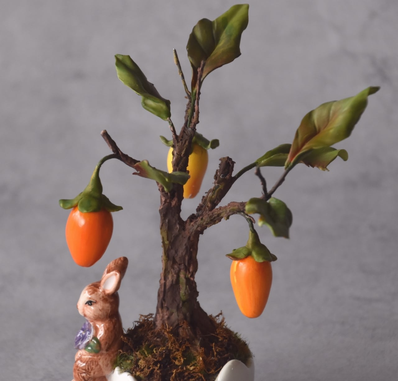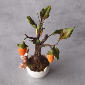 ◆粘土のお花◆ 柿【ロウヤガキ(老爺柿)】盆栽 S1289