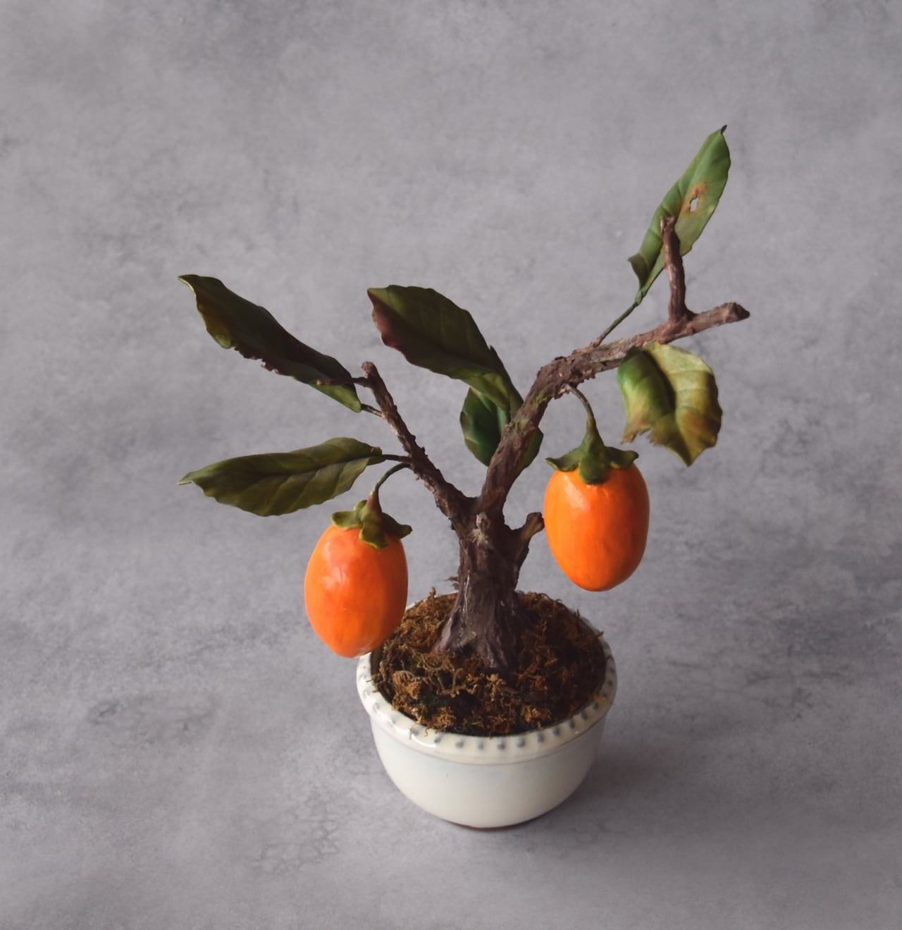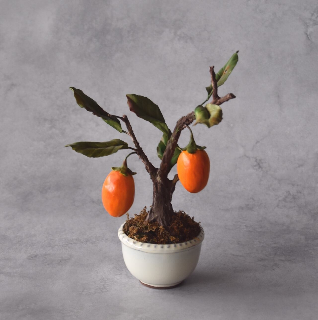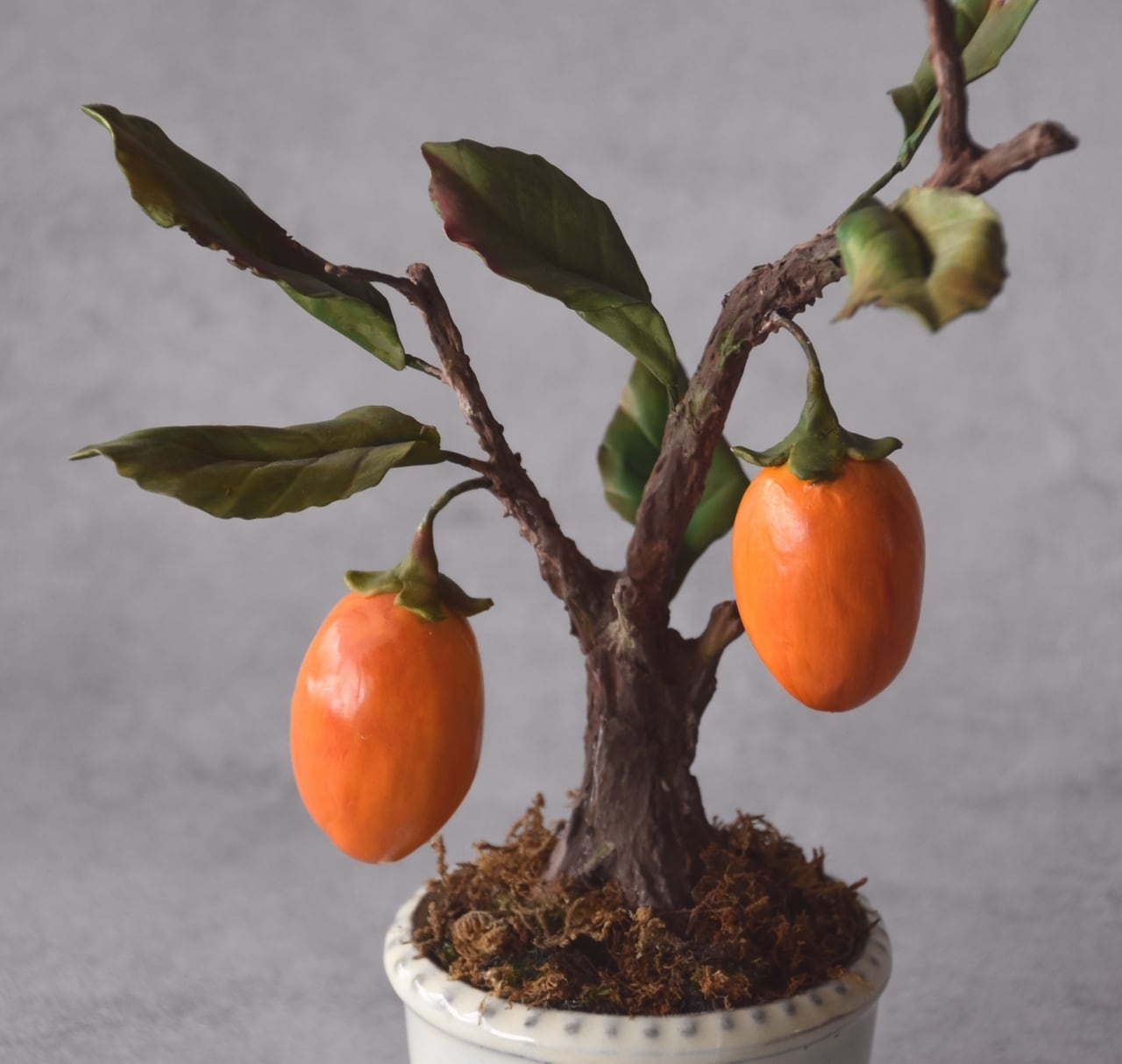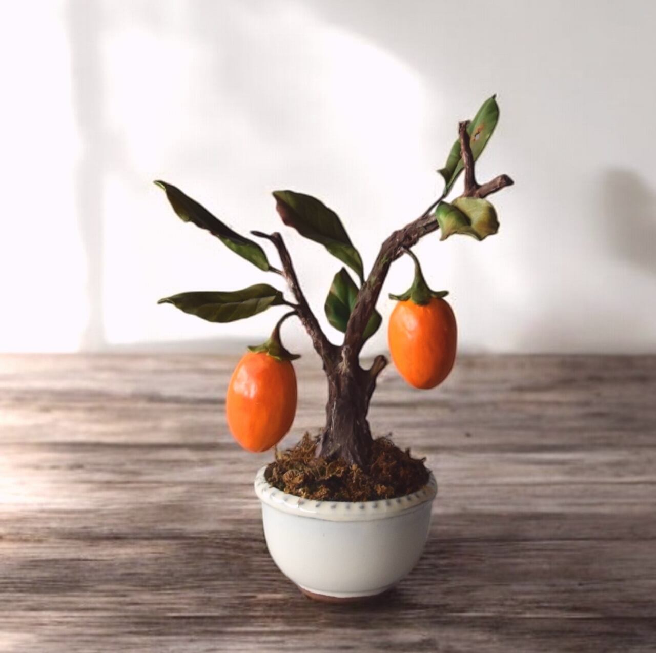 ◆粘土のお花◆ 柿【ロウヤガキ(老爺柿)】盆栽 S1290