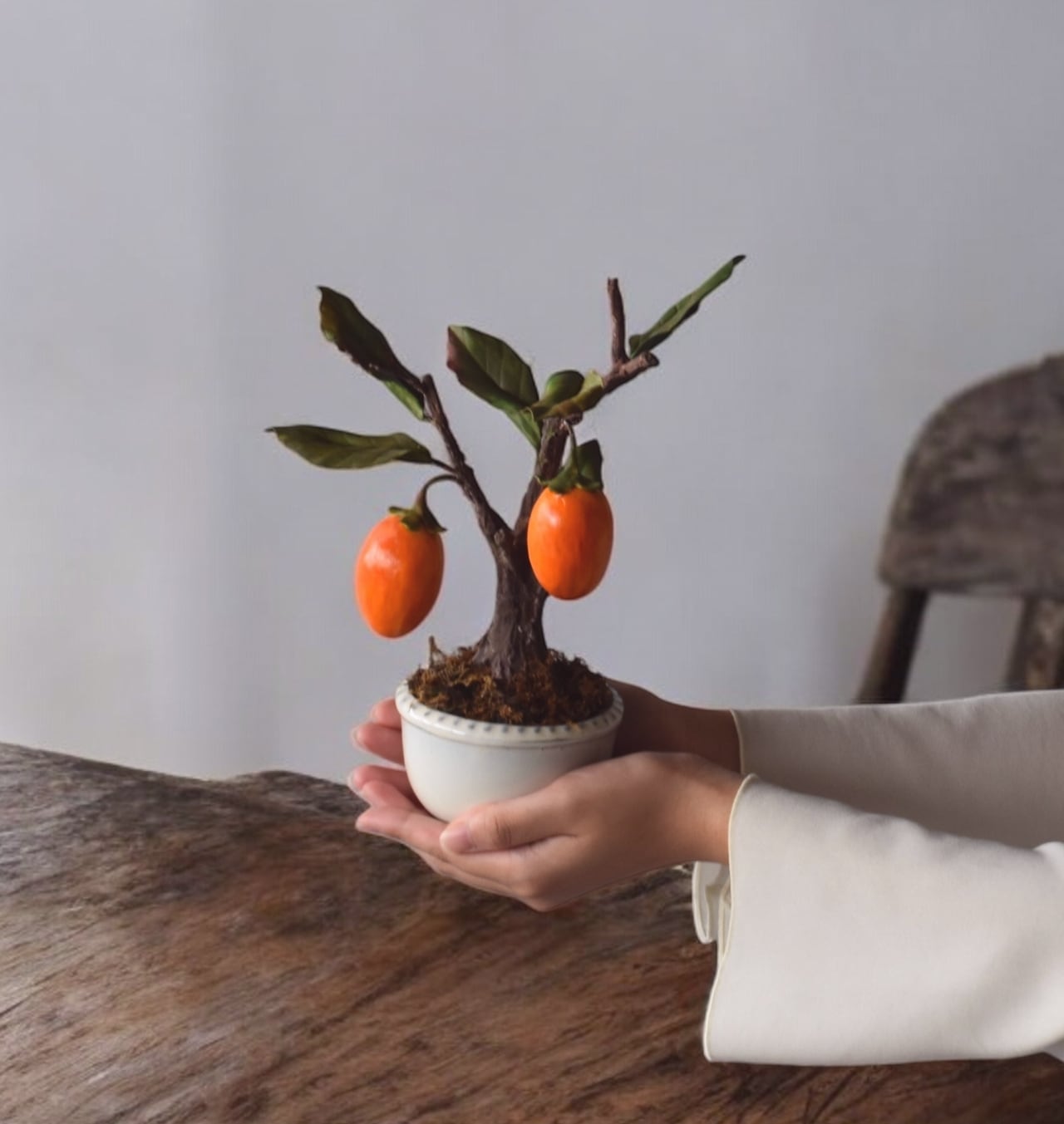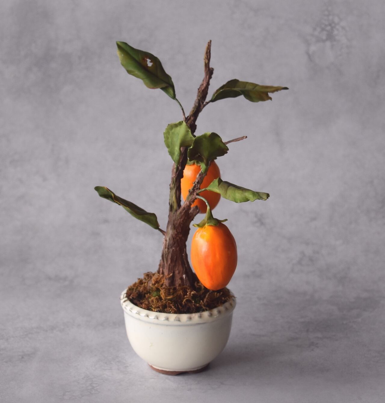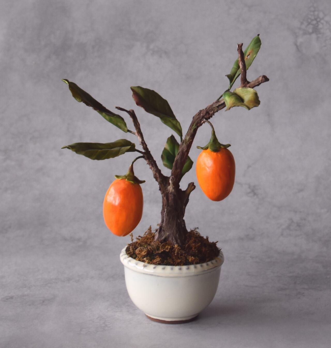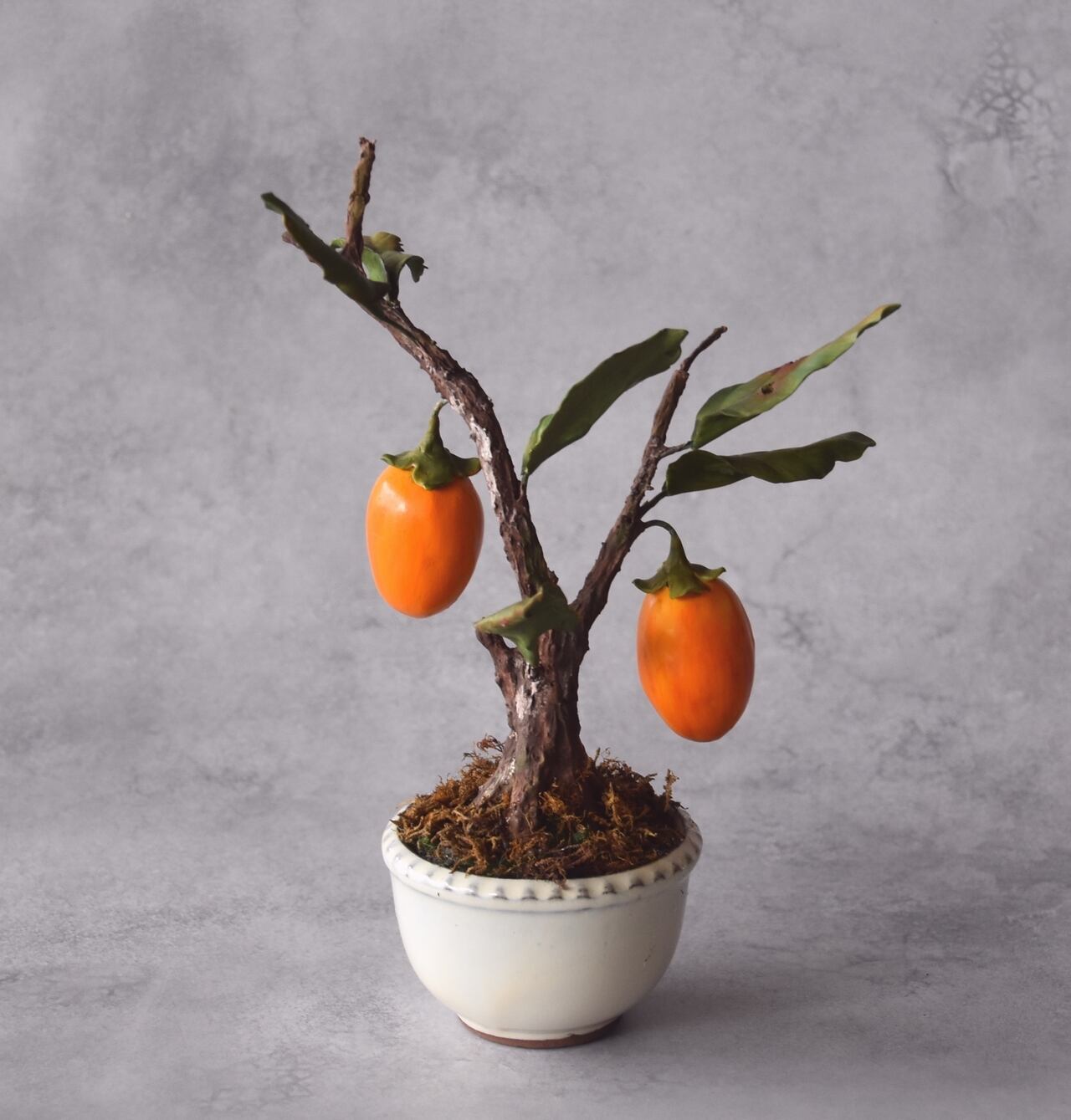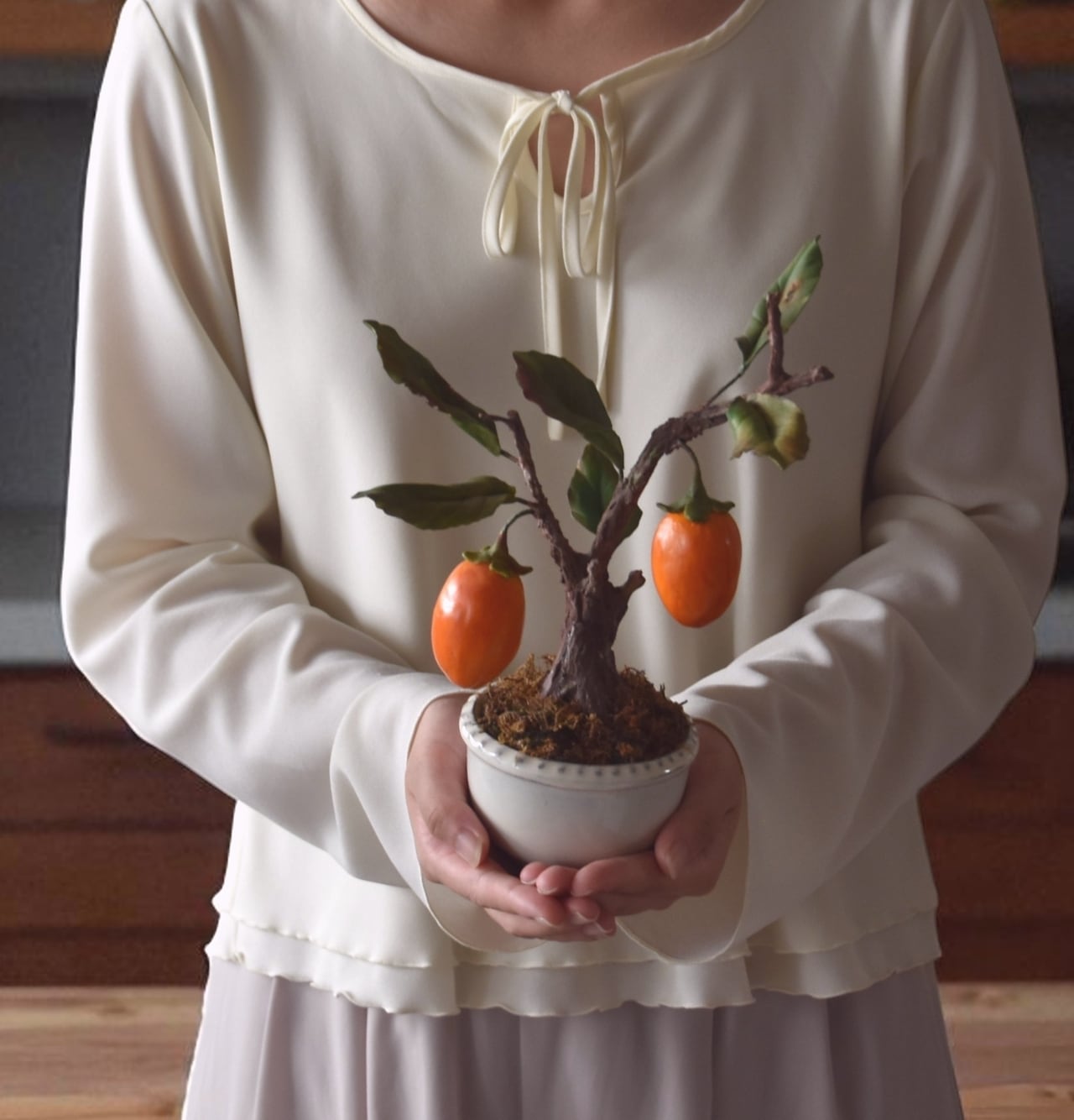 ◆粘土のお花◆ 柿【ロウヤガキ(老爺柿)】盆栽 S1290