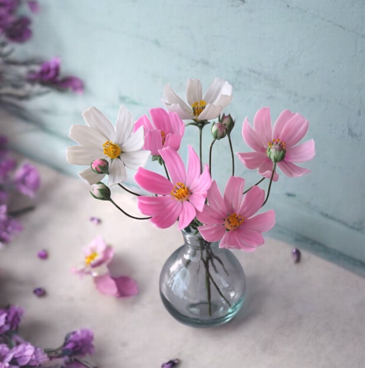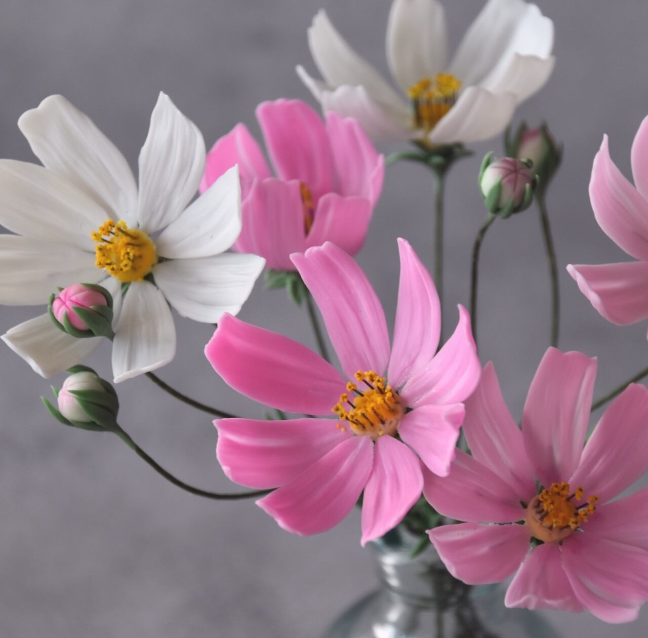 ◆粘土のお花◆ コスモス ピンク&ホワイト K1295
