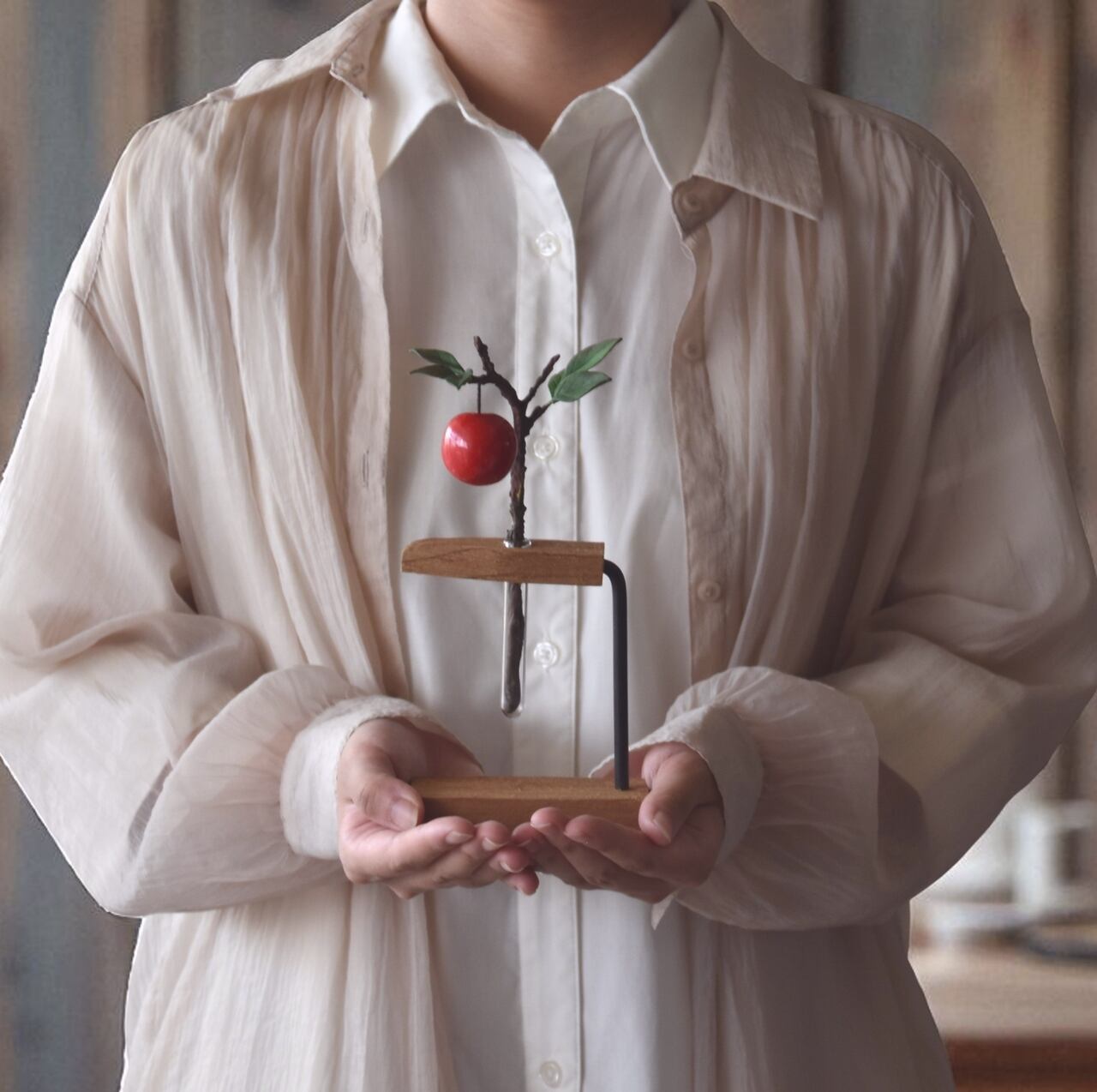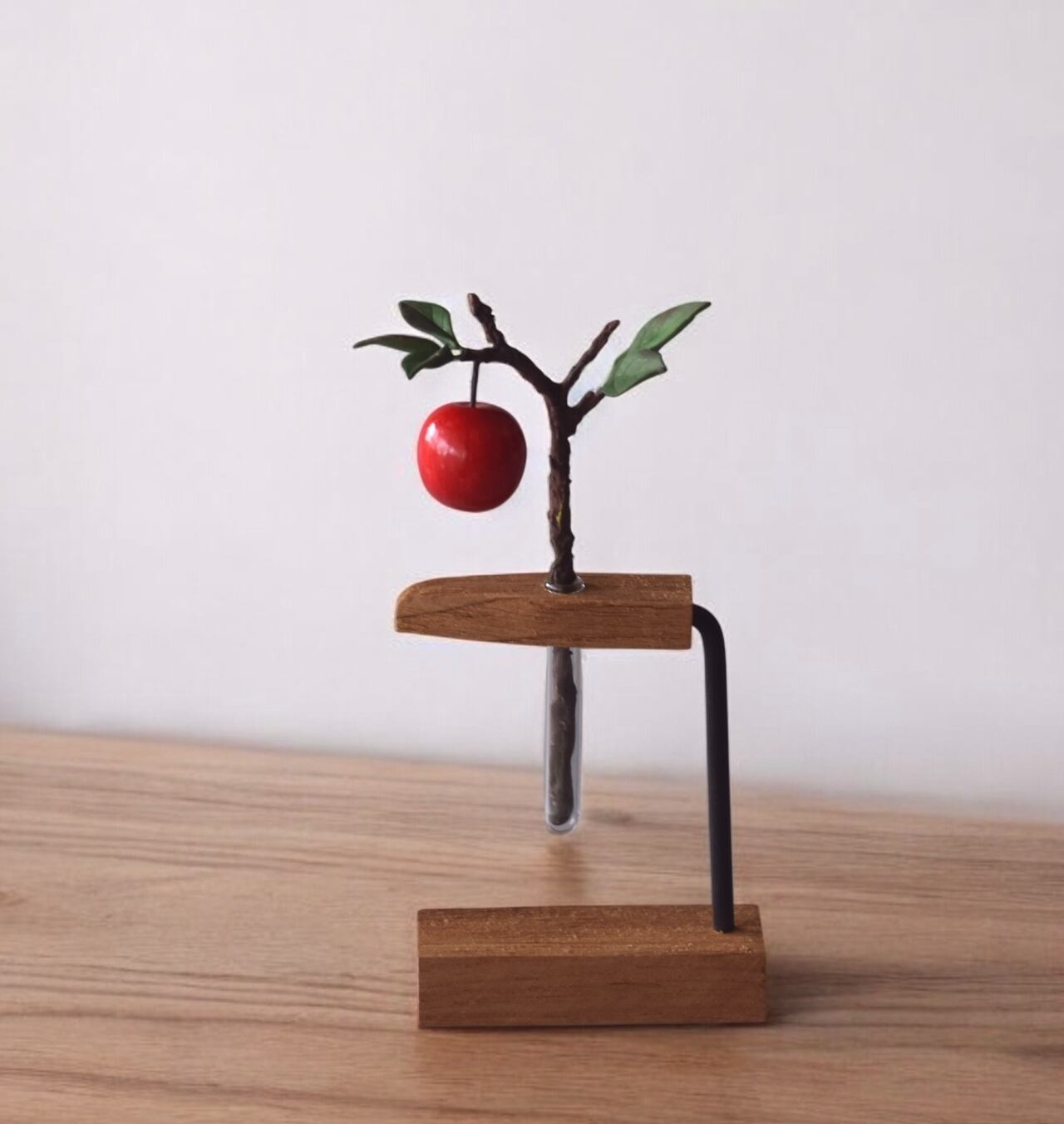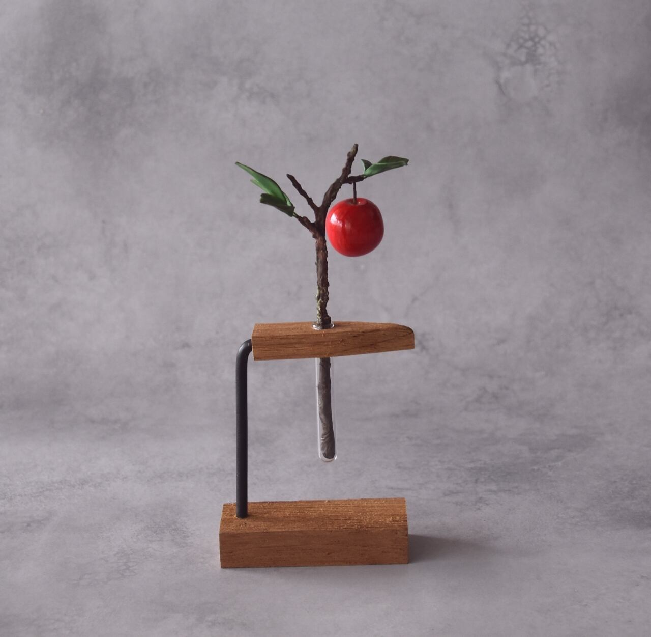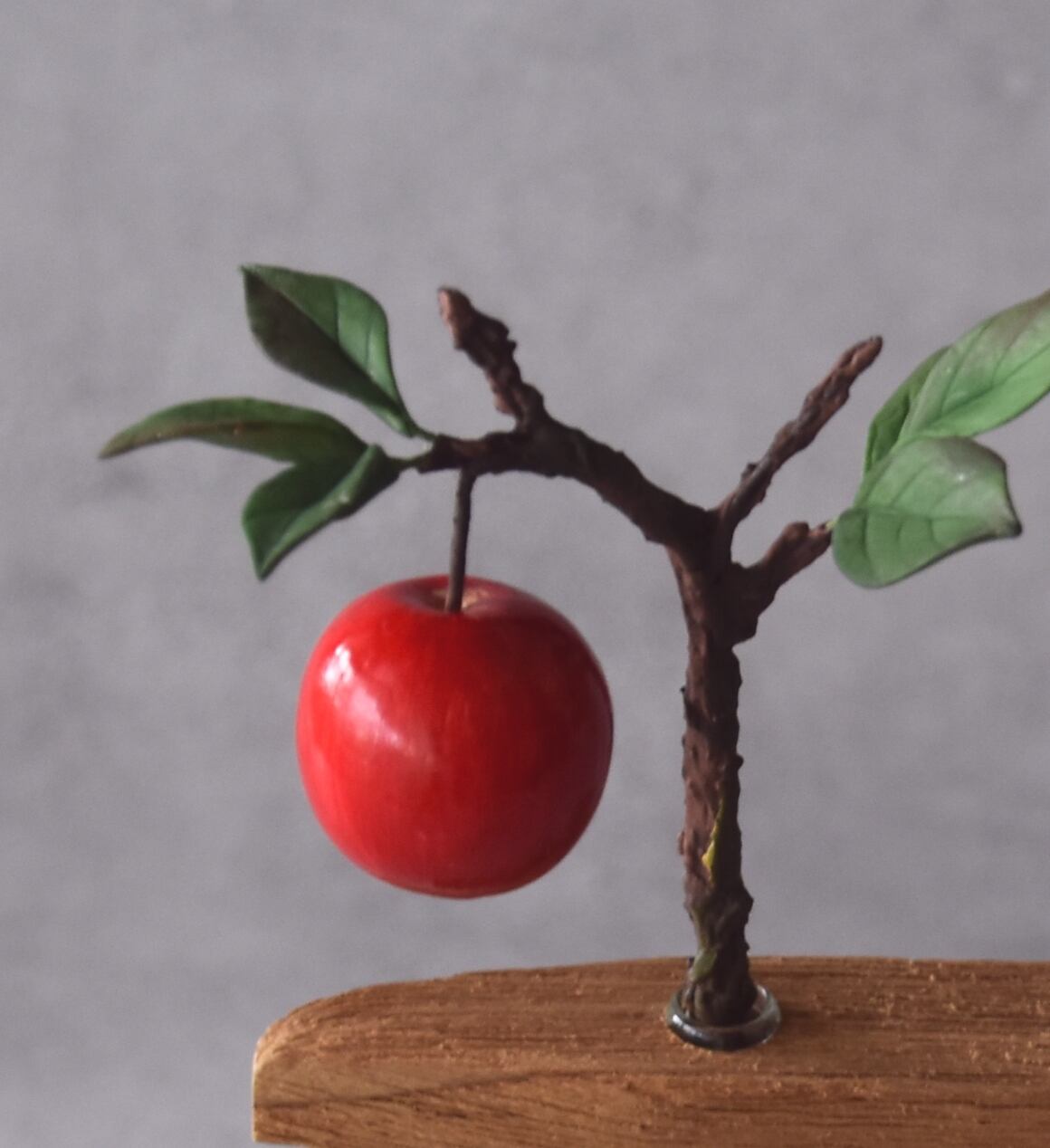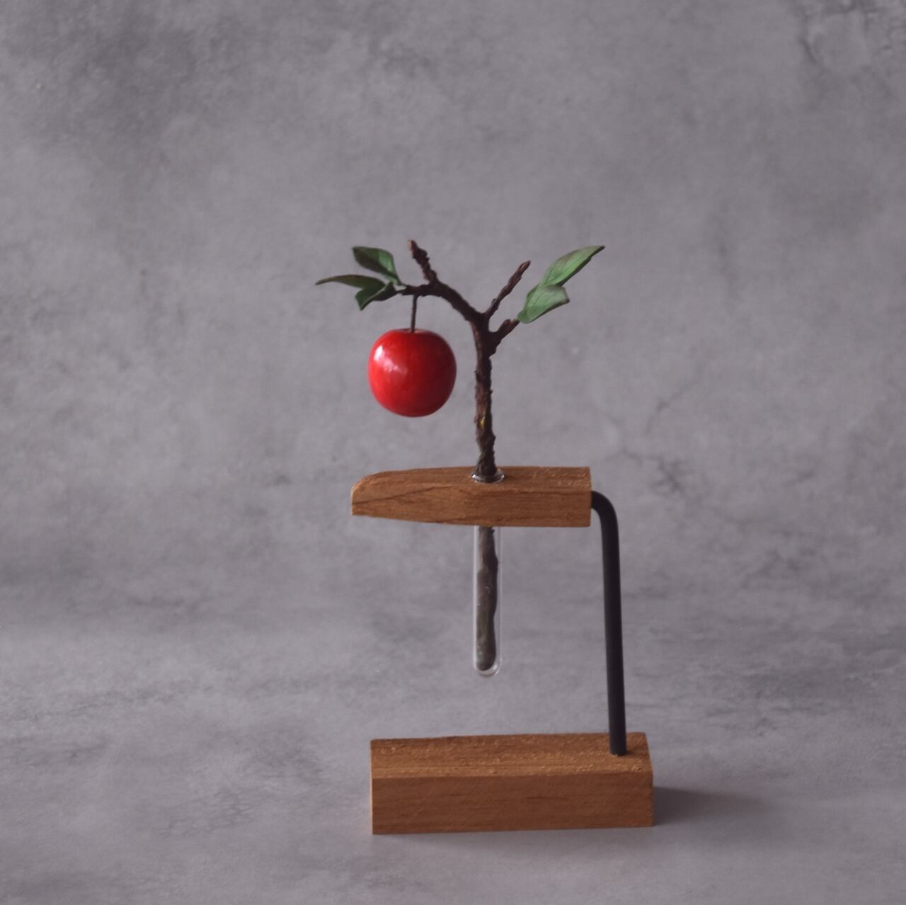 枝と小さなりんごをバランスよく配置し、手のひらに収まる愛らしいサイズに仕上げました。