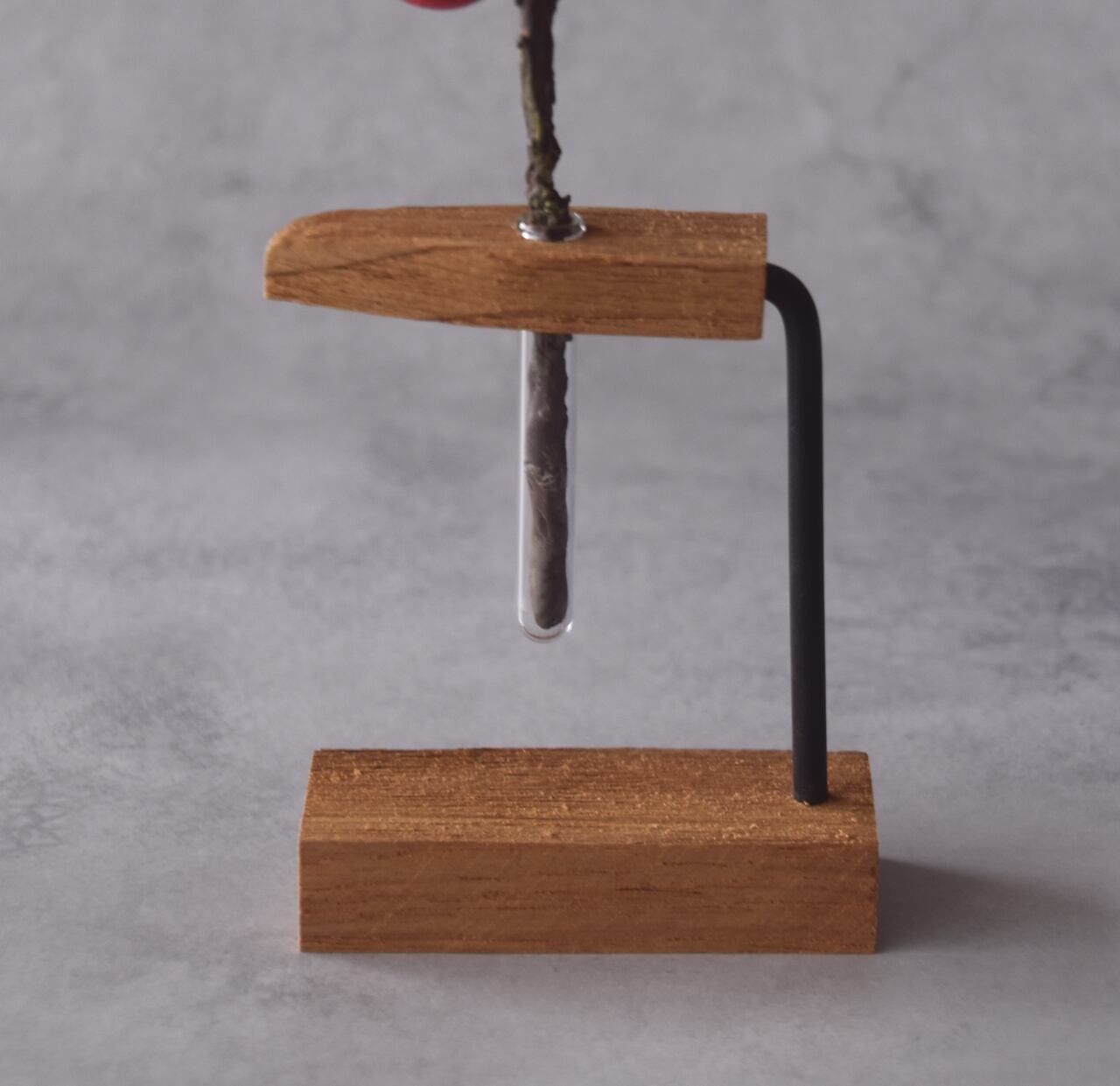 ガラスの細い小さな試験管がついており、温かみのあるデザインが特徴です。