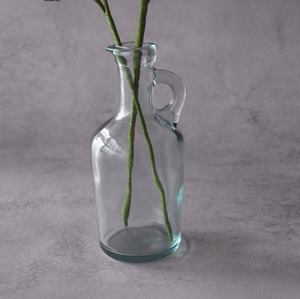 花瓶は、淡いブルーが印象的な爽やかなガラスボトル。