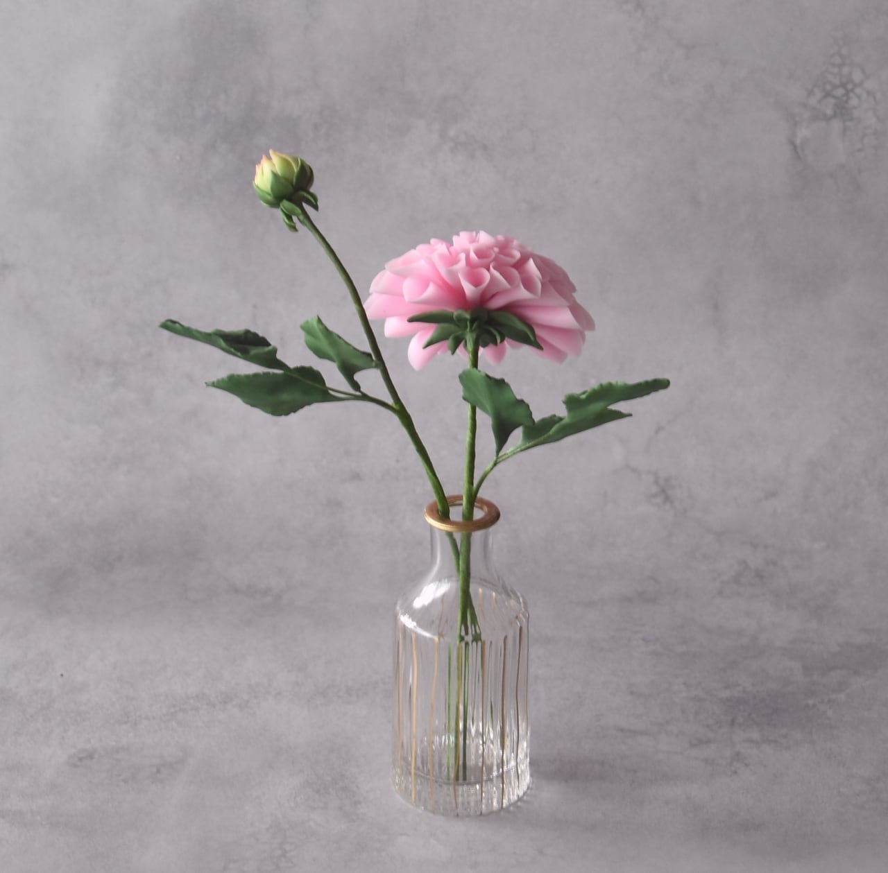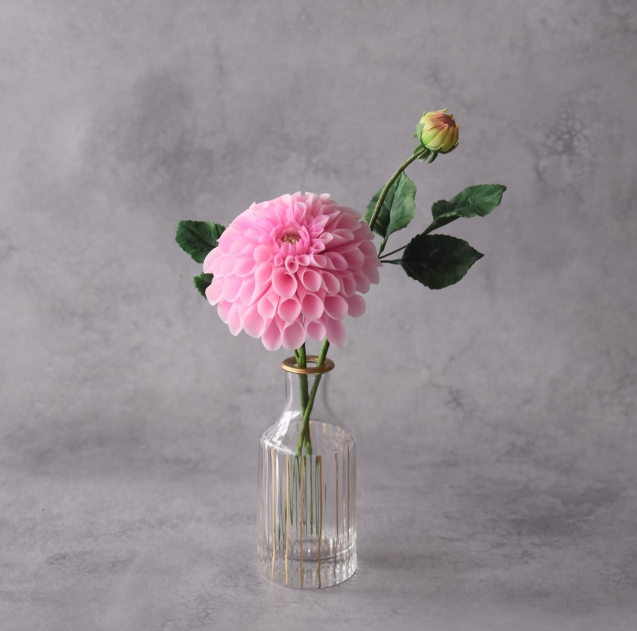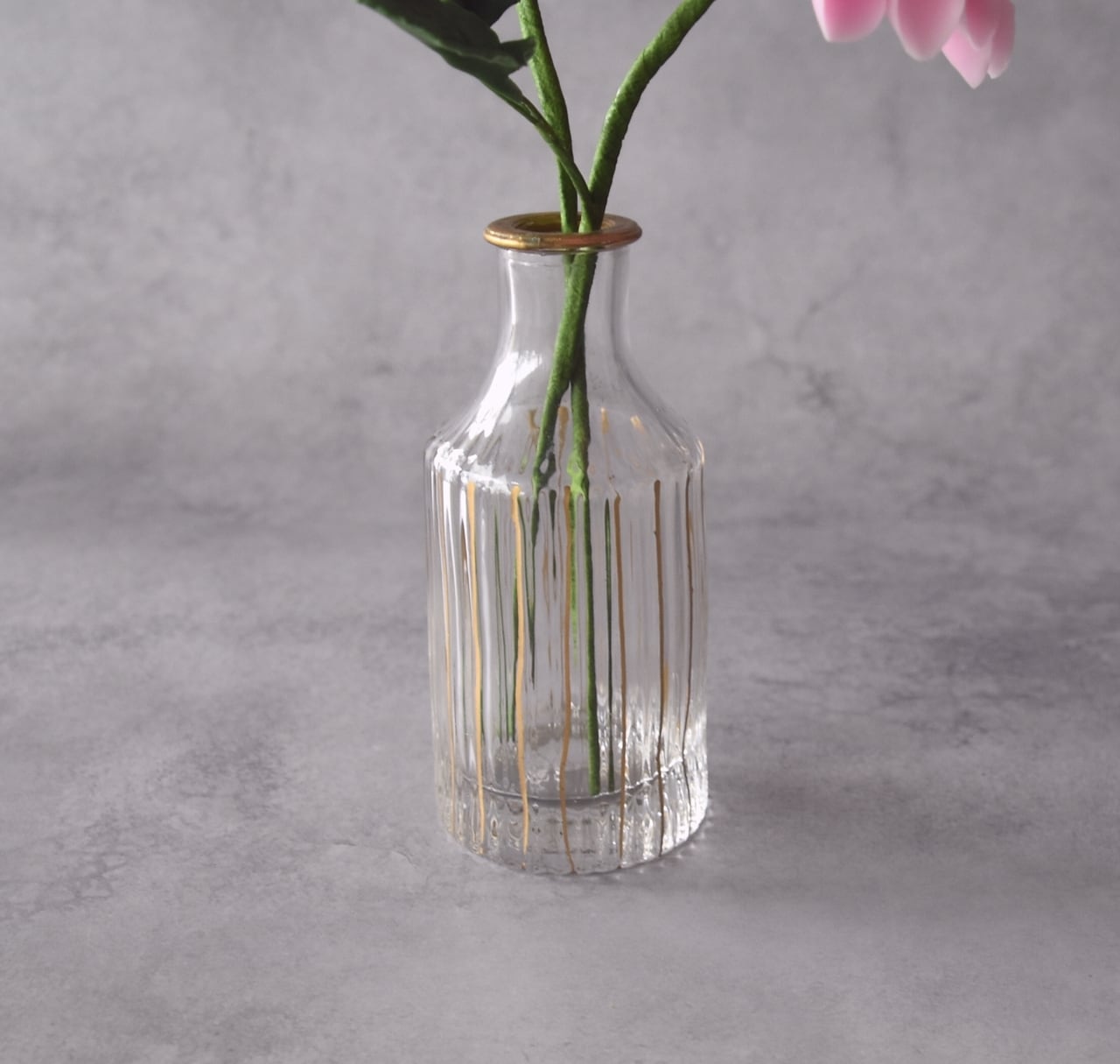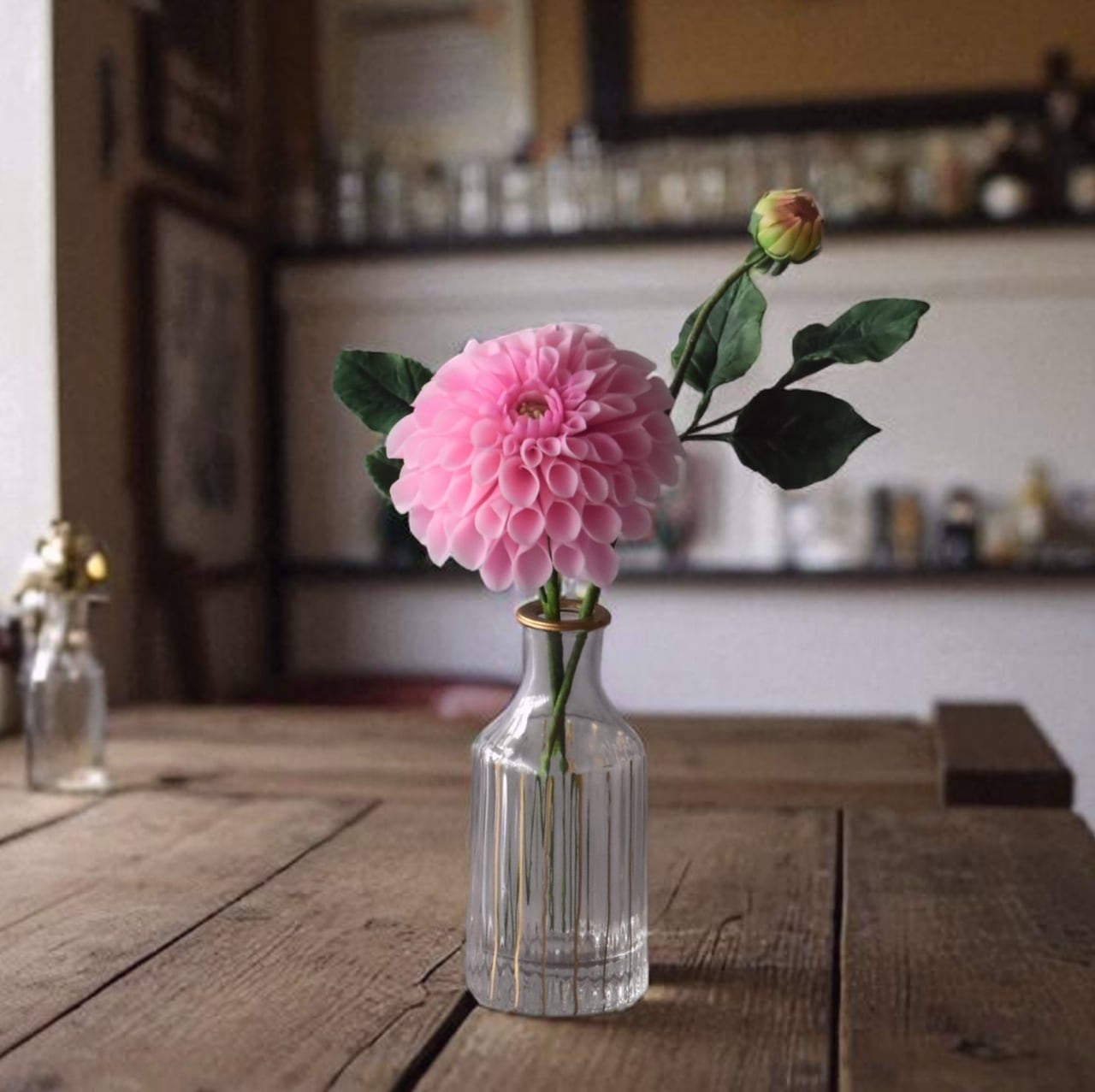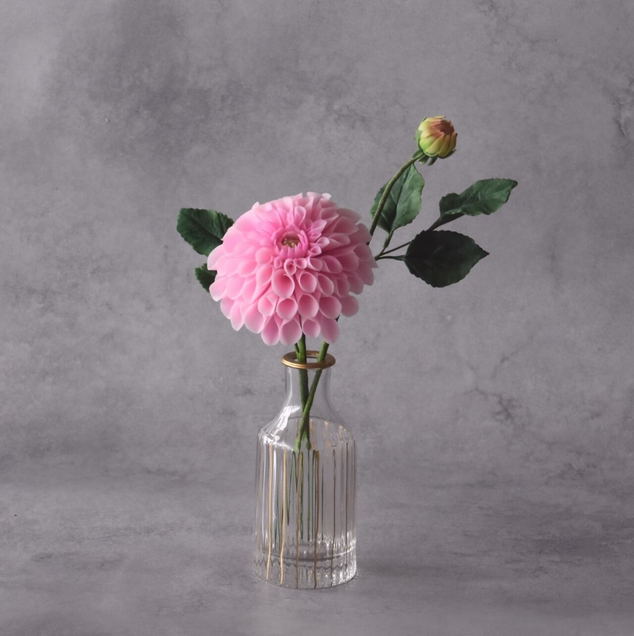 一輪挿しのフラワーベースは、ガラス製のエレガントなデザイン。