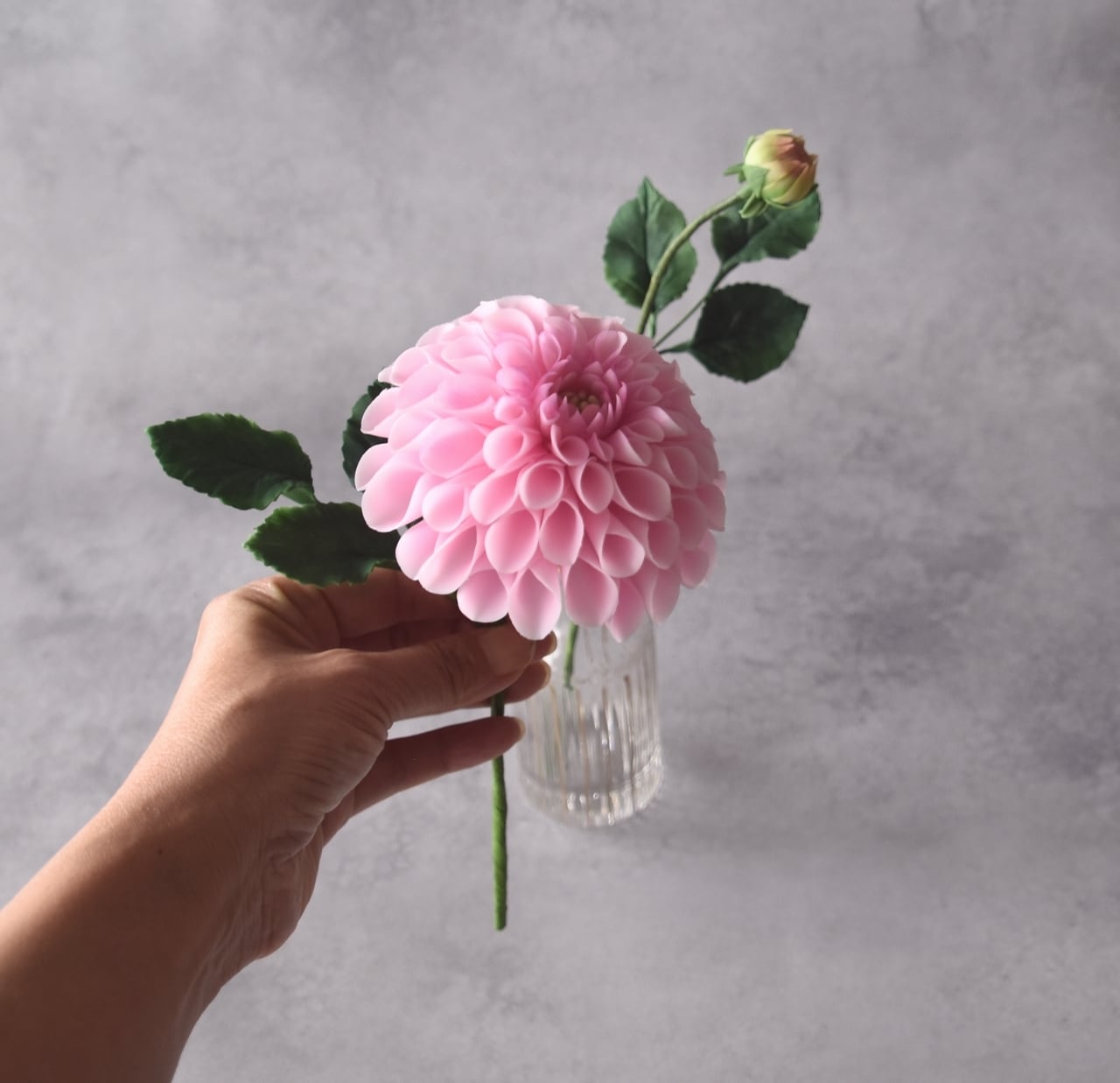 花びらは一枚一枚丁寧に薄く伸ばし、八重咲きの豪華な花姿に仕上げています。