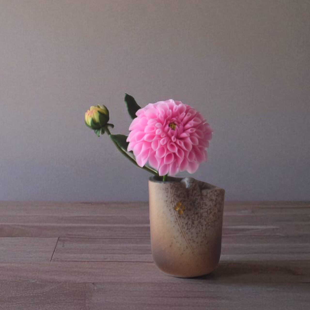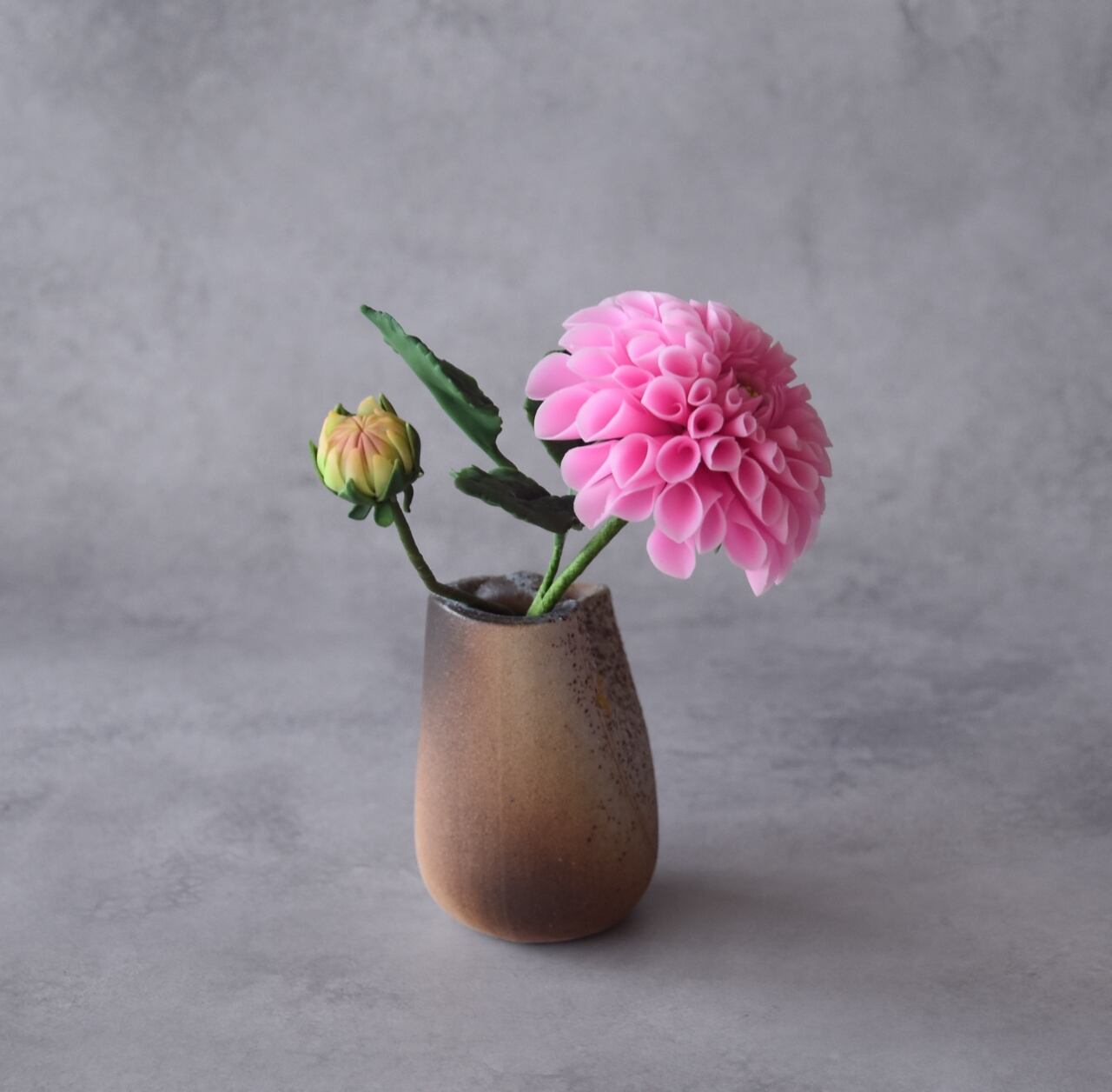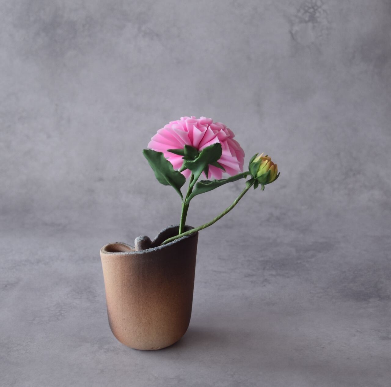 ◆粘土のお花◆ ダリア ピンク【花瓶 信楽焼】 D1321