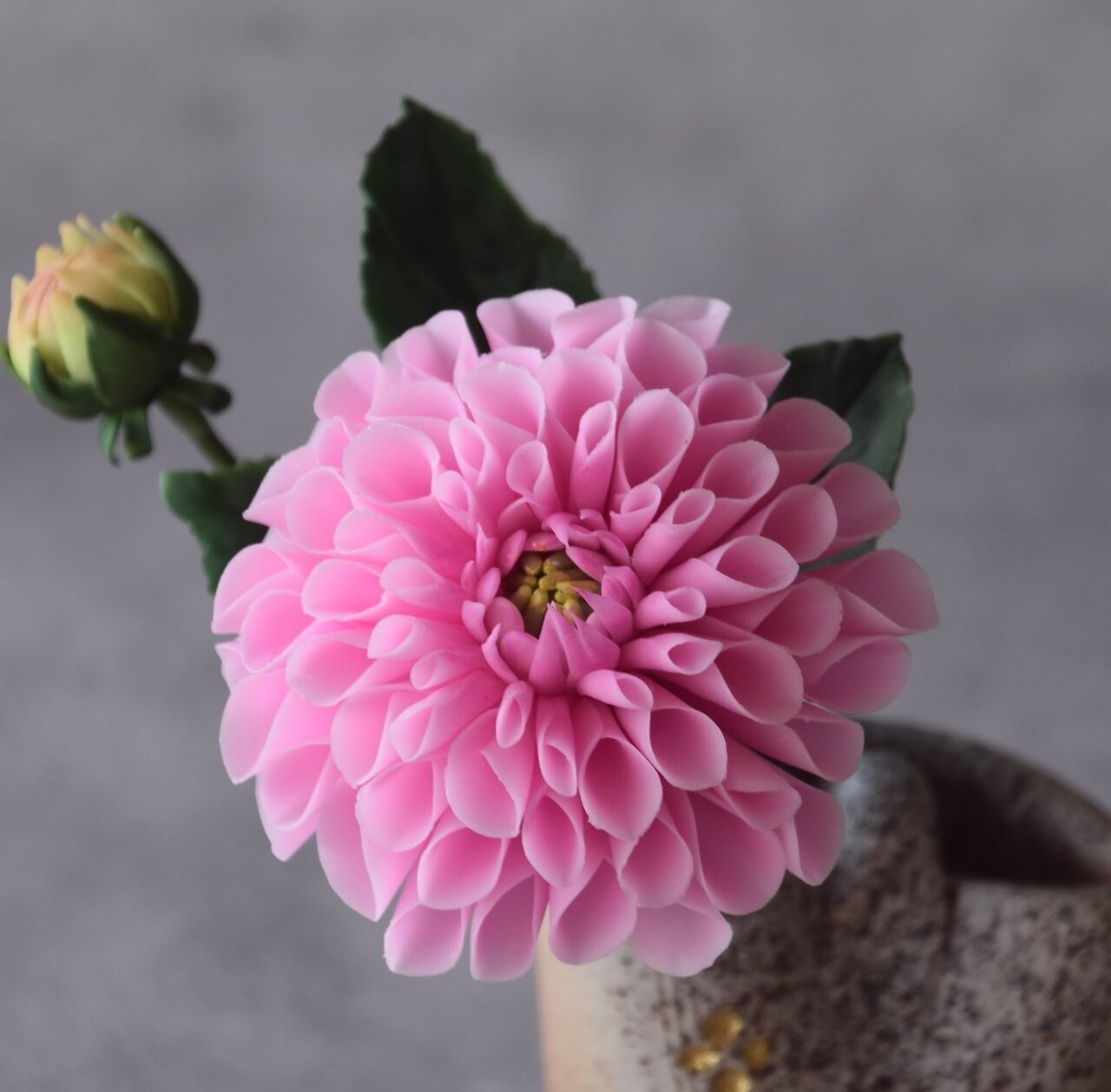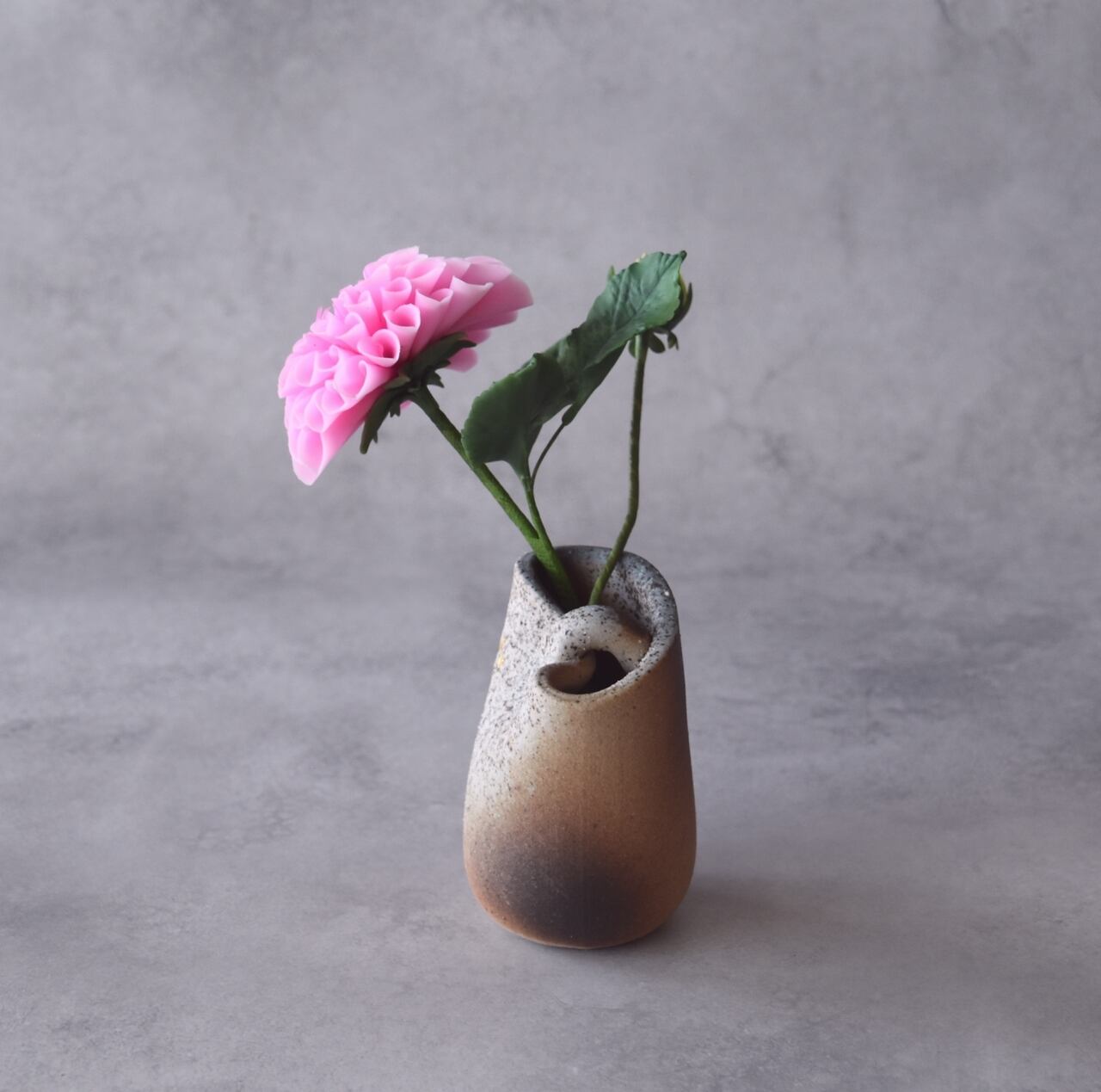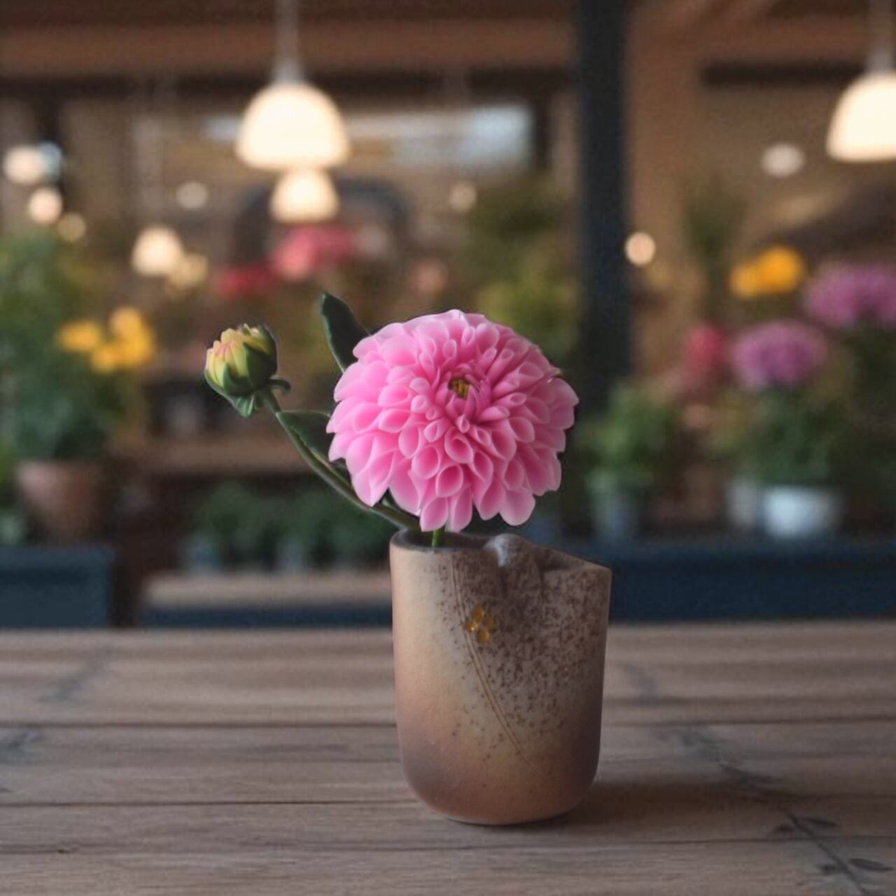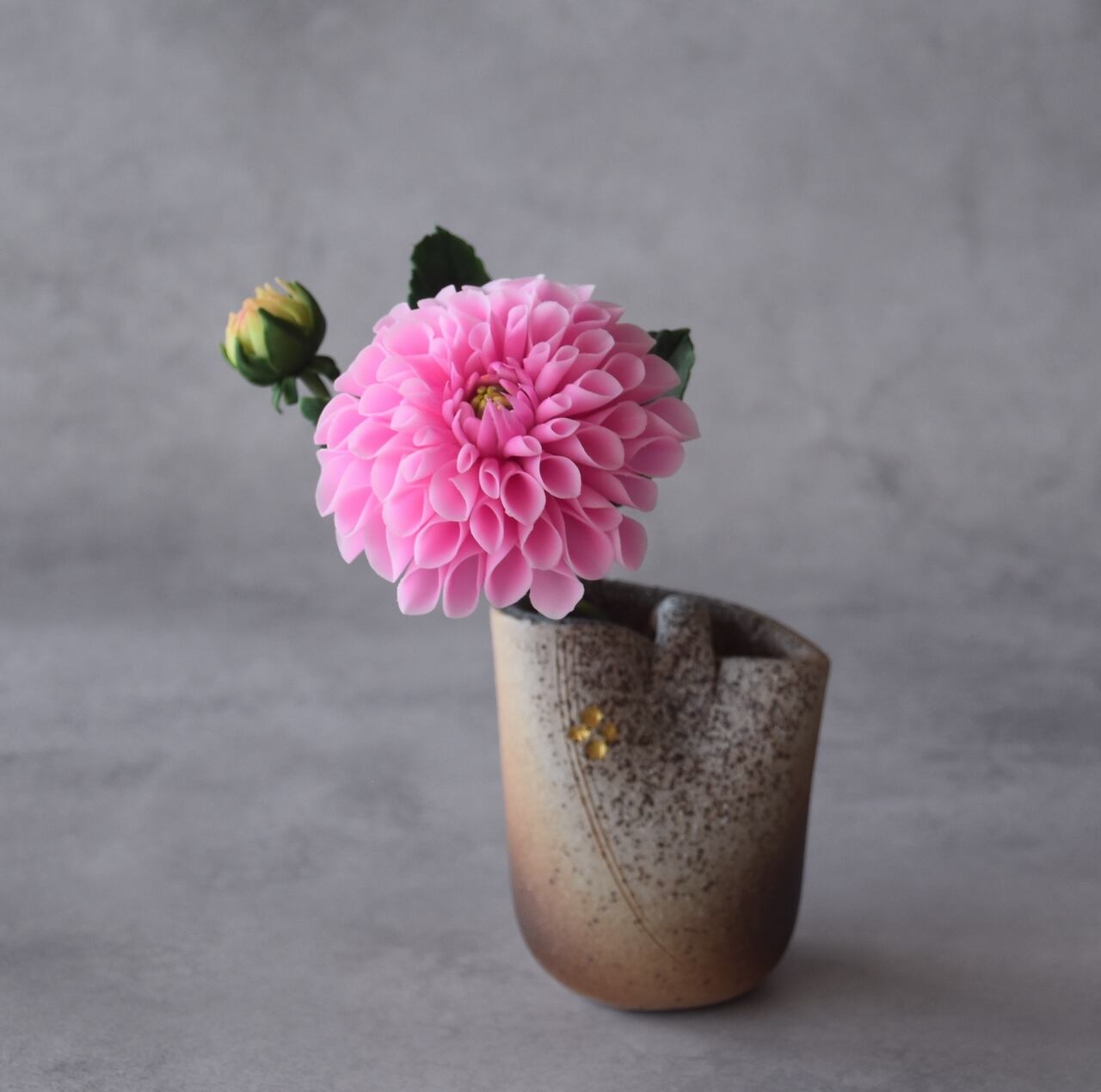◆粘土のお花◆ ダリア ピンク【花瓶 信楽焼】 D1321