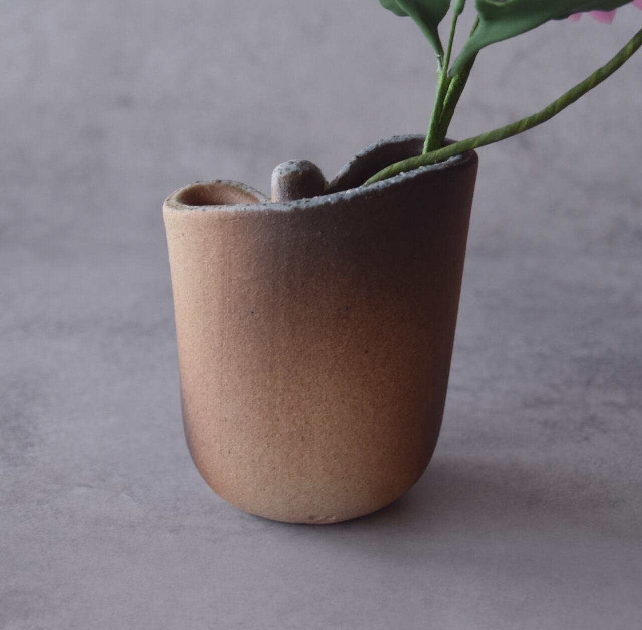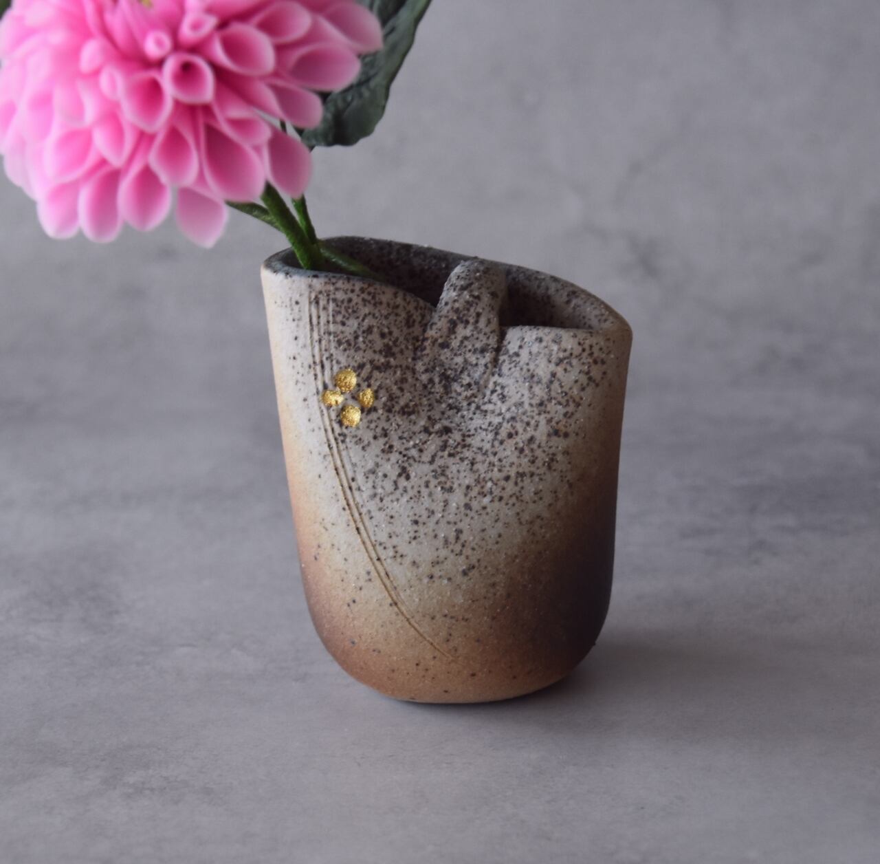 一輪挿しは信楽焼らしい石のざらっとした砂肌が特徴的の花器で、取手が付いていますので、花をまとめて活けることが出来、手軽で使いやすいミニ花器です。