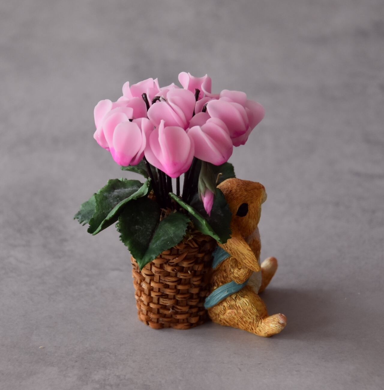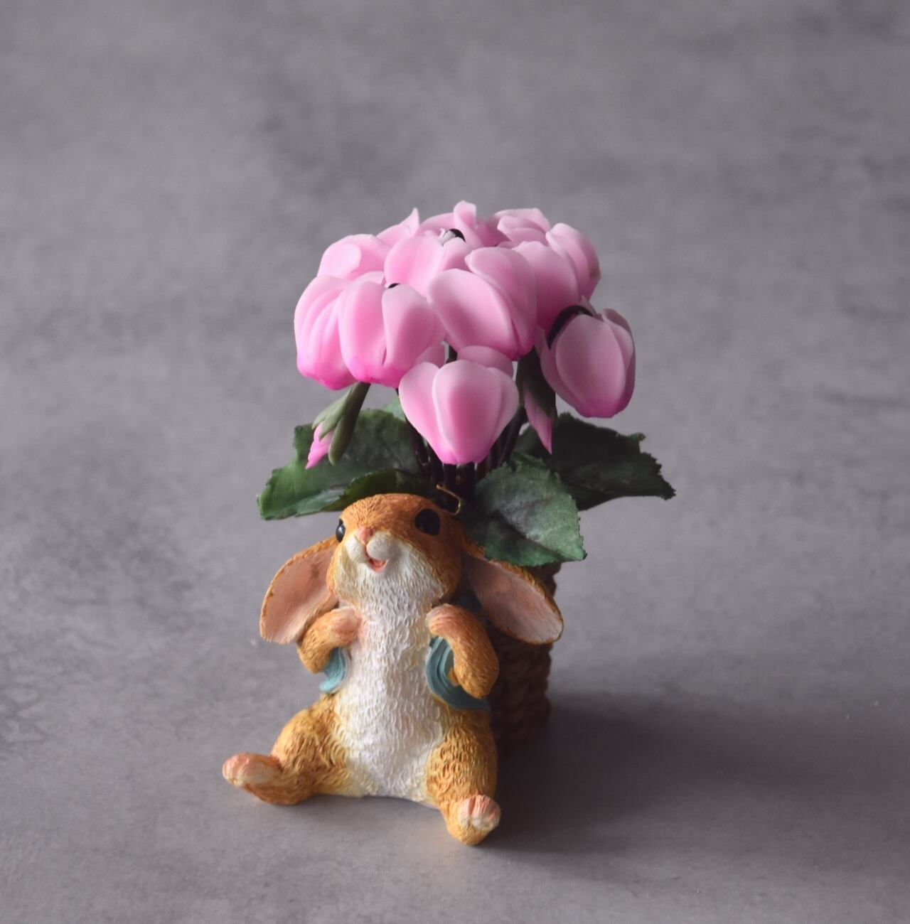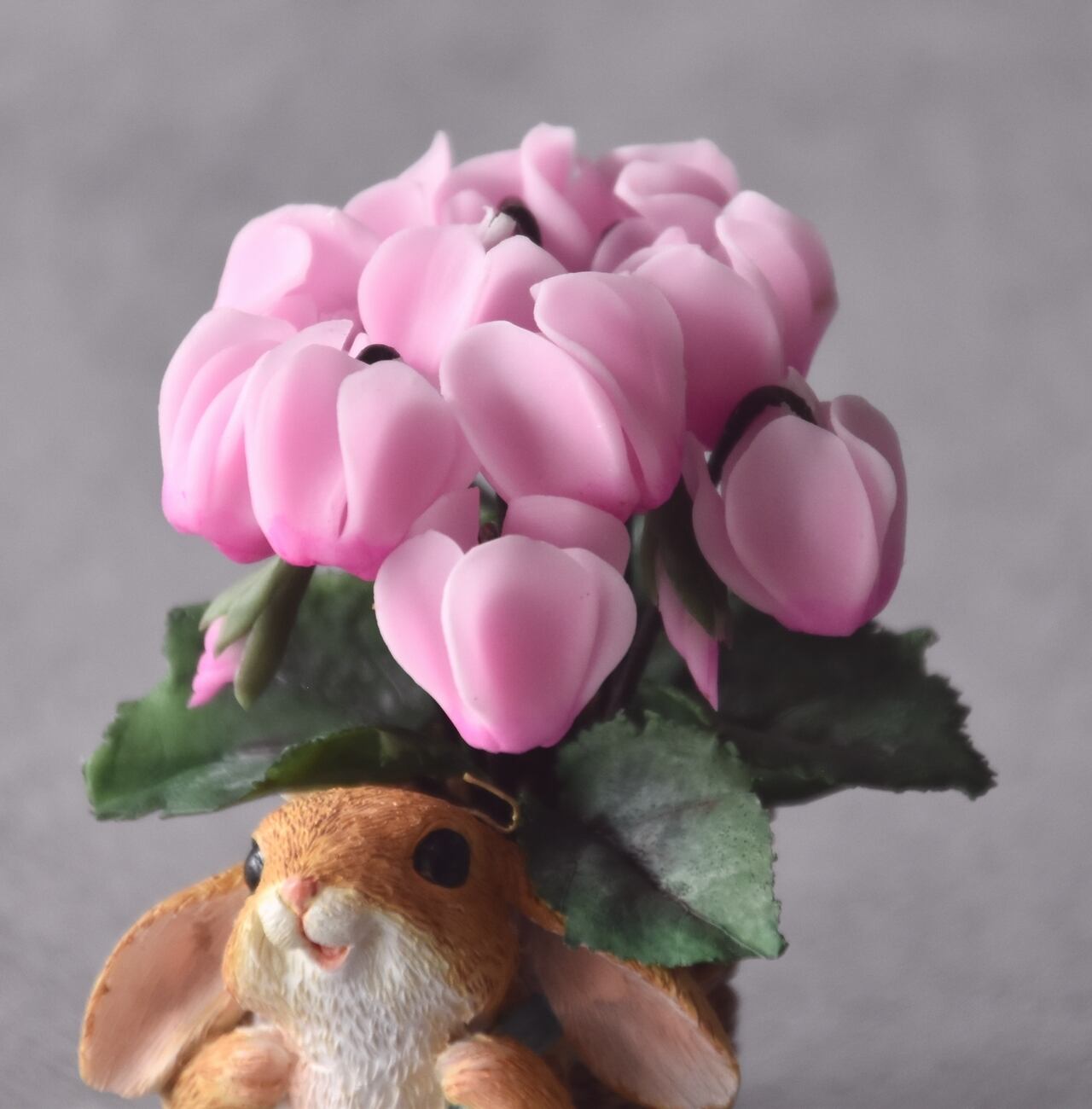 【粘土のお花】 小さなシクラメン ピンク うさぎポット S1333