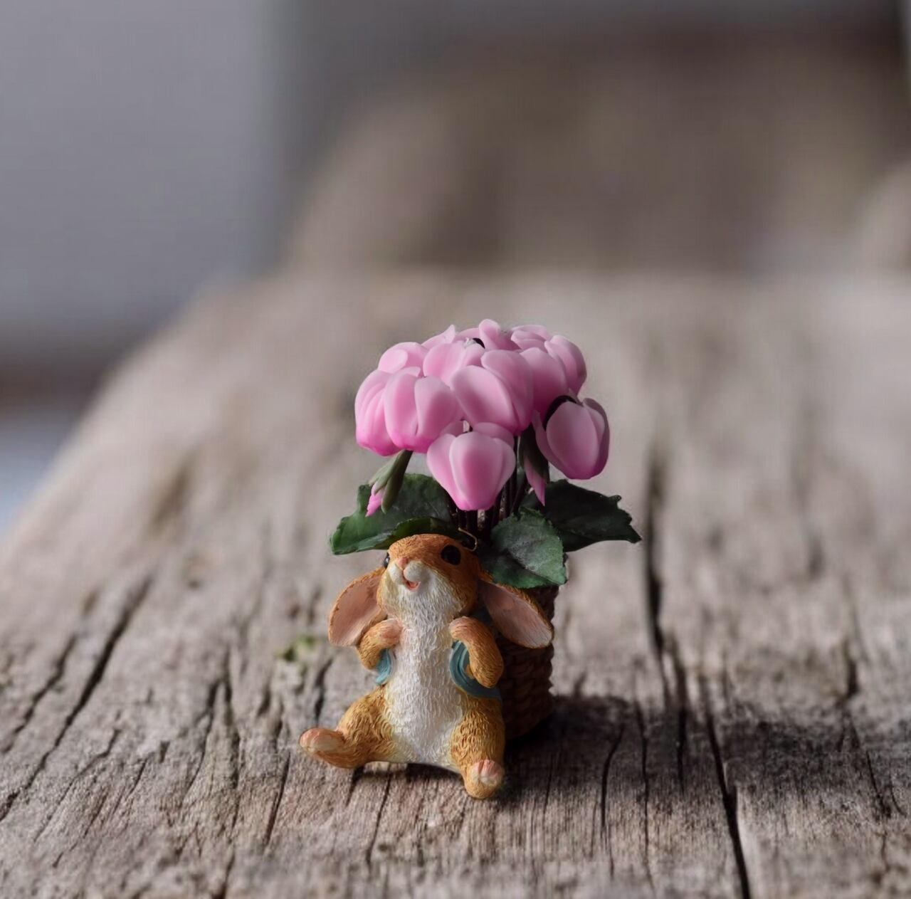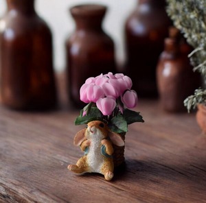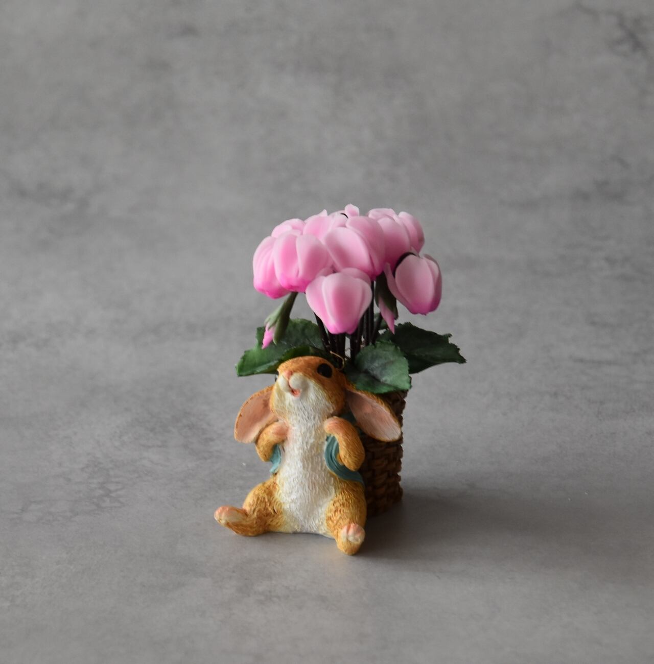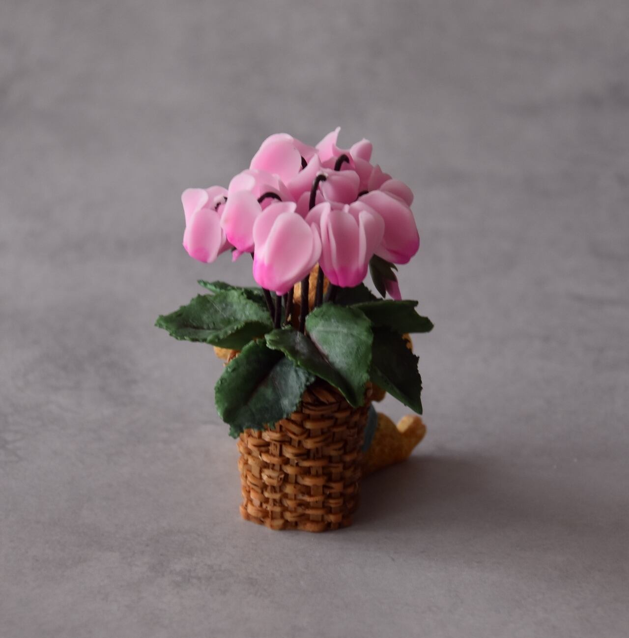 【粘土のお花】 小さなシクラメン ピンク うさぎポット S1333