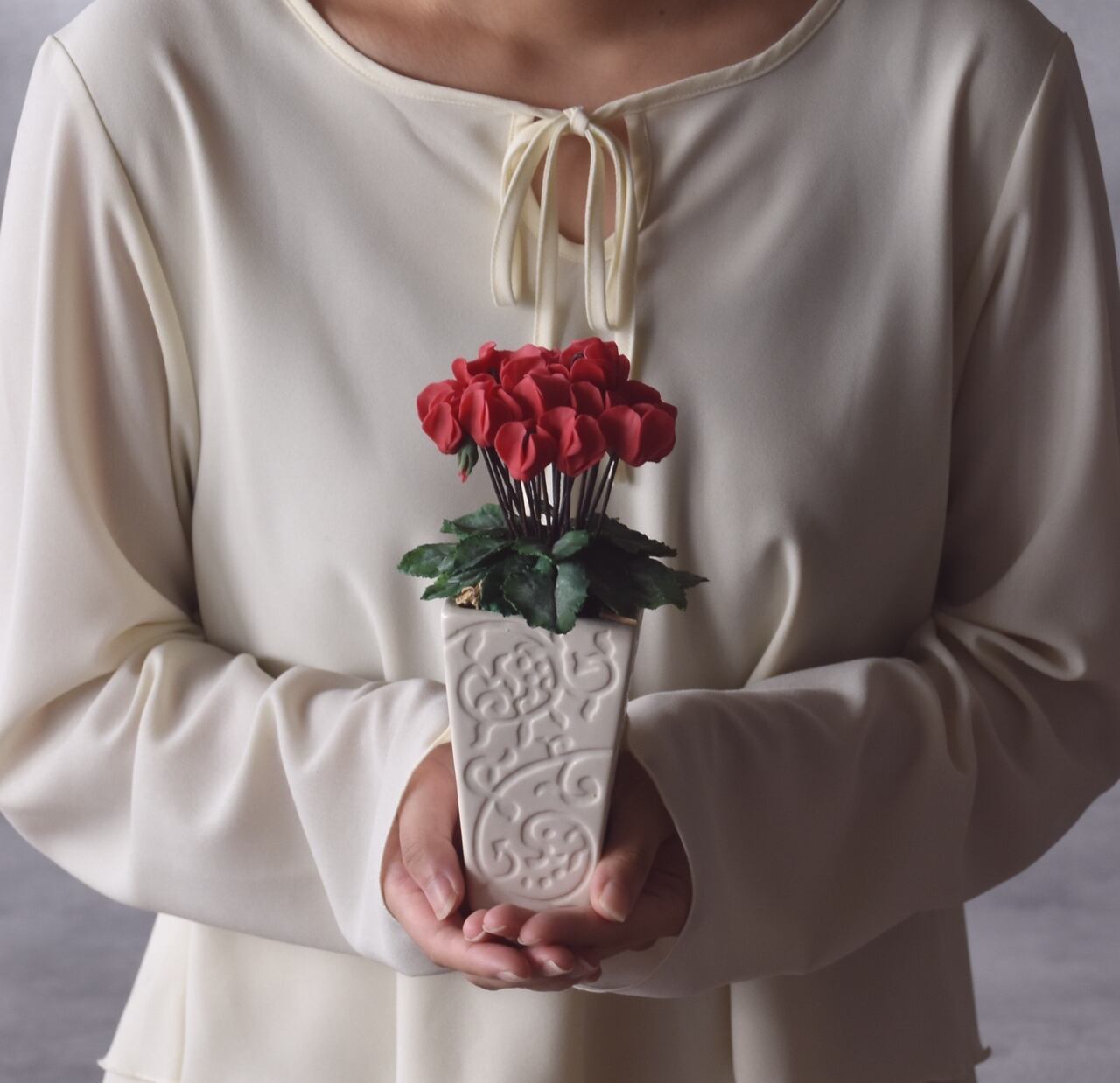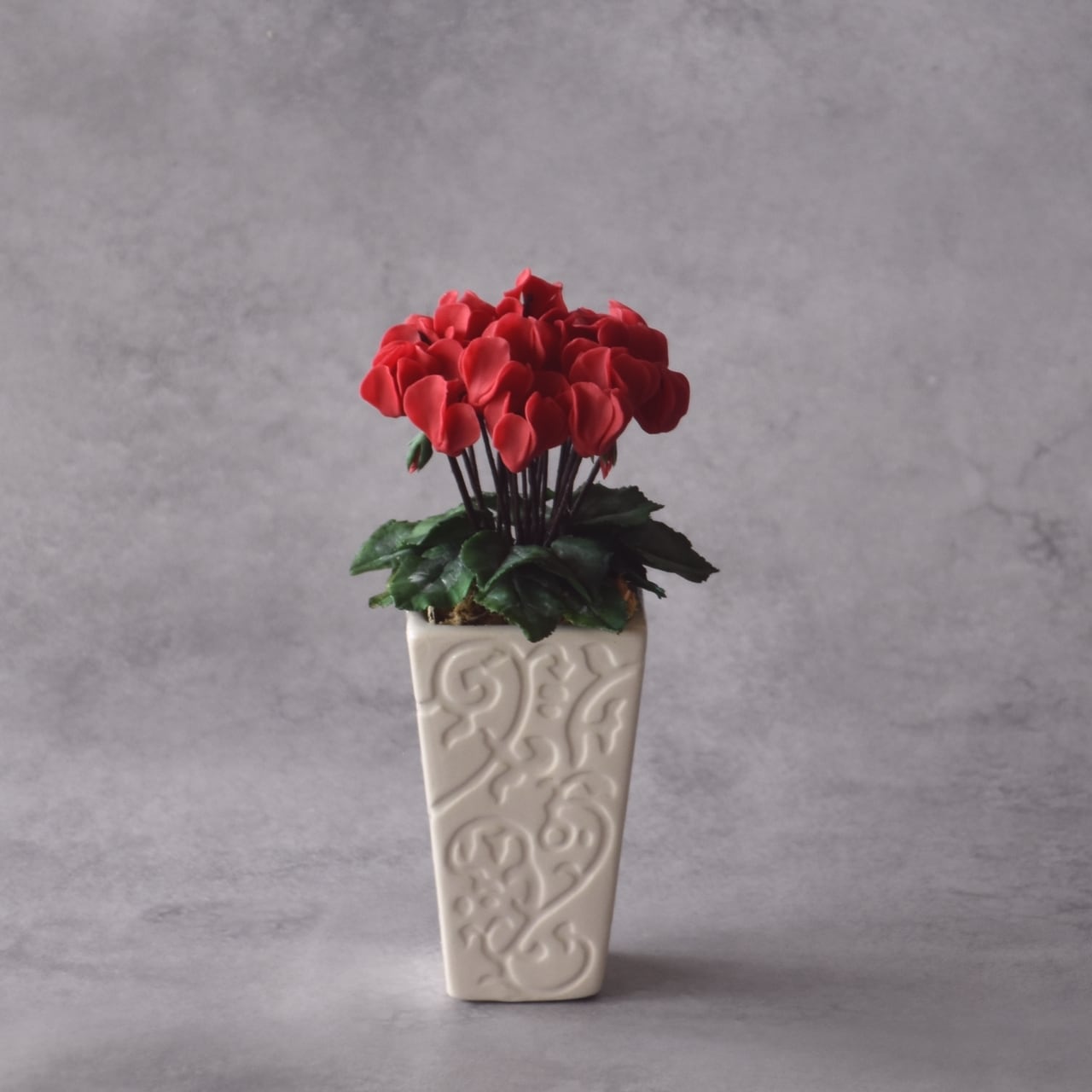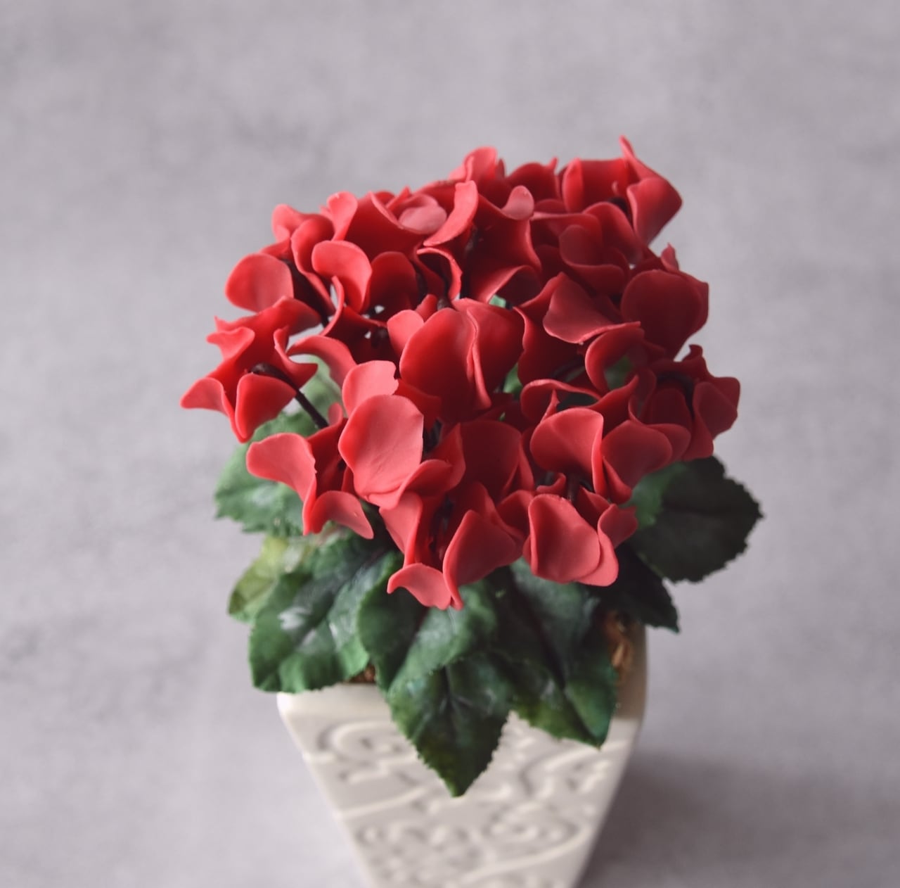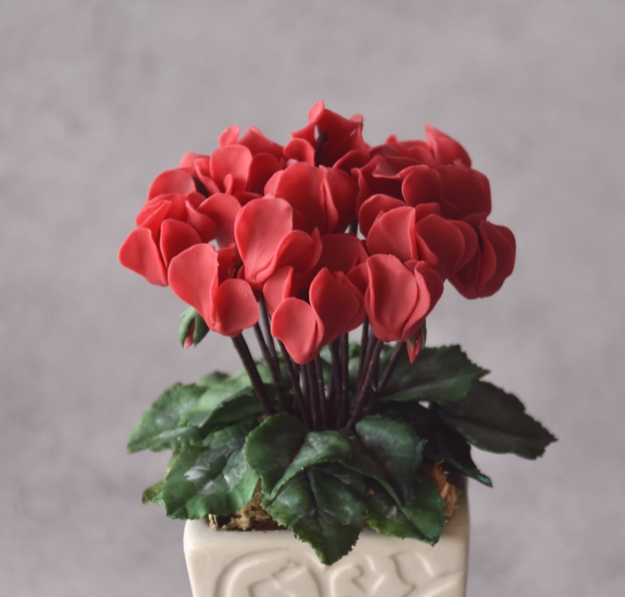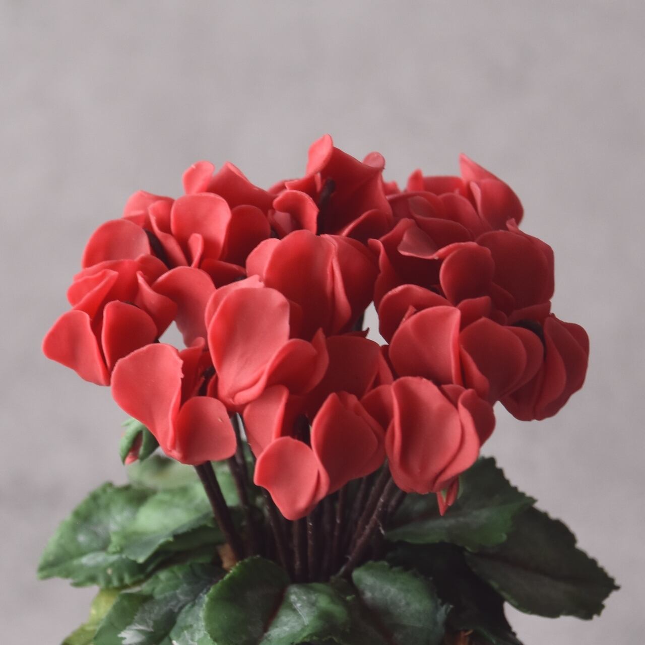 【粘土のお花】 小さなシクラメン 赤 S1336