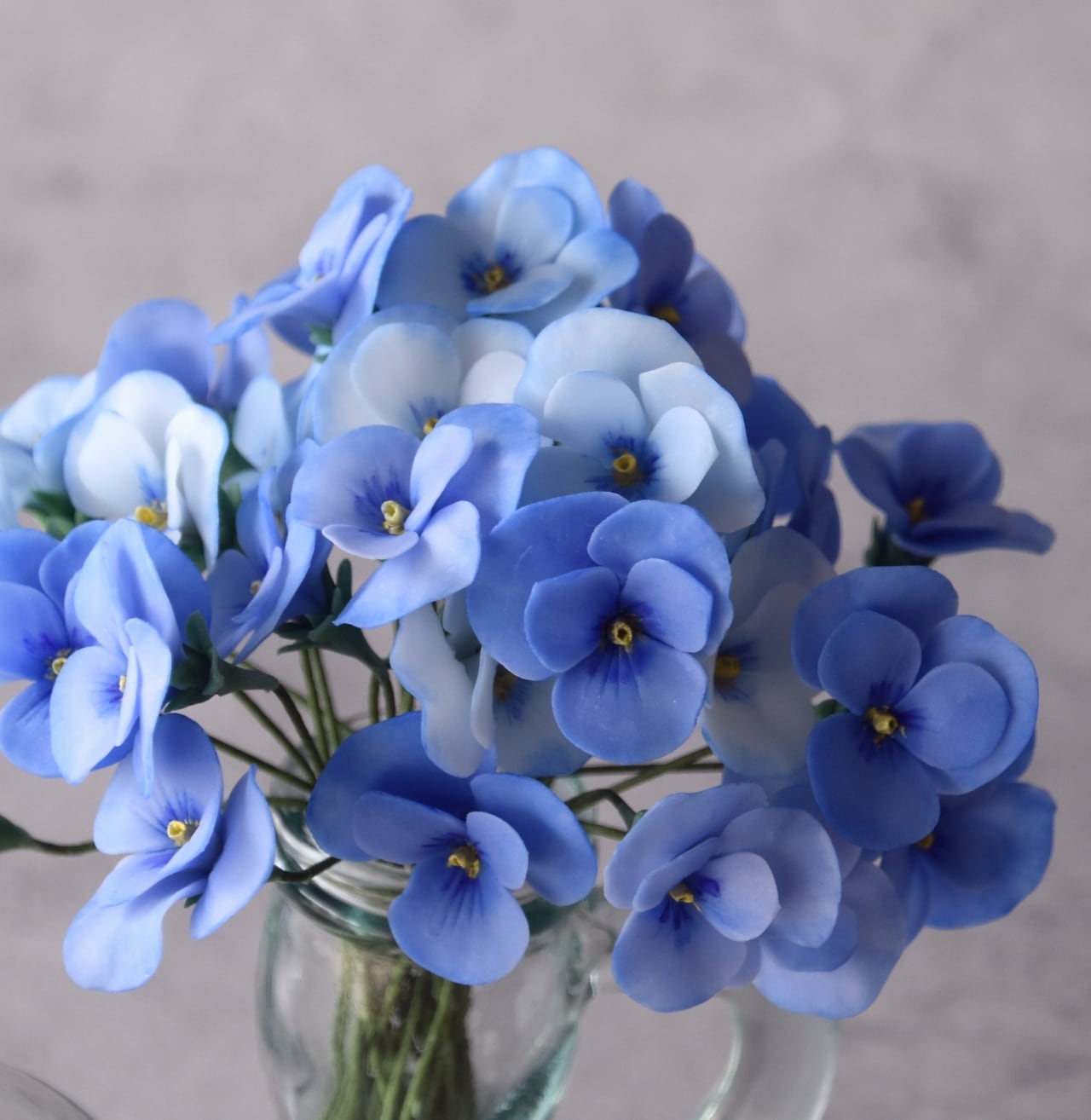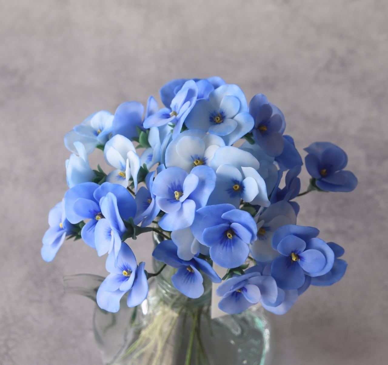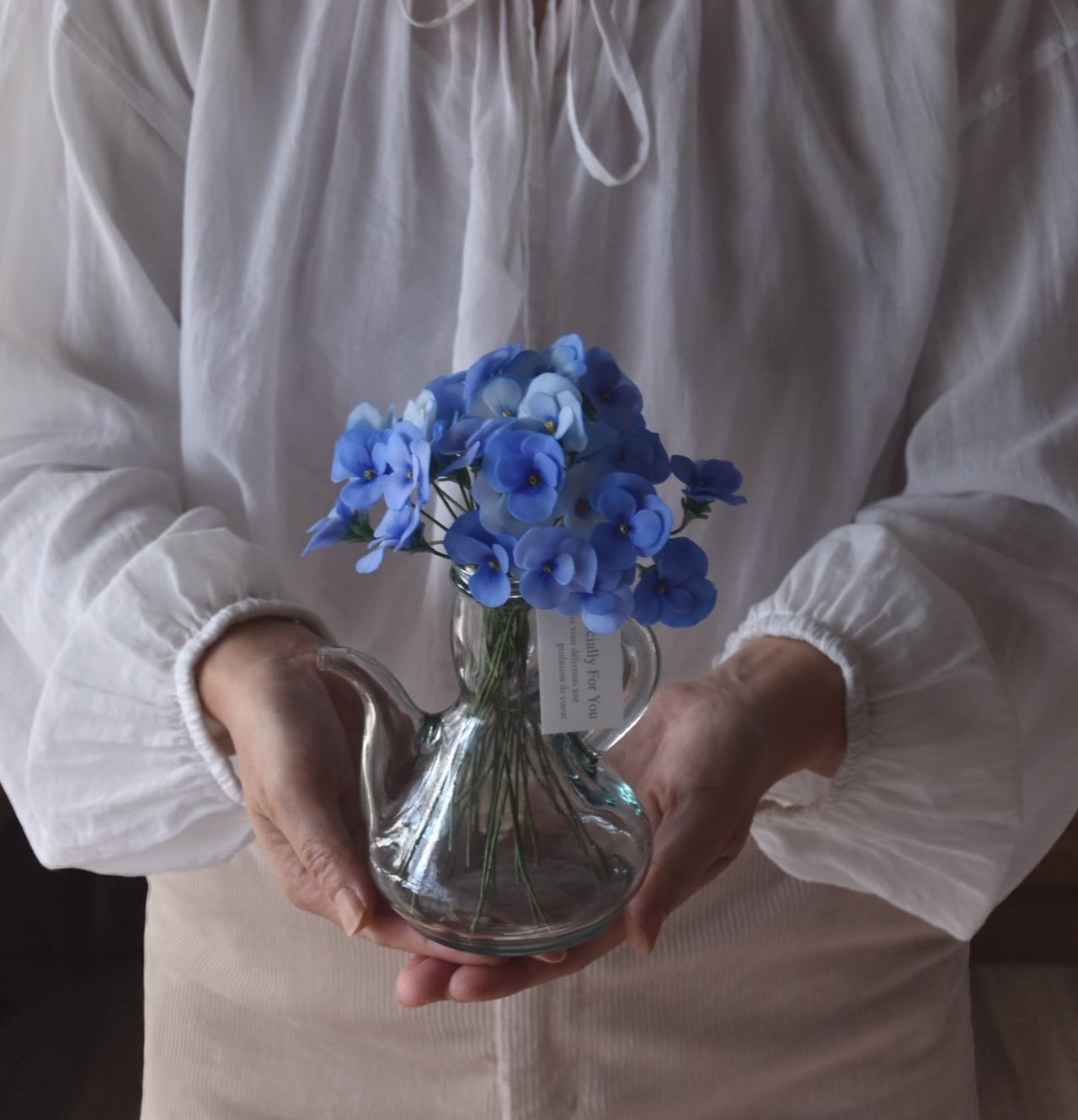 シンプルなガラス製のフラワーボトルが、小さなビオラの可憐さをより引き立ててくれます。