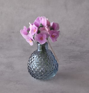 ガラス製のフラワーボトルが、小さなビオラの可憐さをより引き立ててくれます。