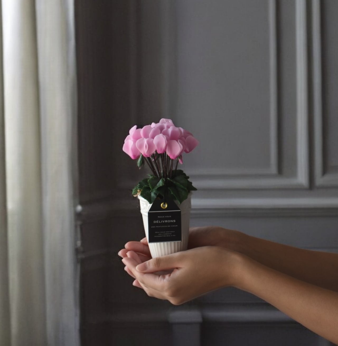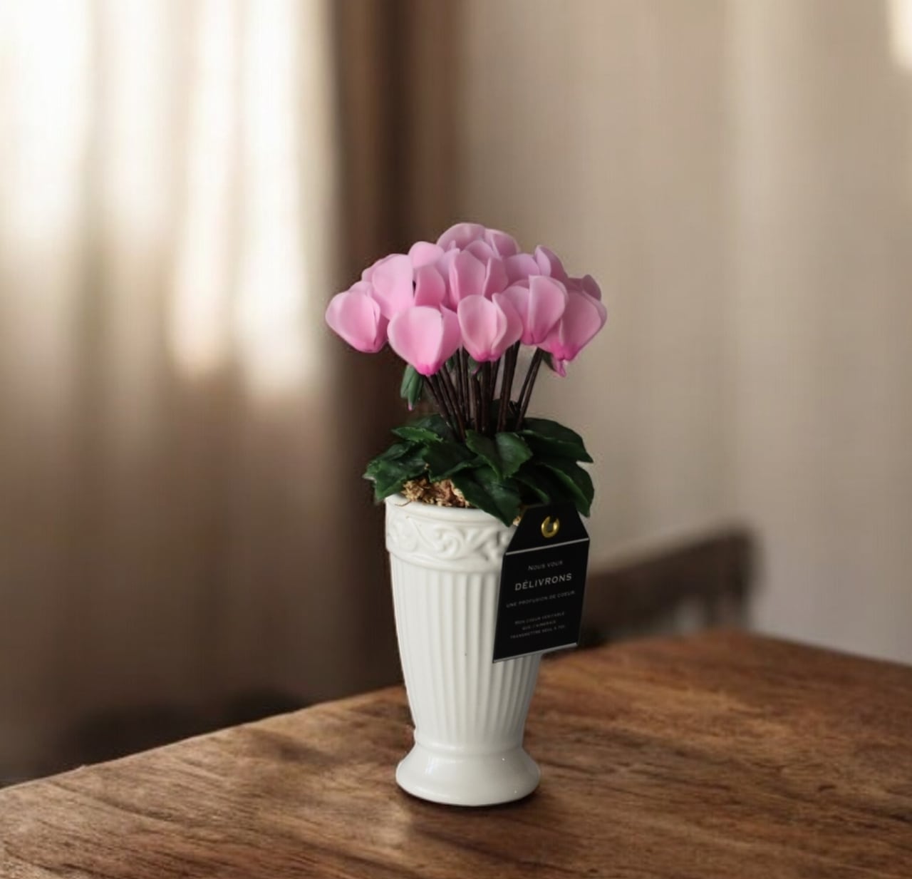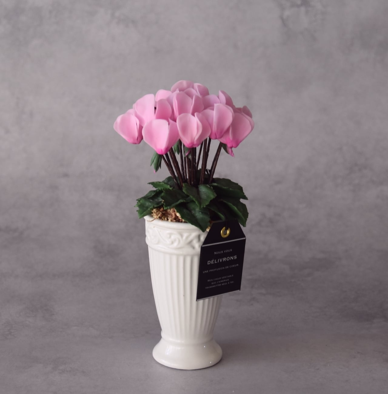 花びらは一枚一枚丁寧に薄く伸ばし、エレガントなフラワーポットにたっぷりと植え込んでいます。