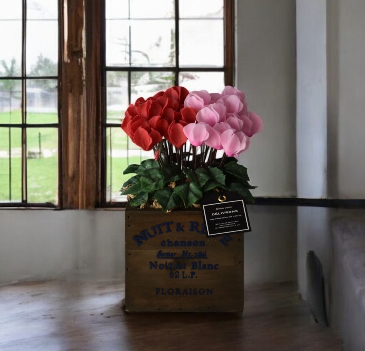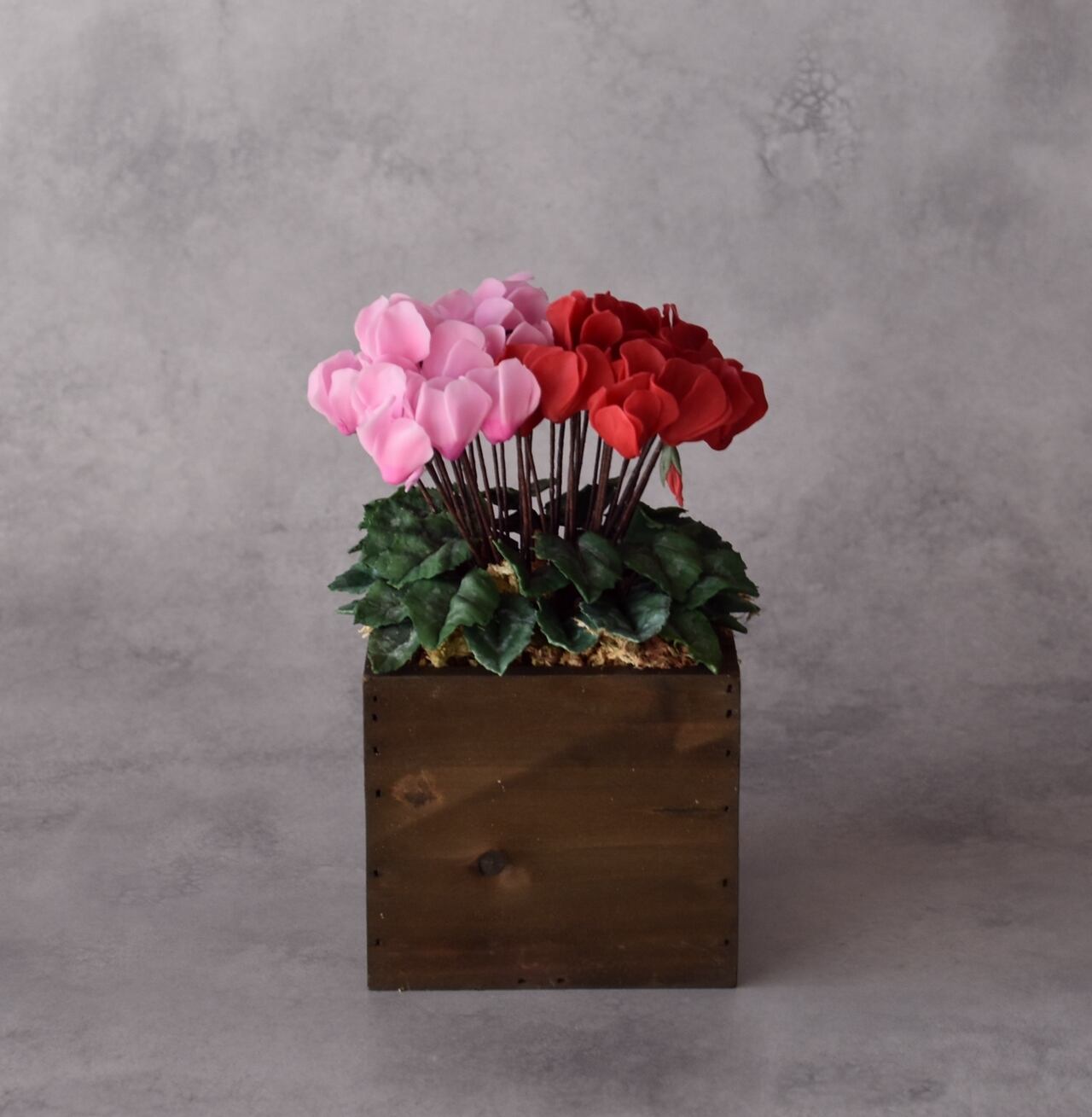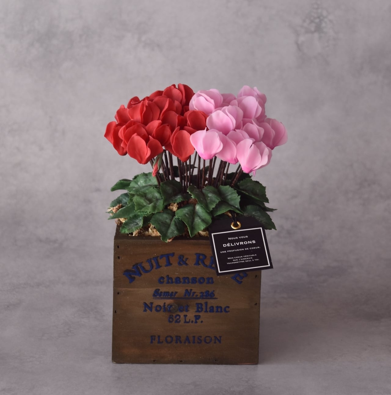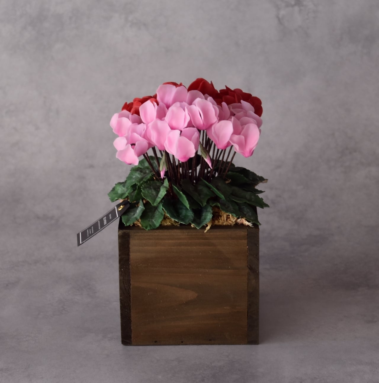 花びらは一枚一枚丁寧に薄く伸ばし、ウッドプランターにたっぷりと植え込んでいます。
