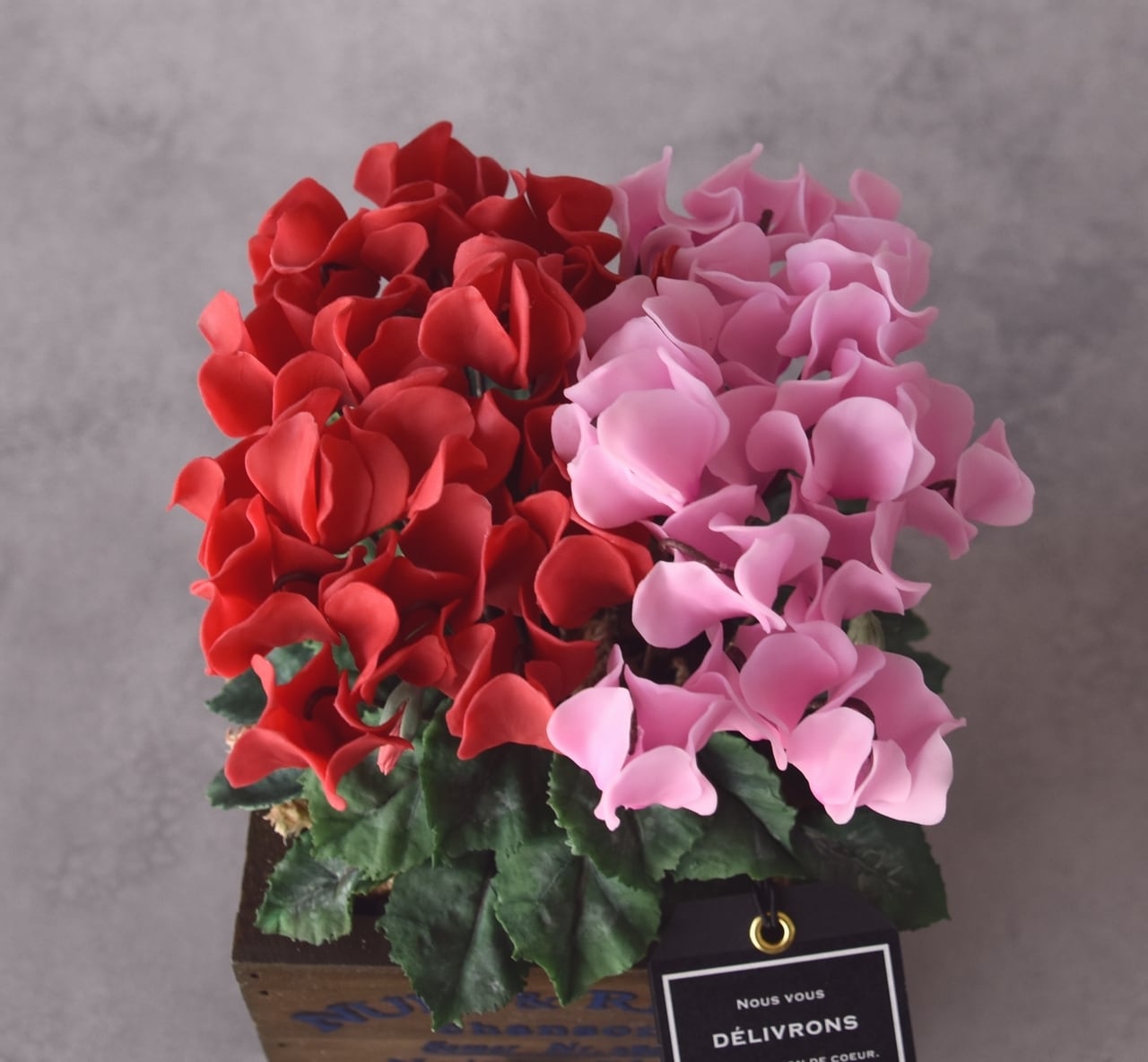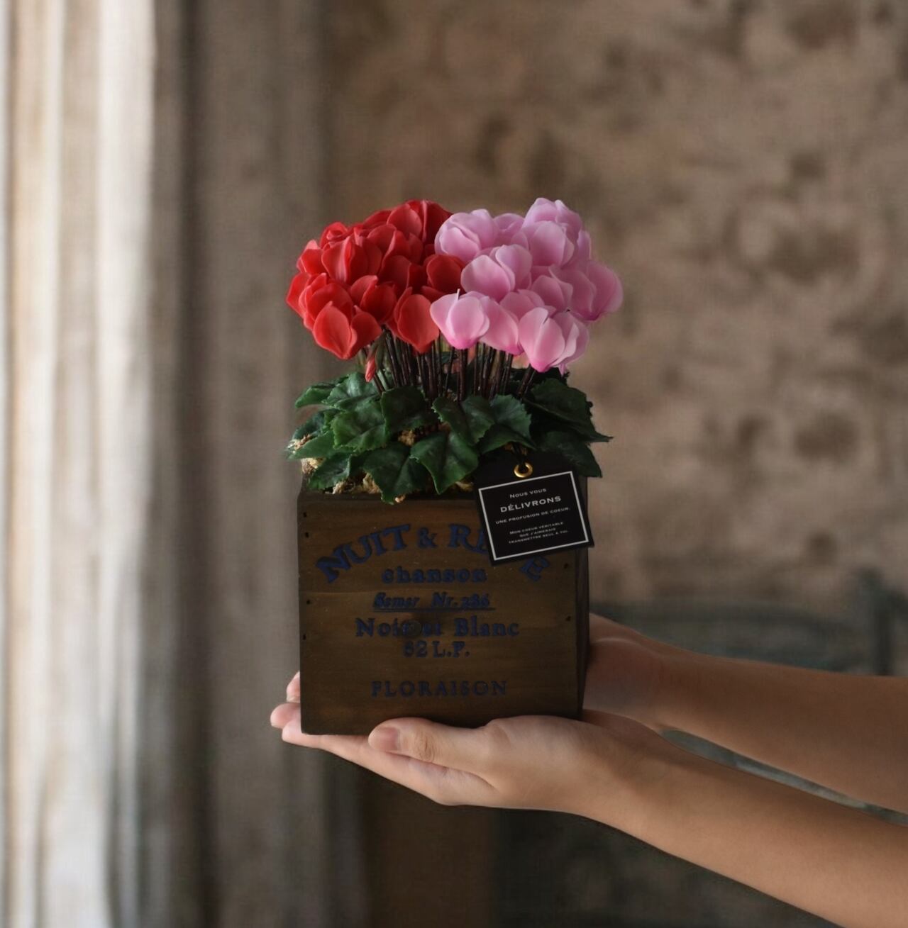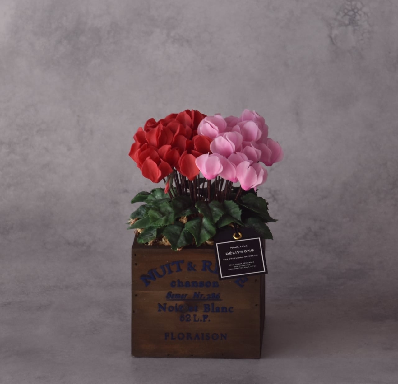 冬になると、たくさんのシクラメンが店頭に並びます。