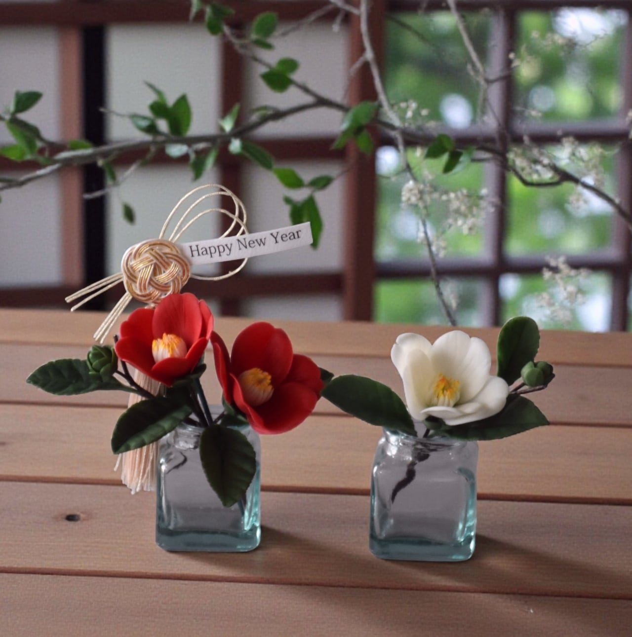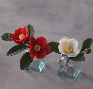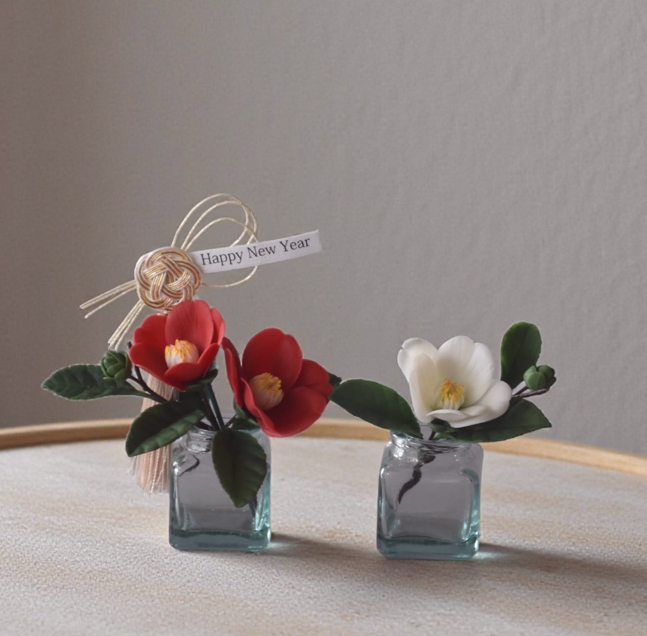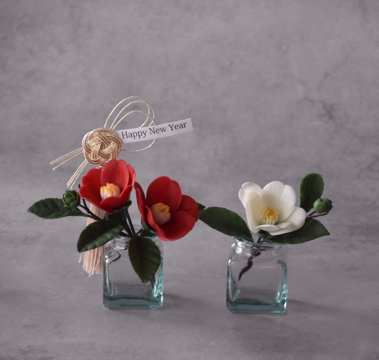 ◆粘土のお花◆ 椿 お正月アレンジ【紅白2個セット】 T1363