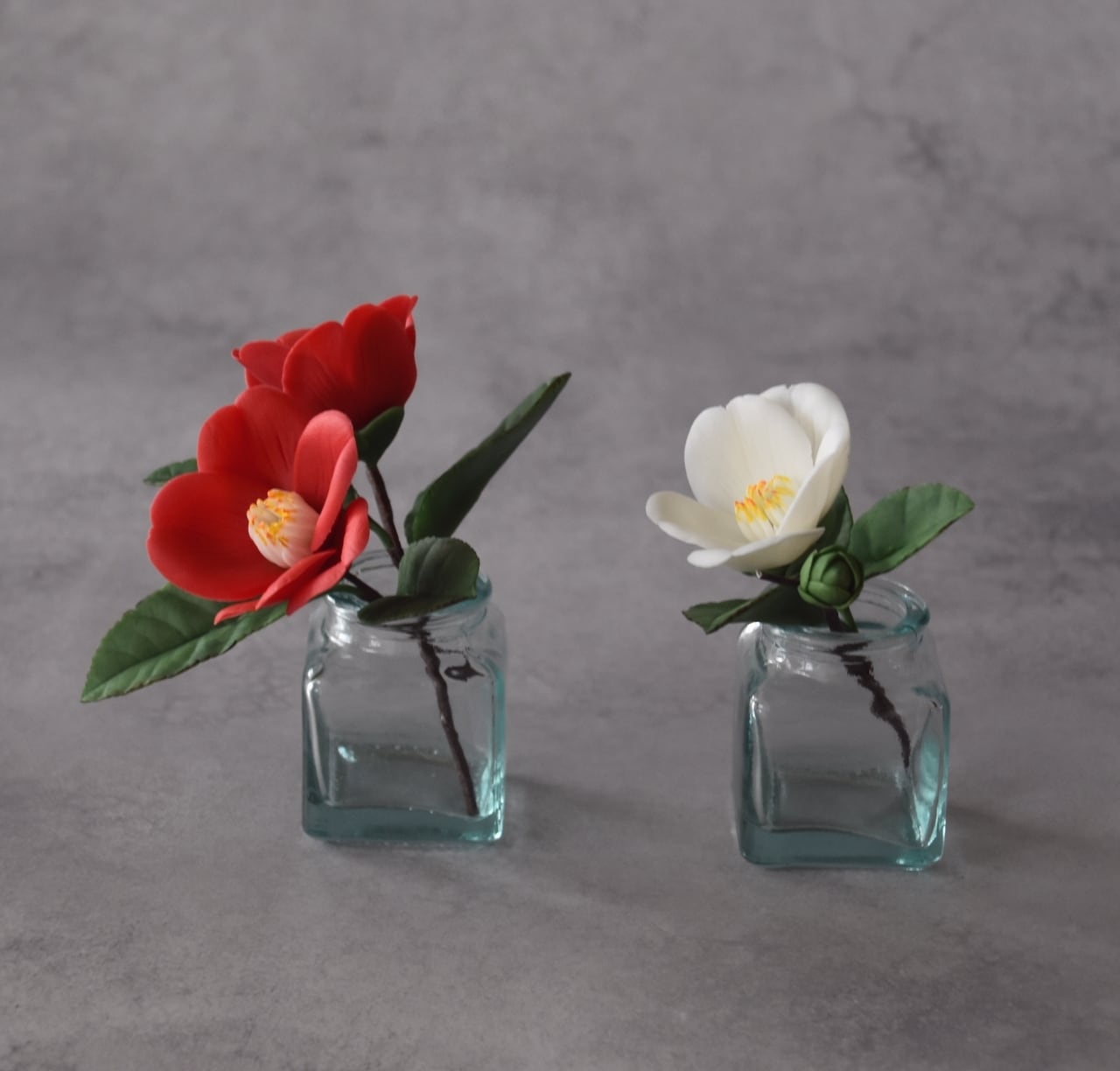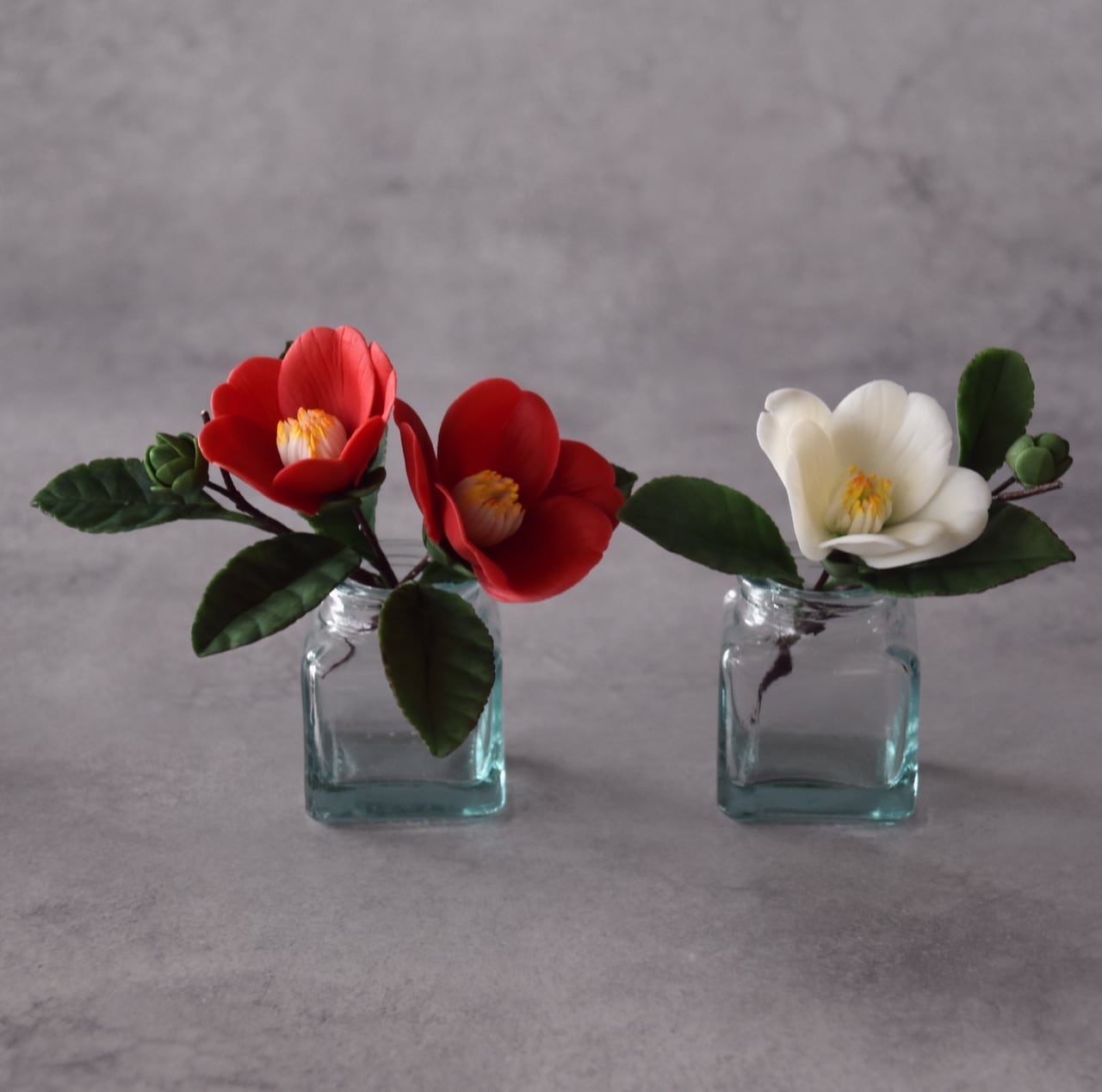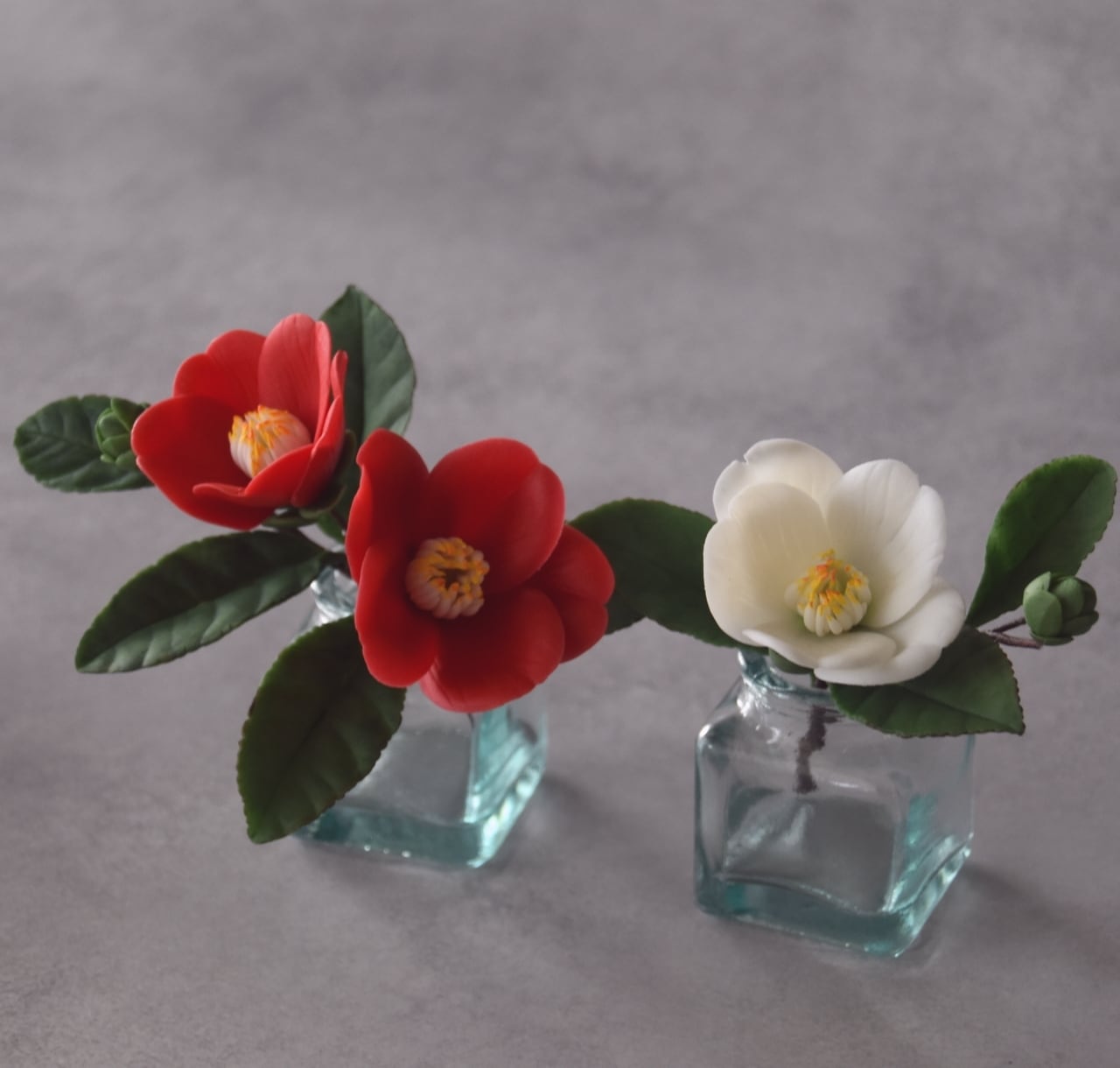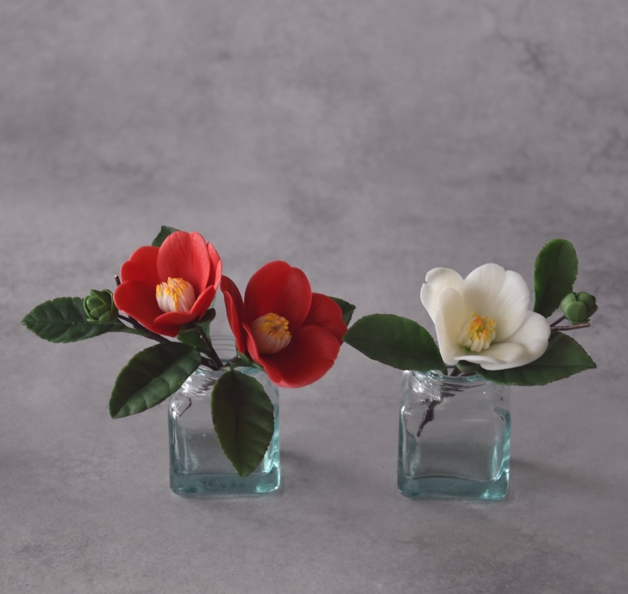 ◆粘土のお花◆ 椿 お正月アレンジ【紅白2個セット】 T1363