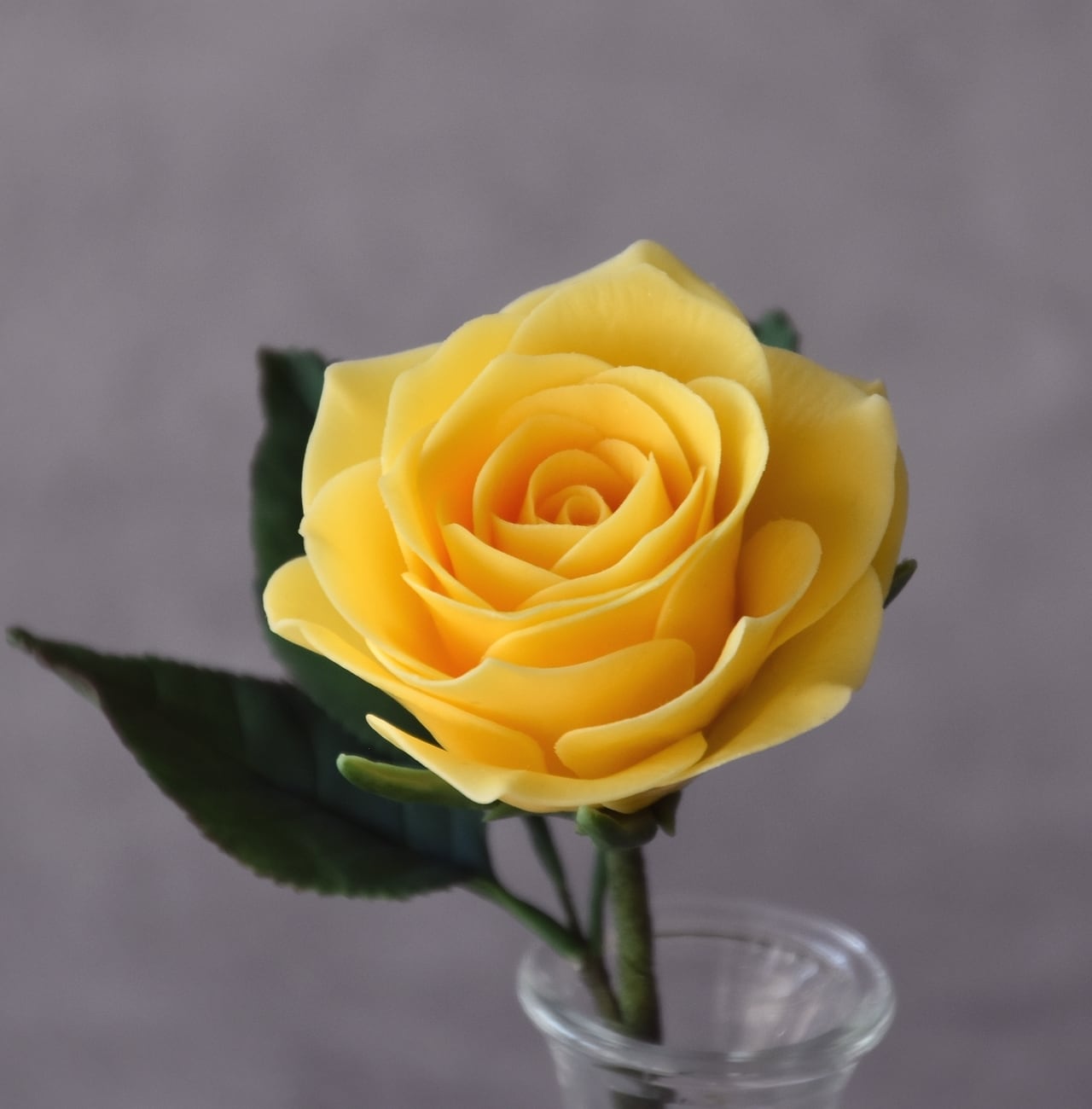 ◆粘土のお花◆ 薔薇 一輪 イエロー・・・B1375