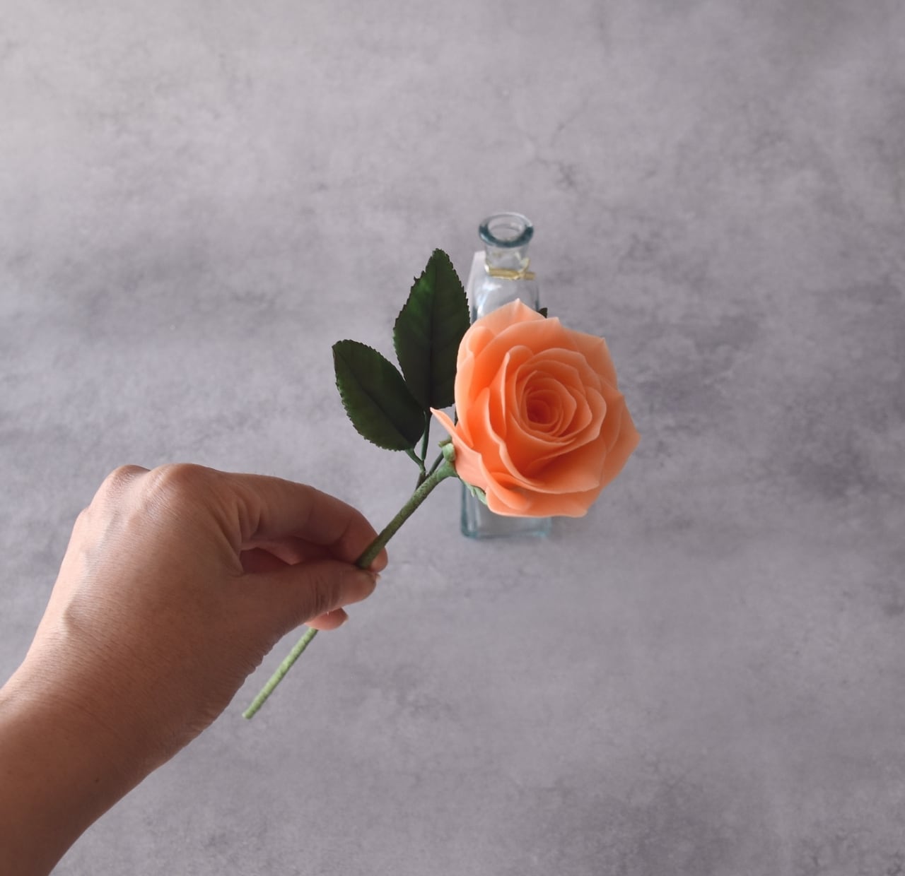 ◆粘土のお花◆ 薔薇 一輪 オレンジ・・・B1377