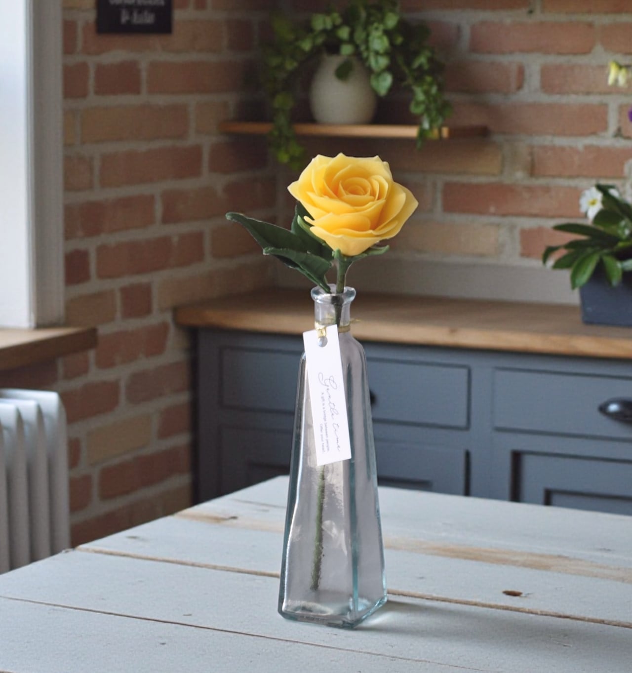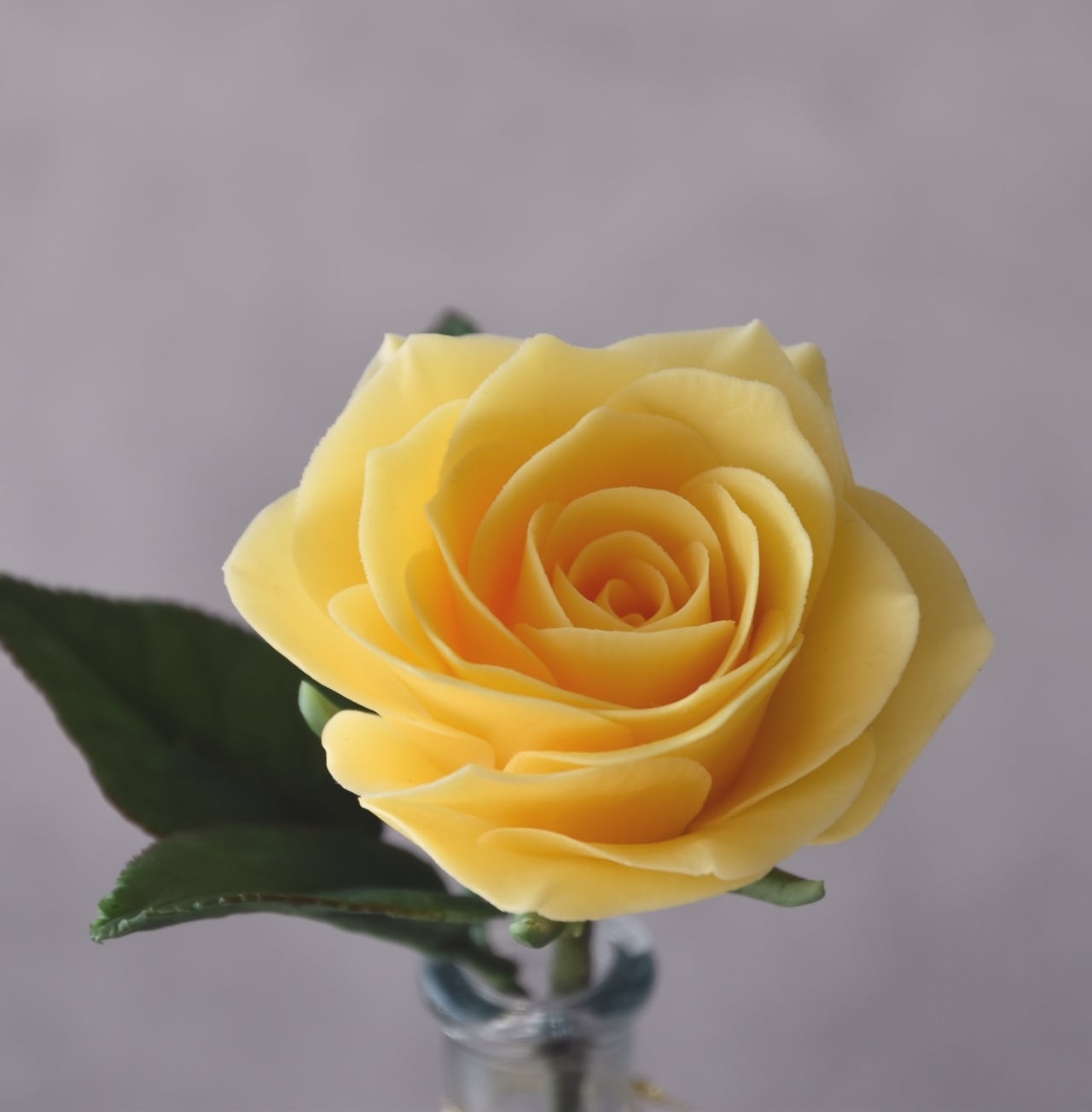 ◆粘土のお花◆ 薔薇 一輪 イエロー・・B1379