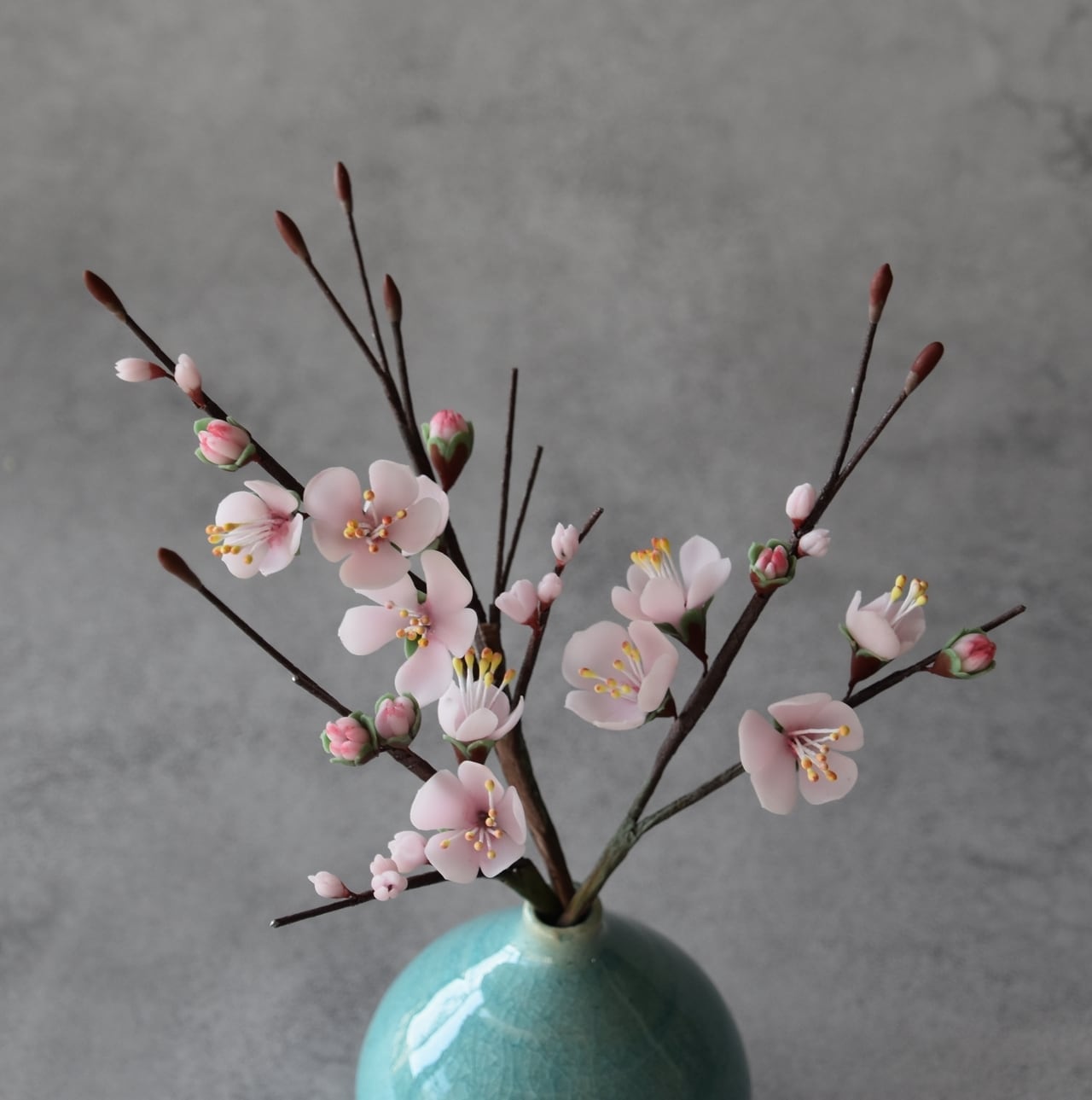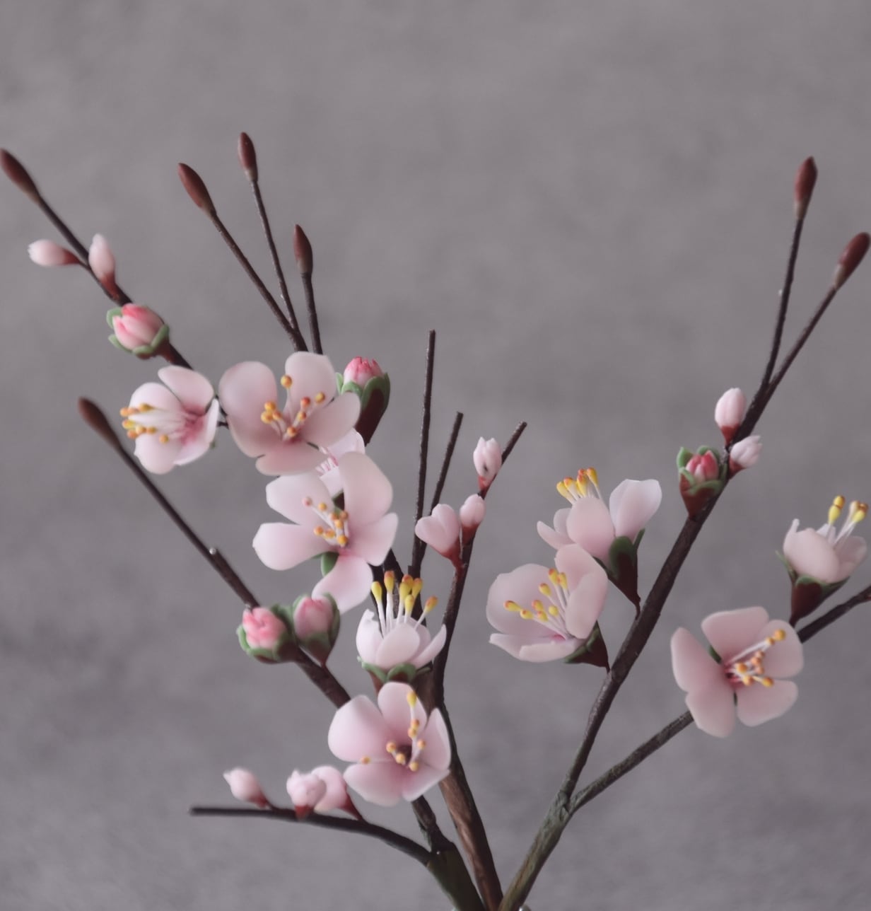 ●梅の花はすべて粘土で制作しています。