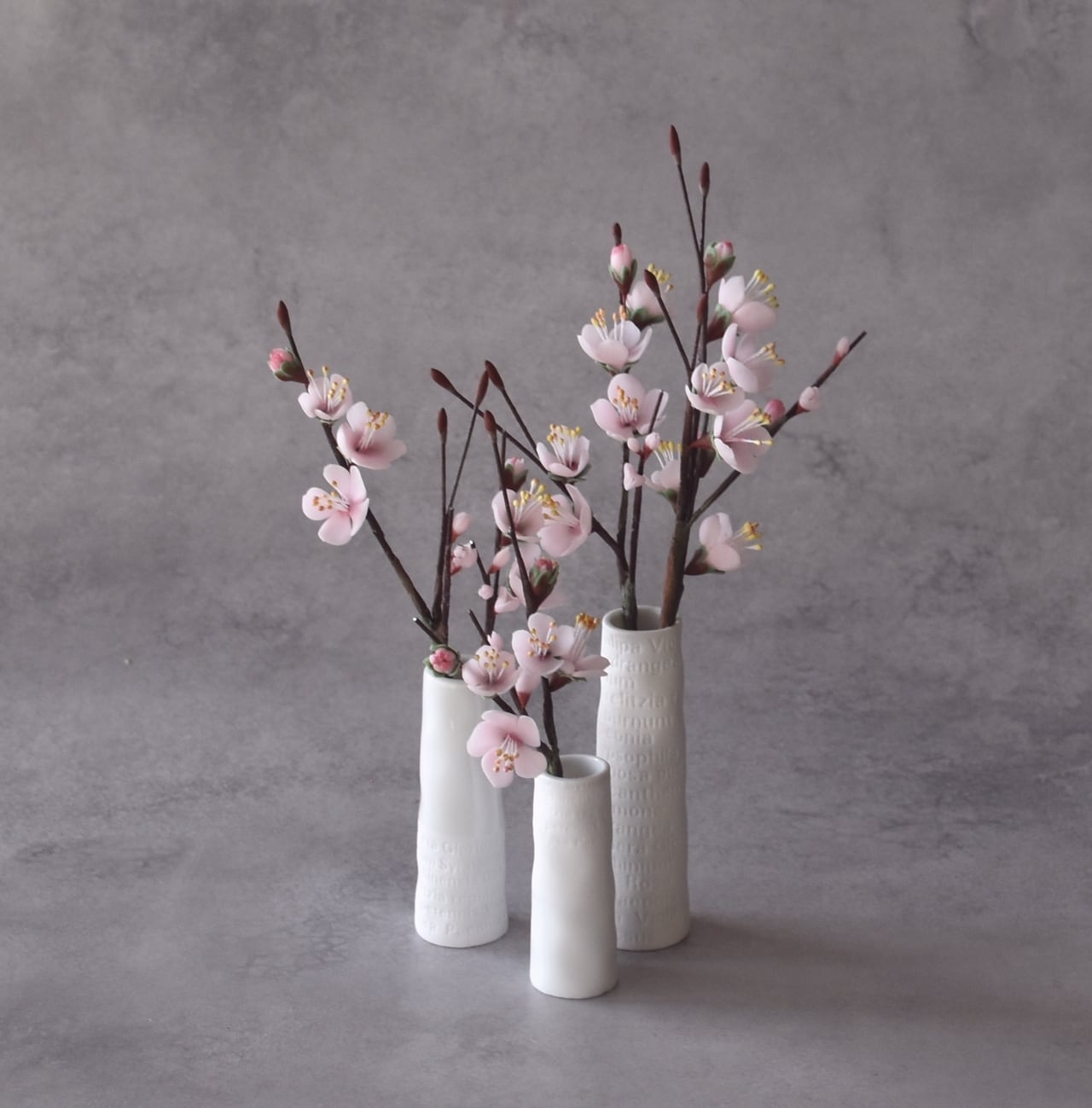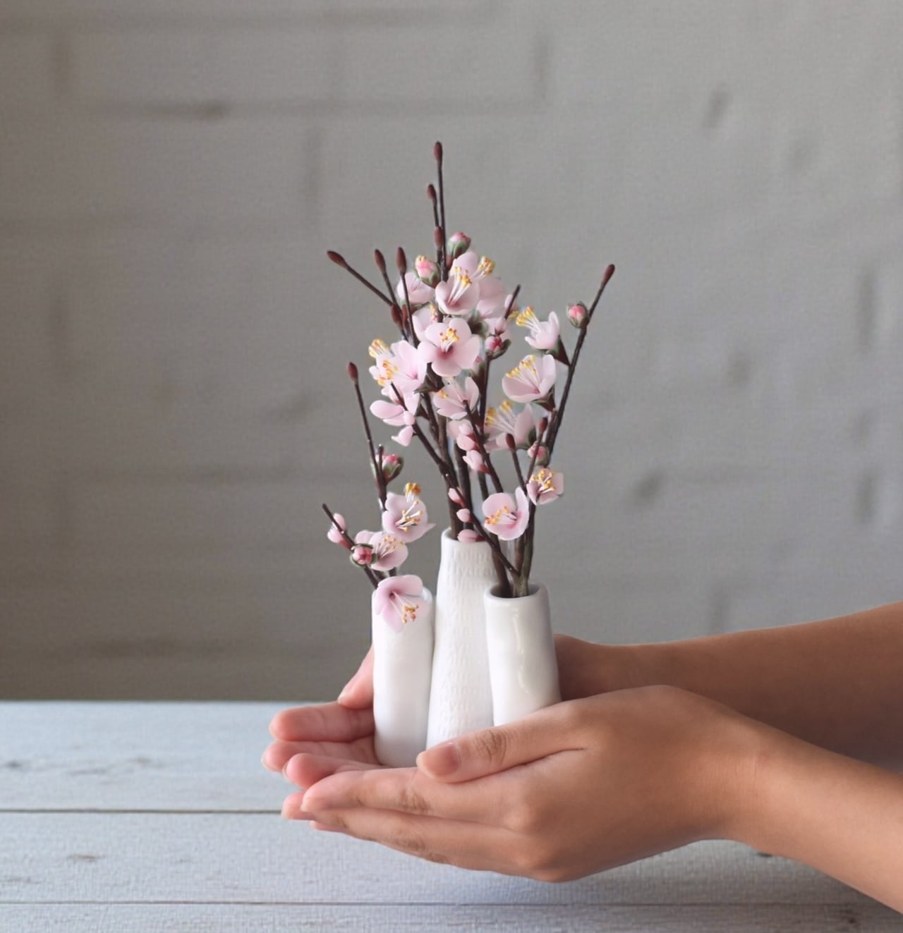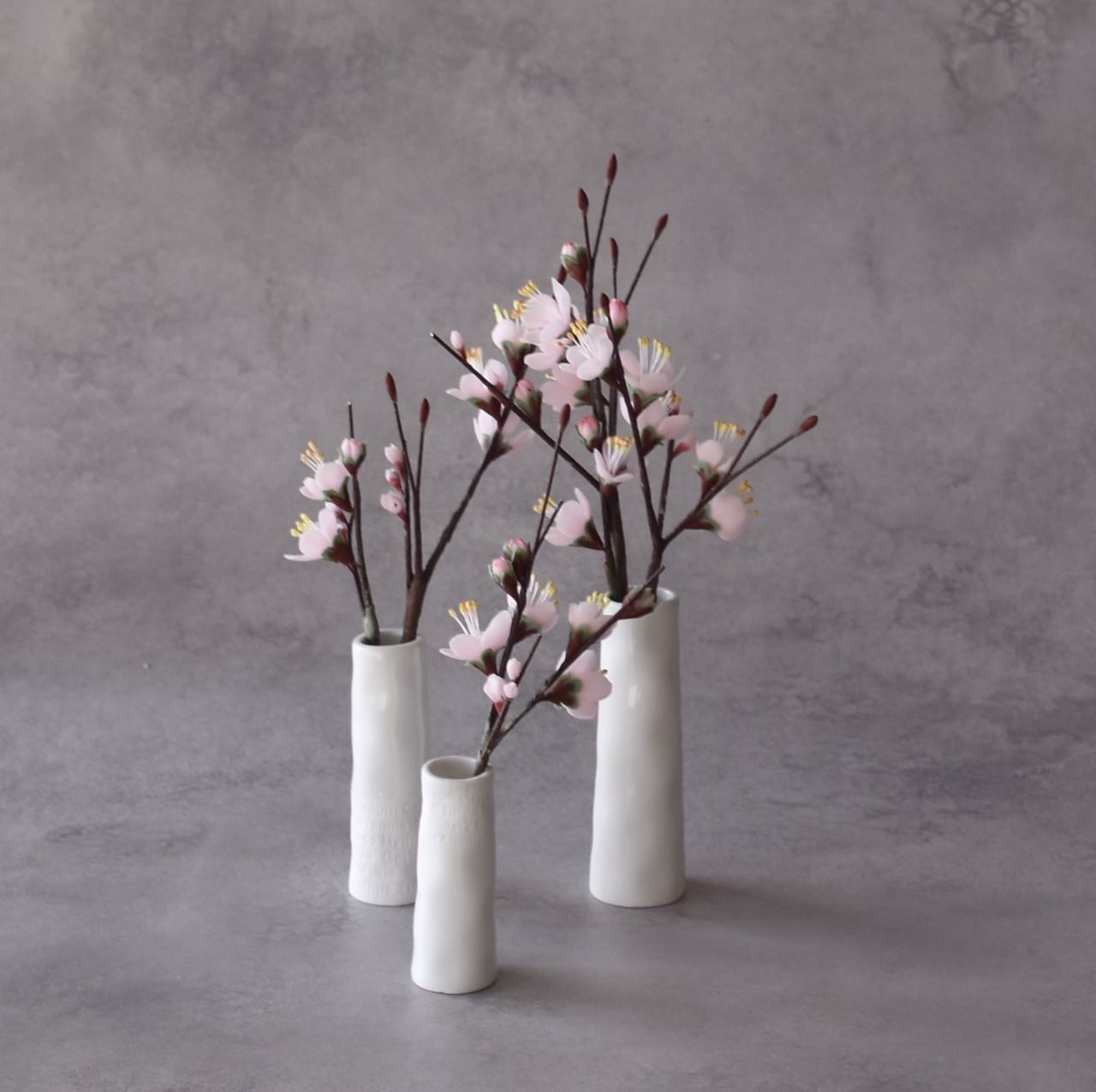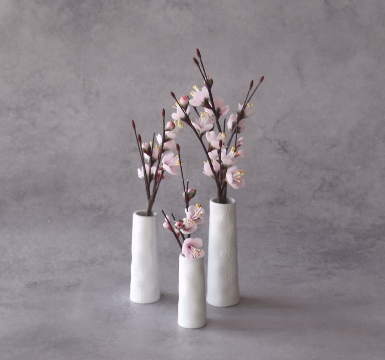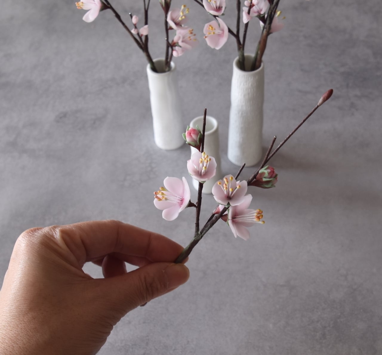 ●梅の花はすべて粘土で制作しています。