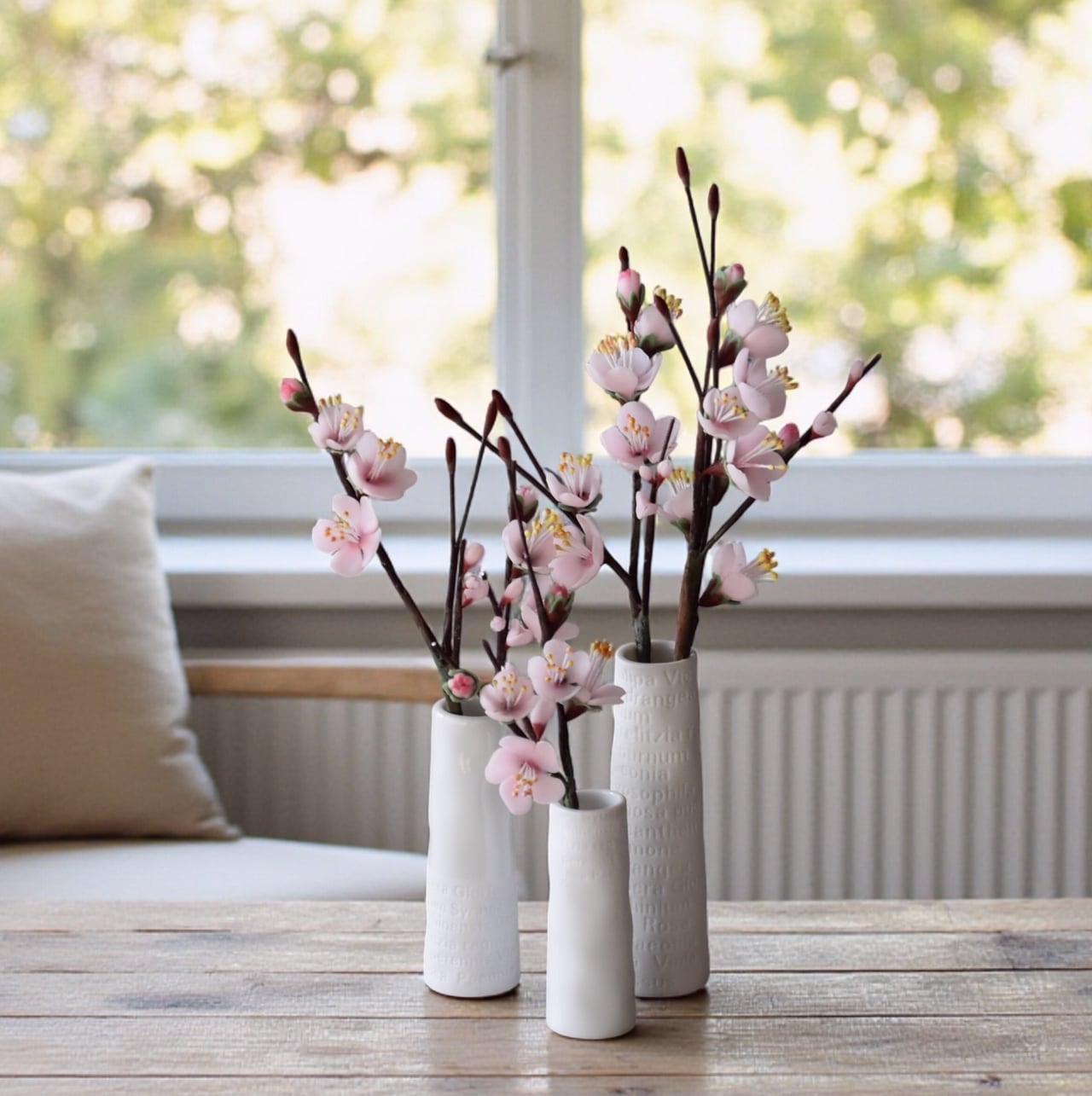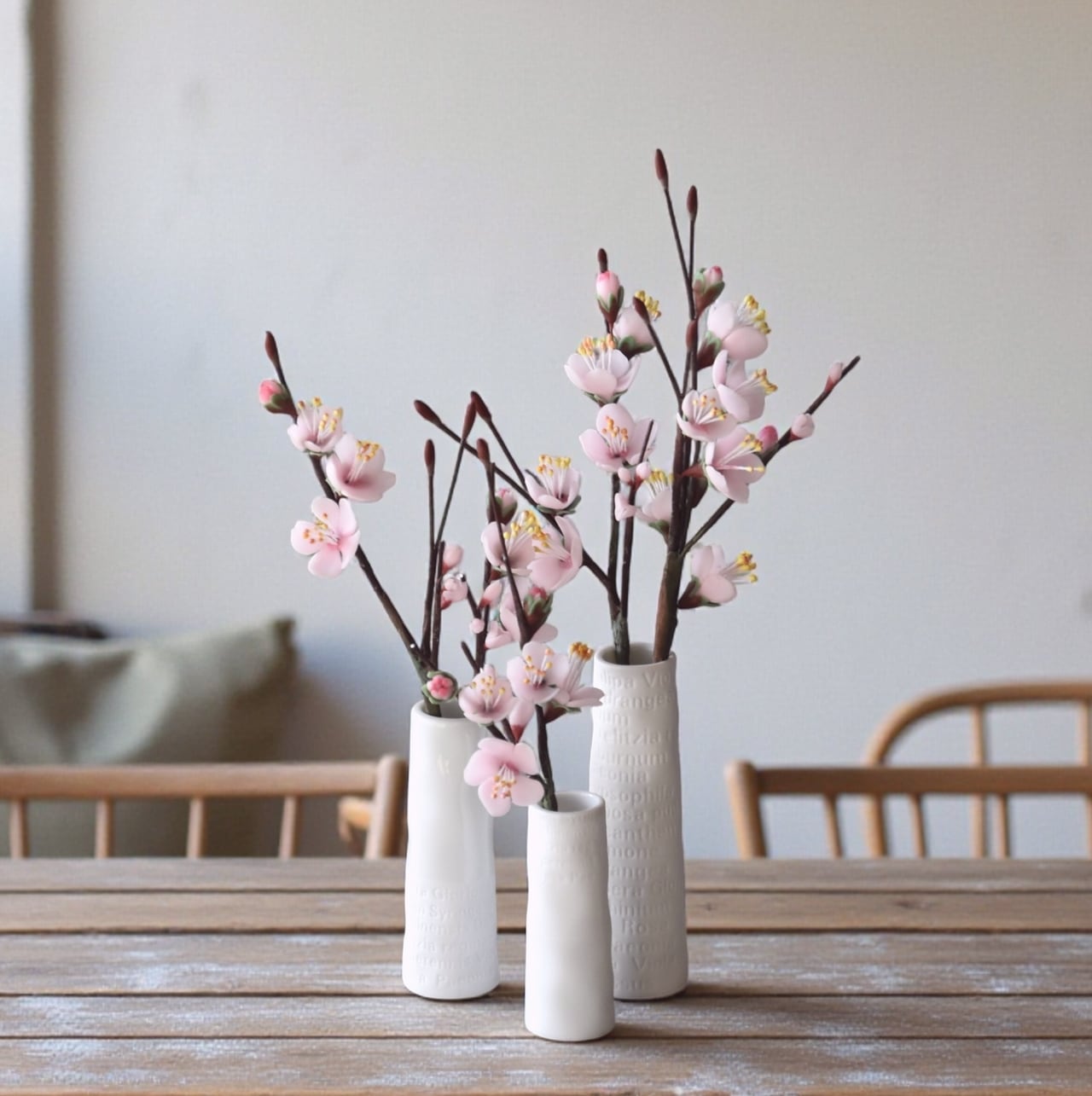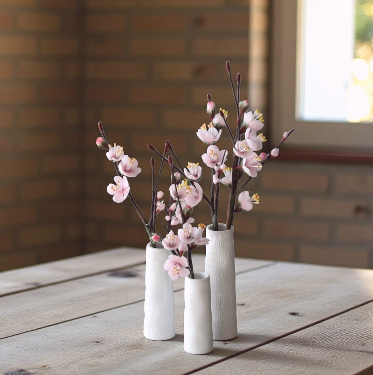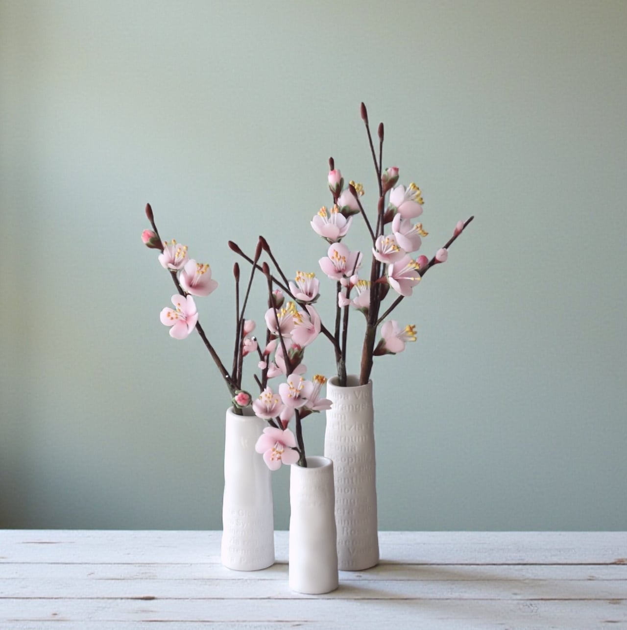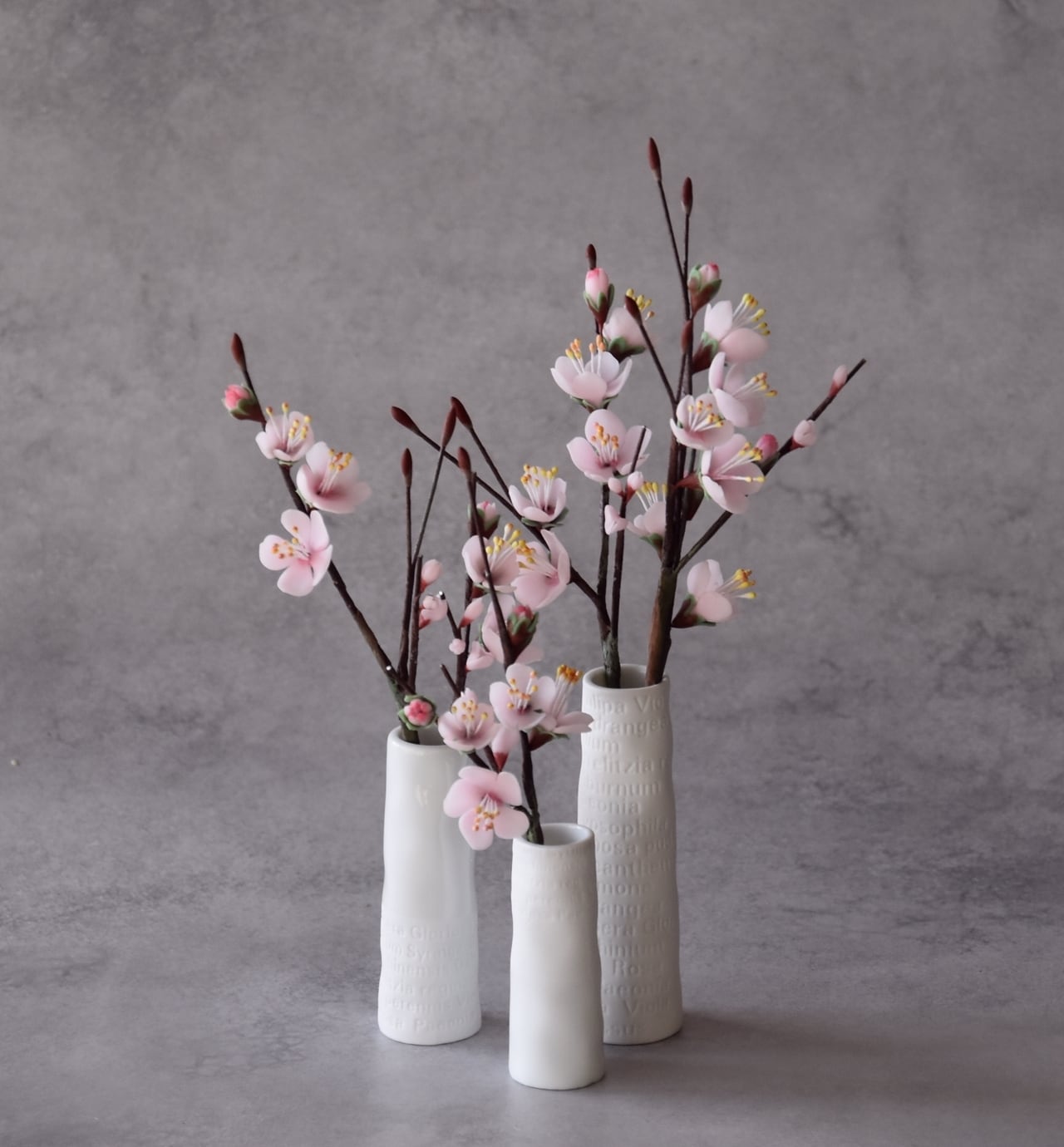 ●梅の花はすべて粘土で制作しています。