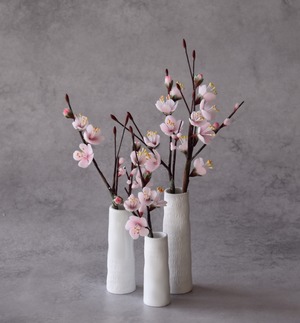 粘土で梅を制作し、小さな花瓶に生けました。