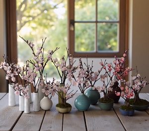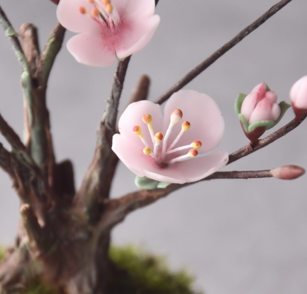 ●梅の花はすべて粘土で制作しています。