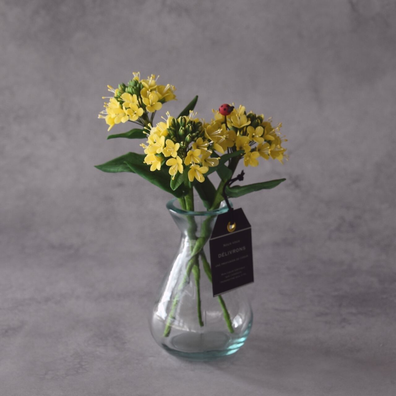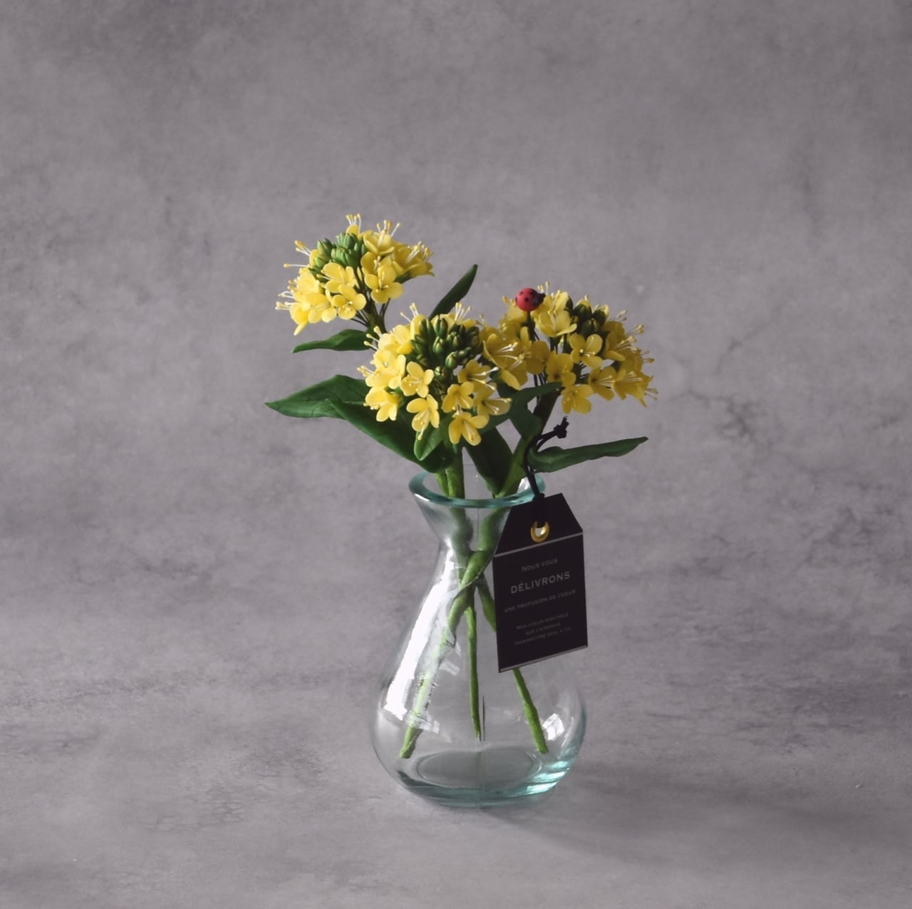 ぜひ、お部屋に可憐な草花を飾って、てんとう虫と一緒に春の訪れをお楽しみください。