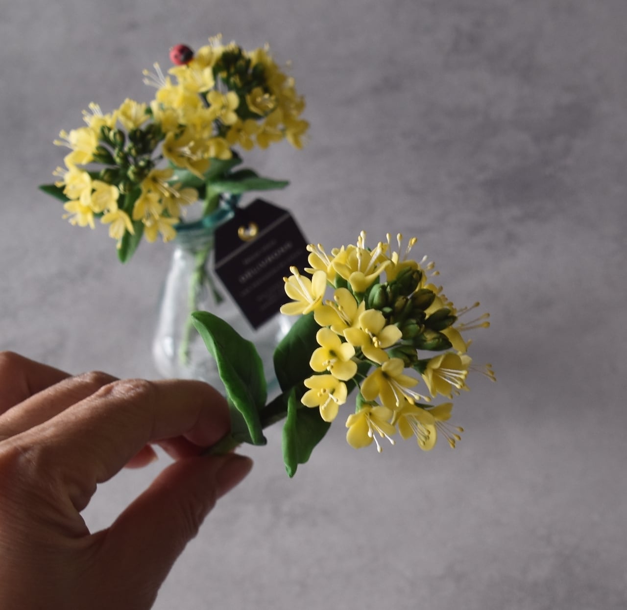 ◆粘土のお花◆ 菜の花とてんとう虫 N1391
