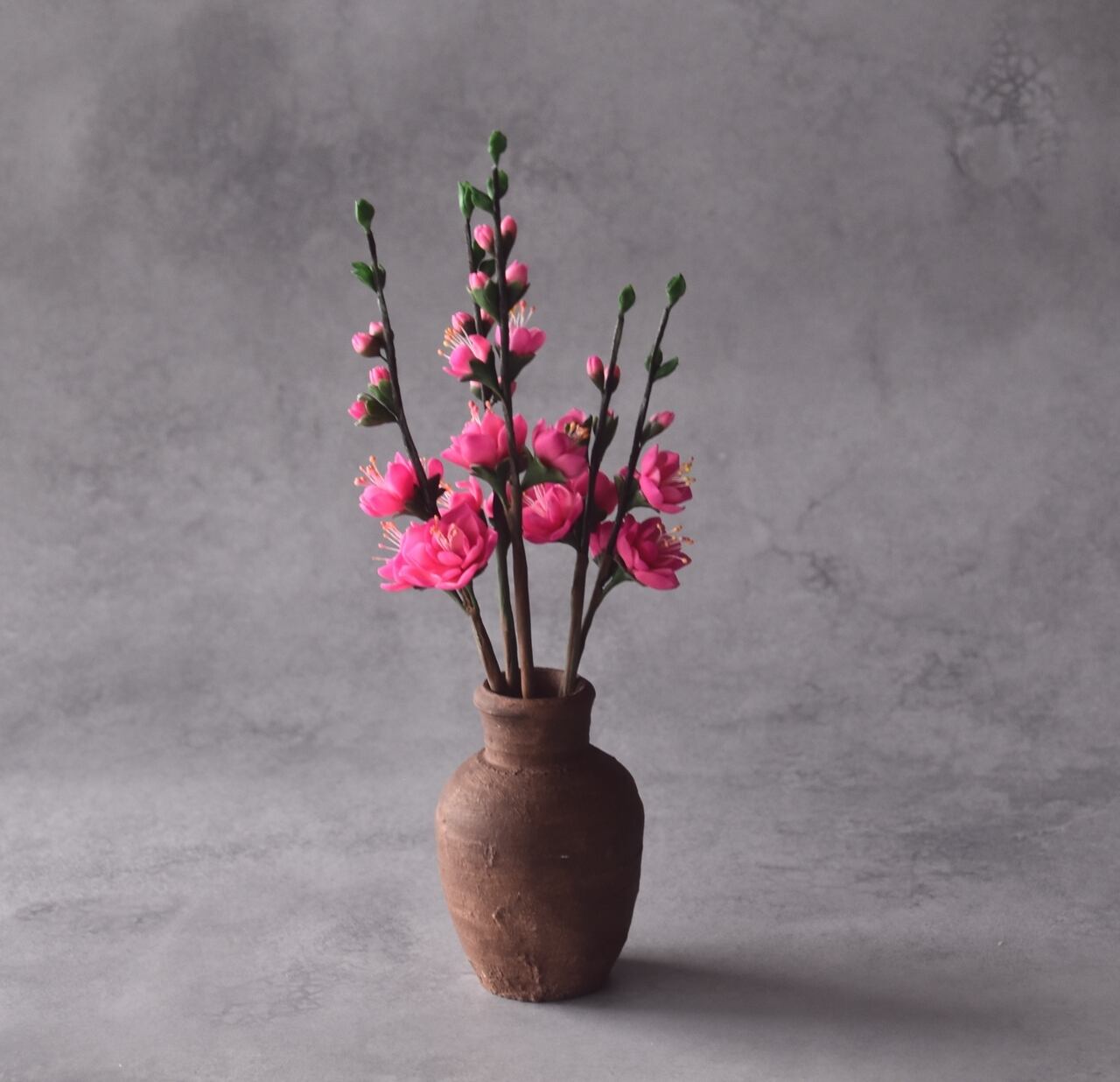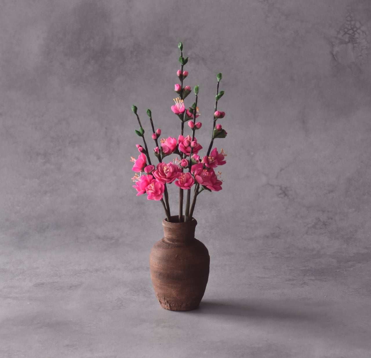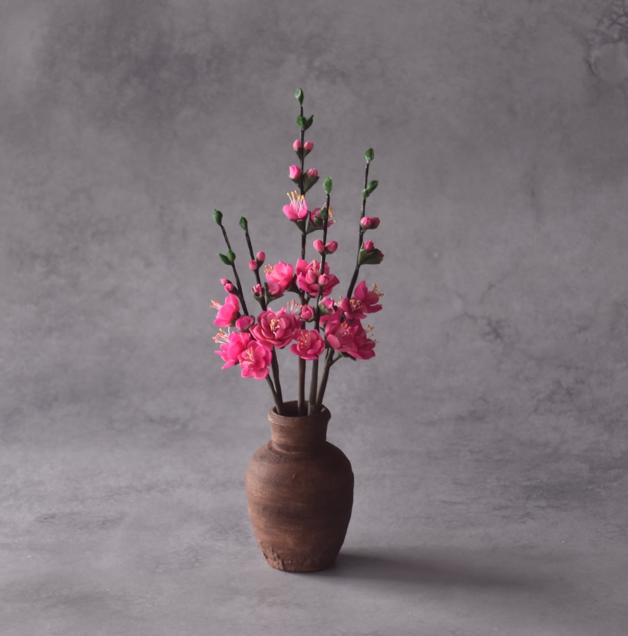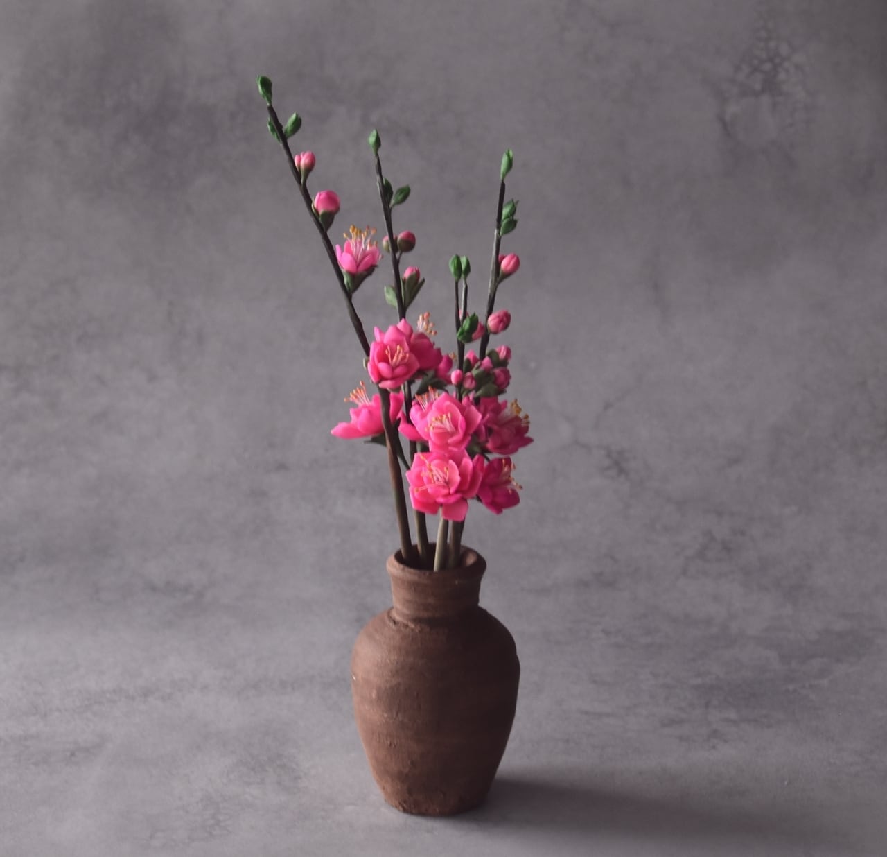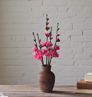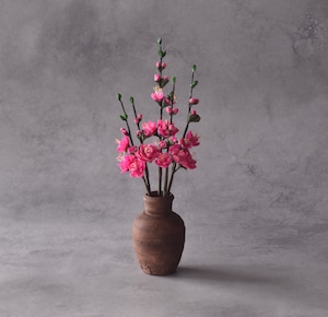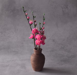 粘土で桃の花をつくり、小さな壺に生けました。