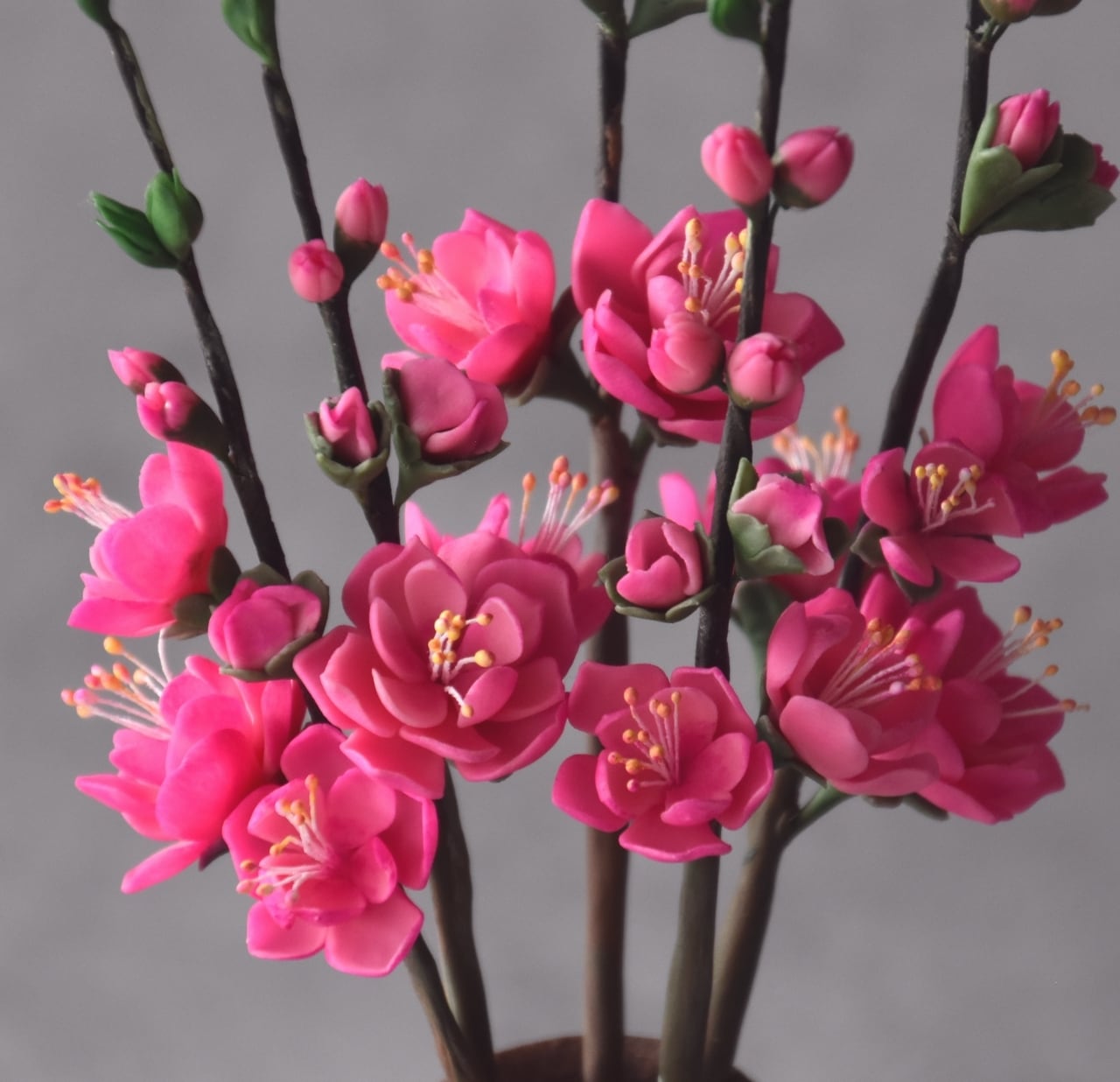 ●桃の花は粘土で制作しています。
