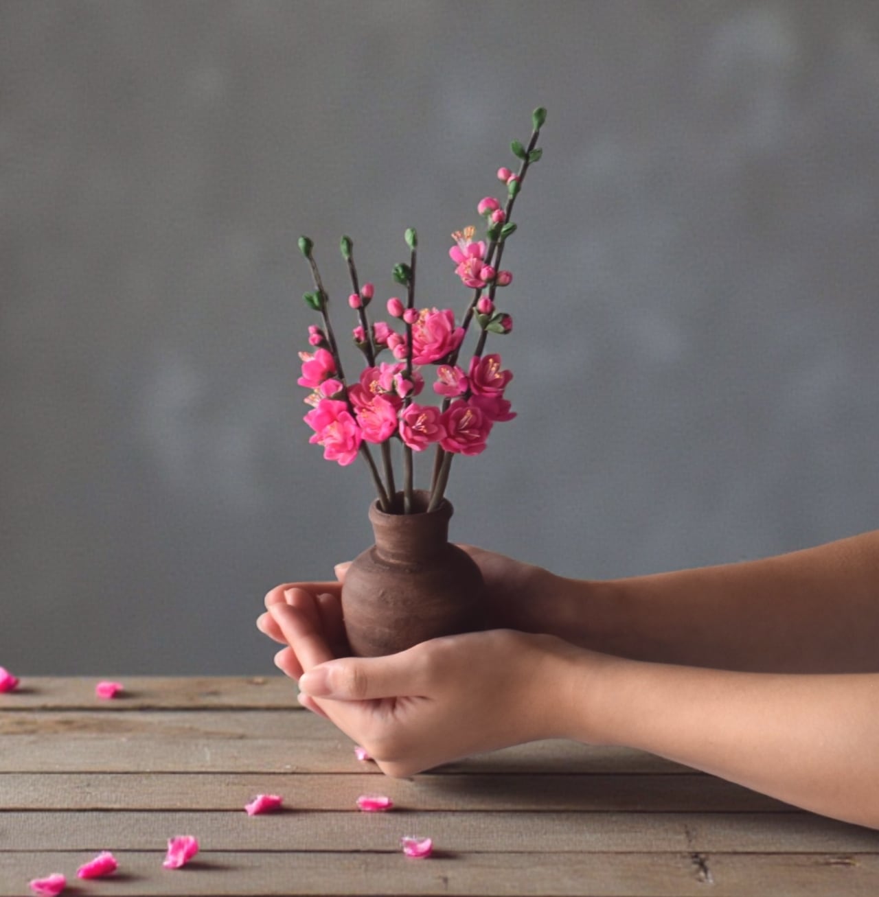 粘土のお花(クレイフラワー)はお水をあげる必要もなく、枯れる心配もありません。