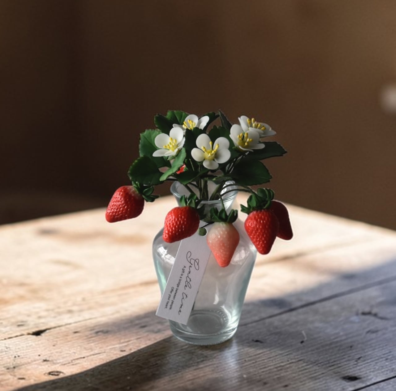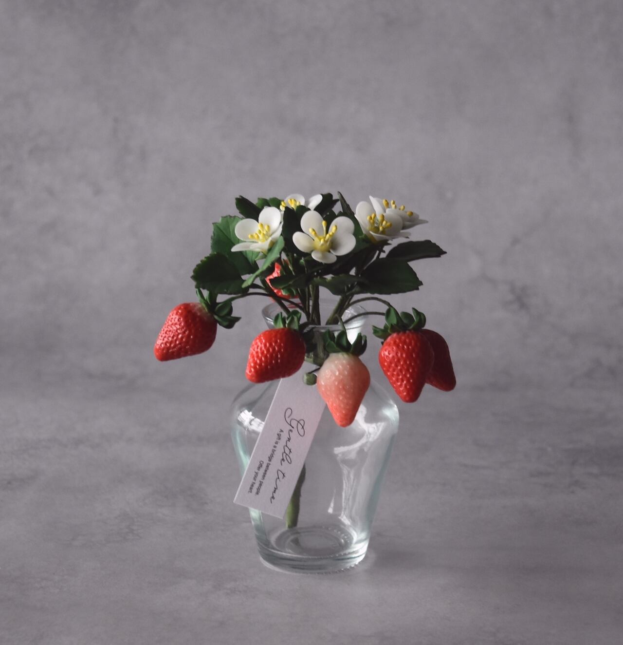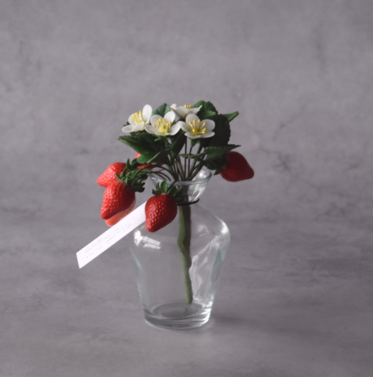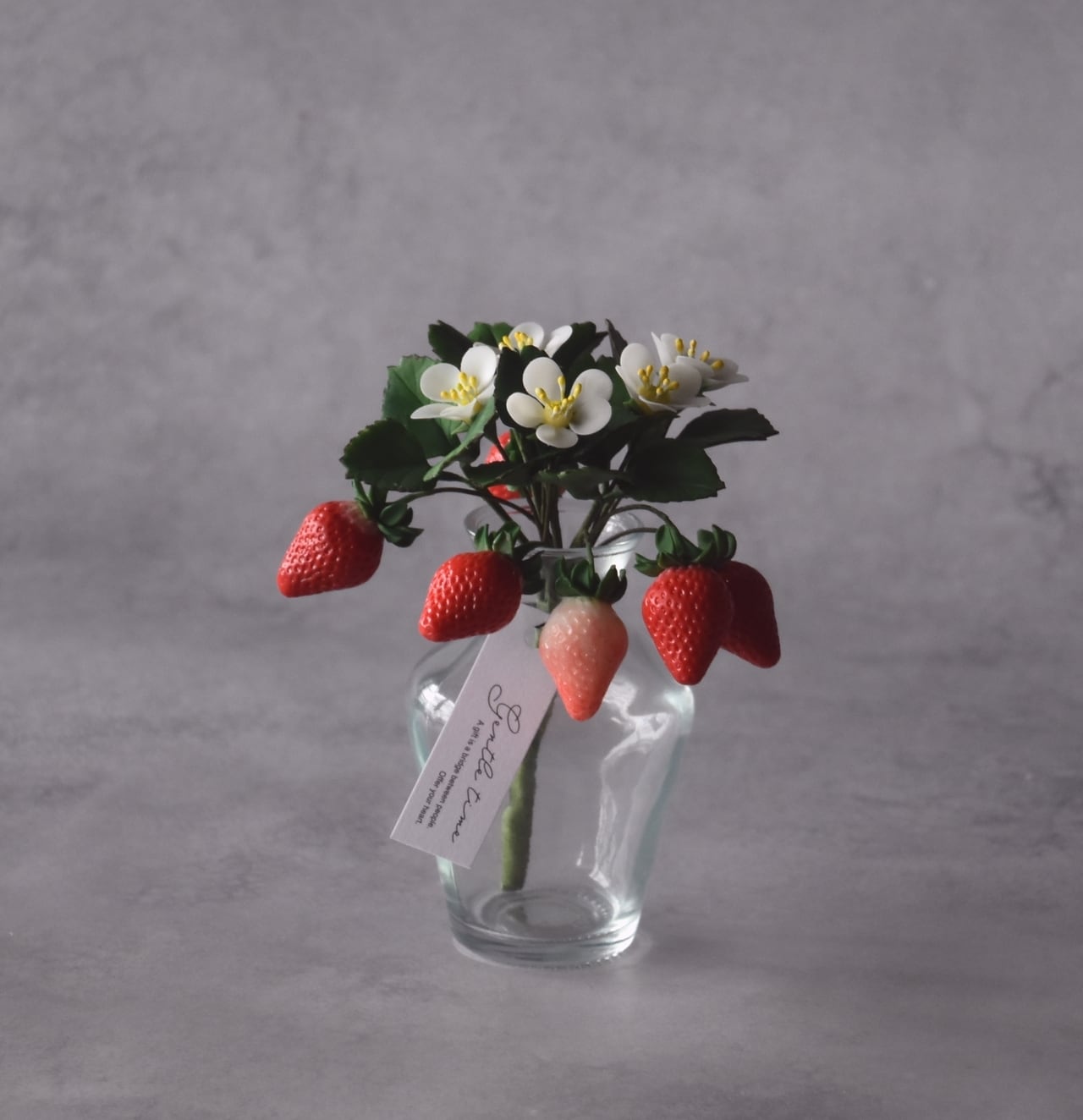 ◆粘土のお花◆イチゴ Ⅰ1405 (花瓶 クリア)