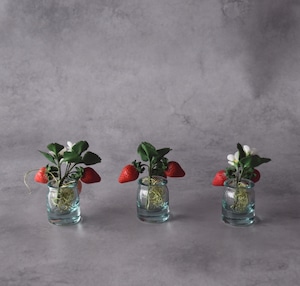粘土で苺をつくり、小さな花瓶に飾りました。