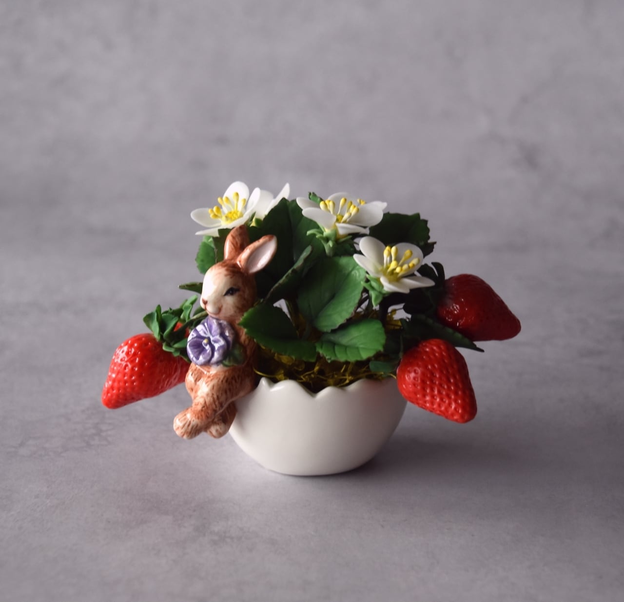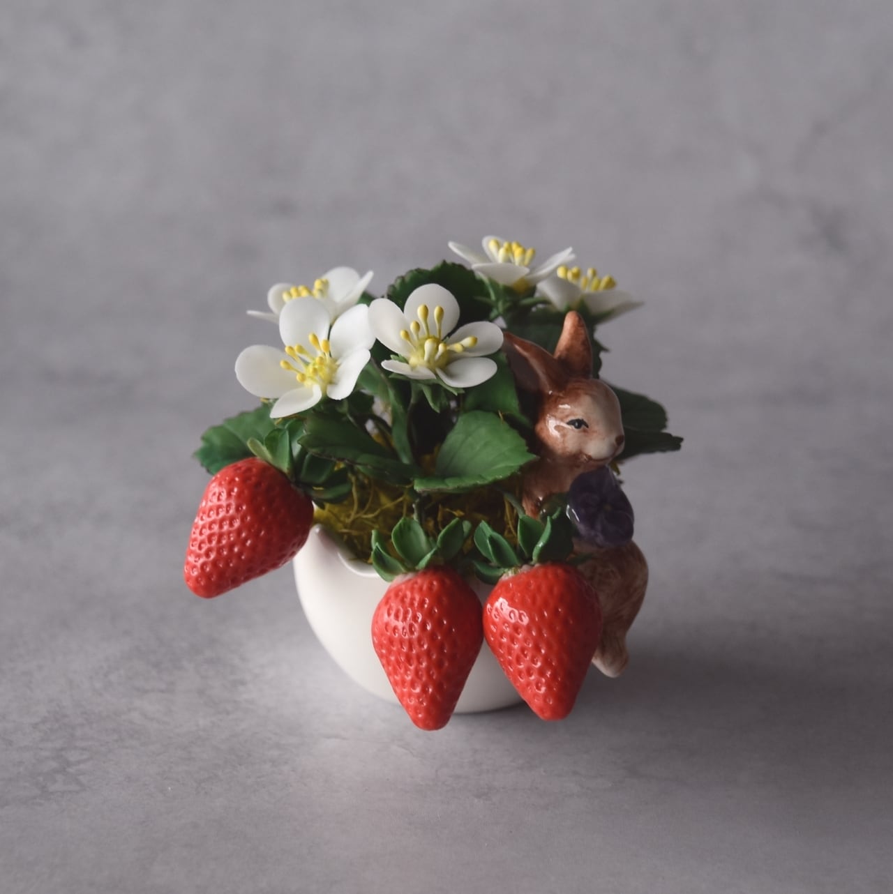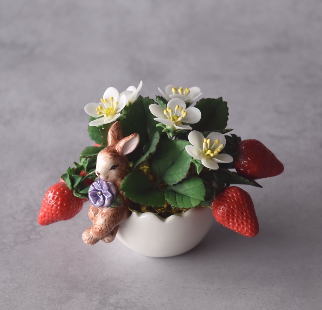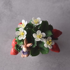 ◆粘土のお花◆苺の ミニ鉢植え|うさぎカップの可愛いインテリアⅠ1407