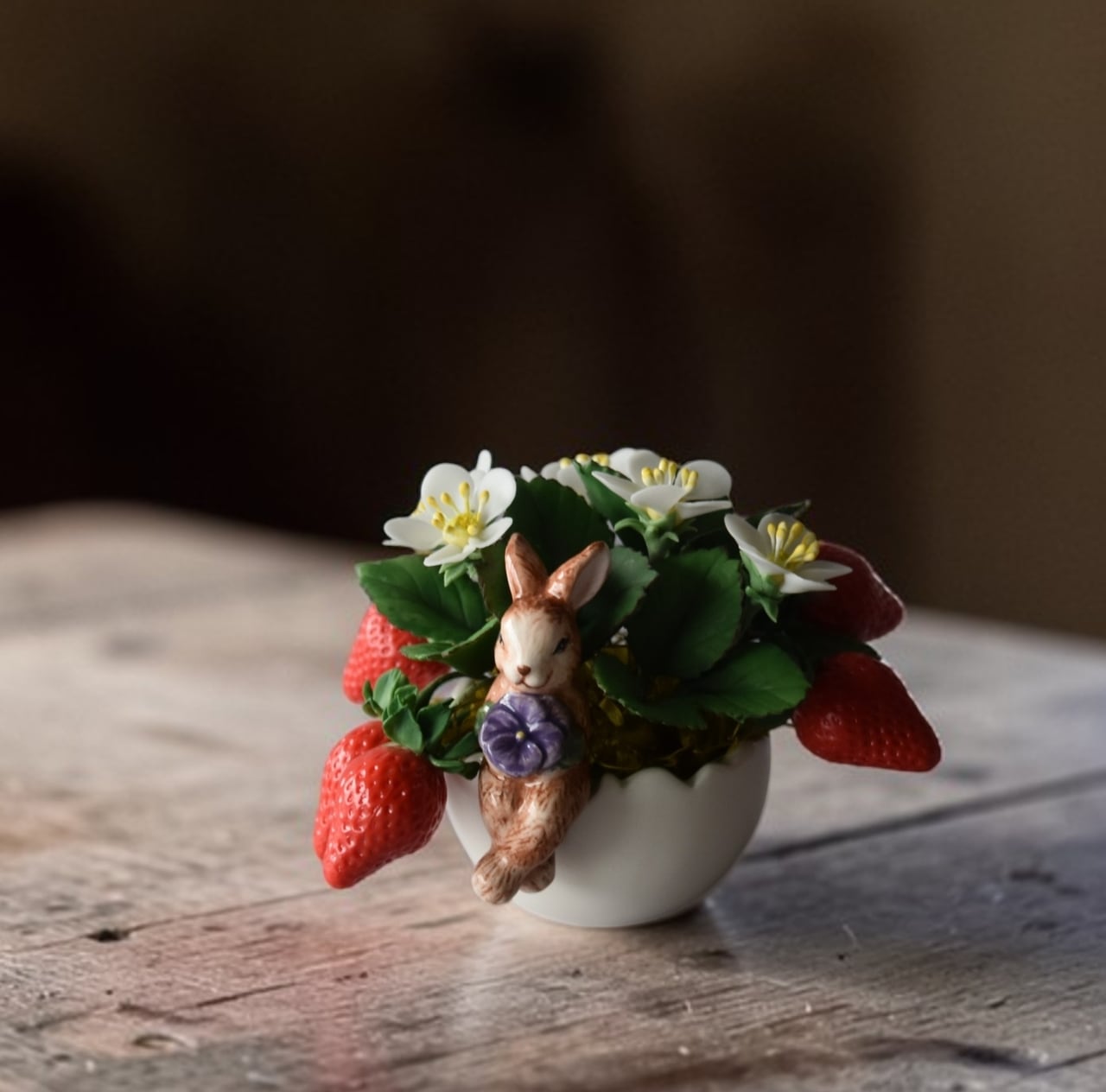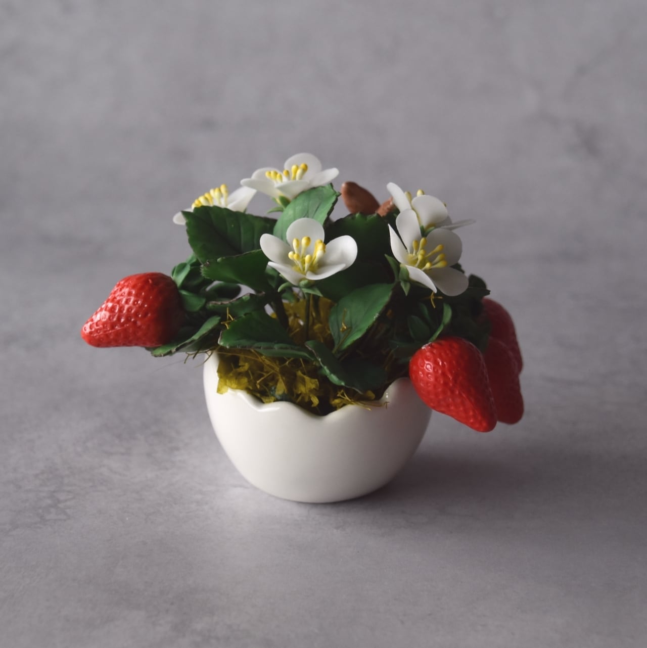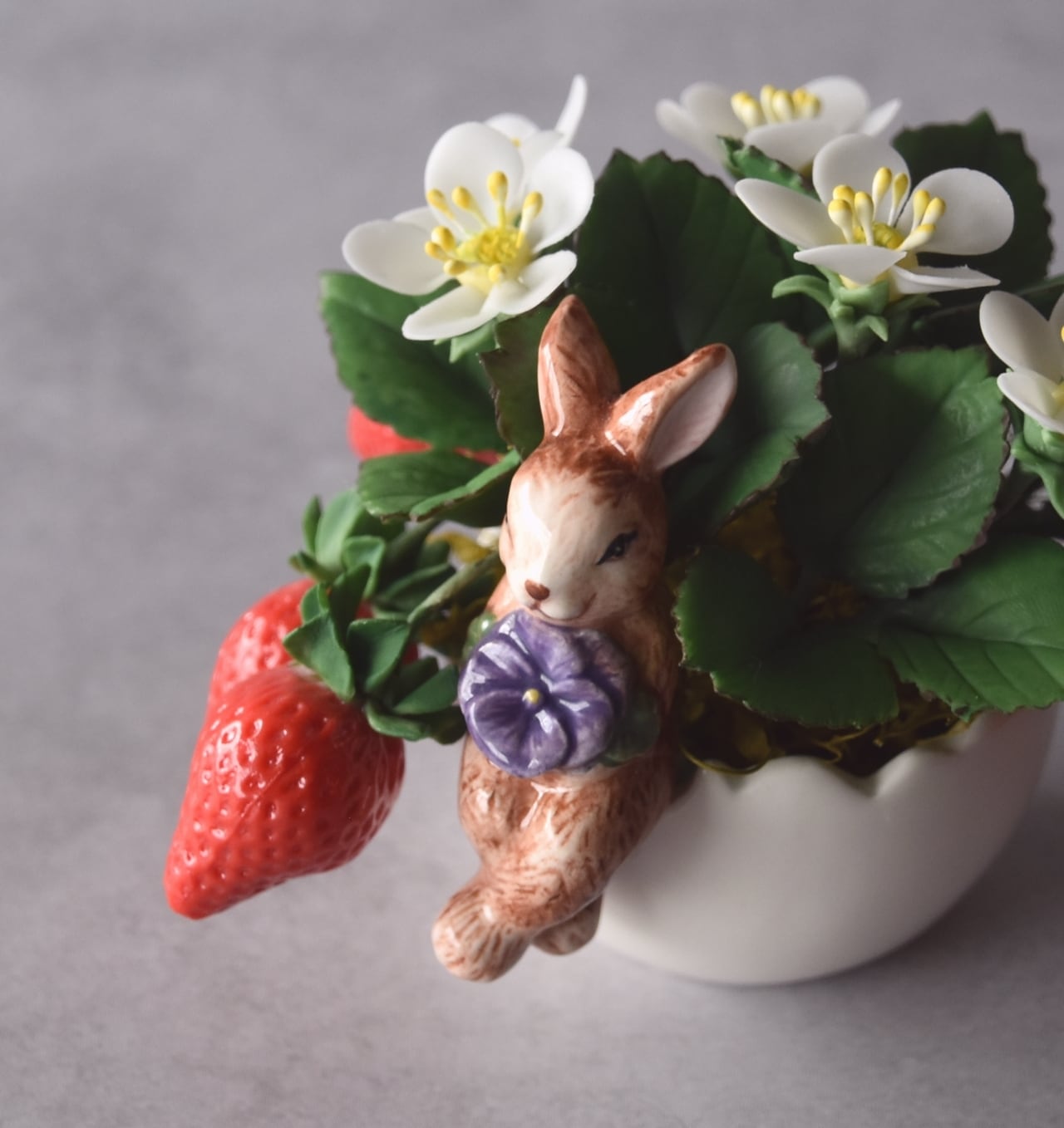 ◆粘土のお花◆苺の ミニ鉢植え|うさぎカップの可愛いインテリアⅠ1407
