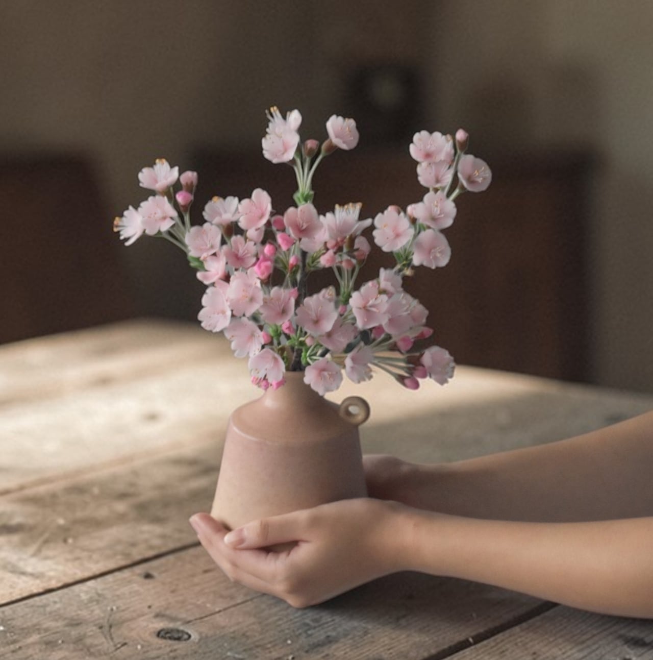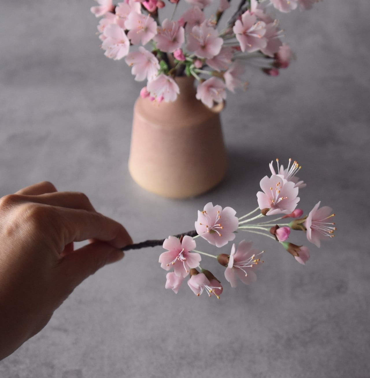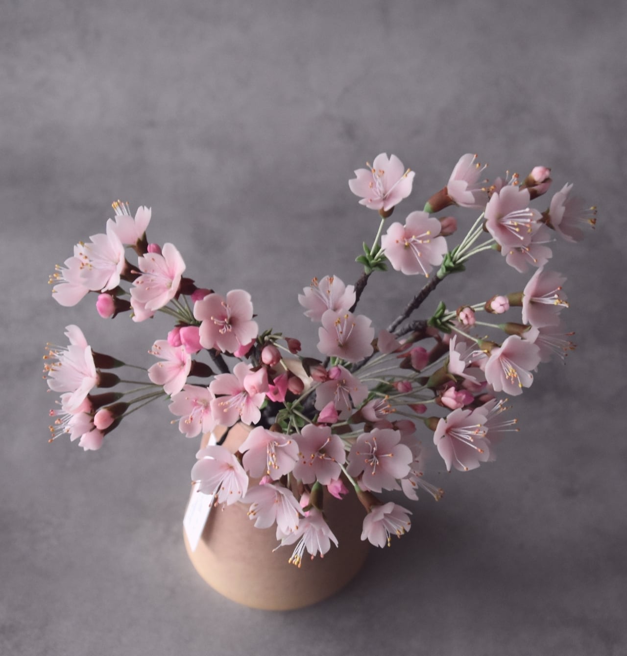 小さな花びらを一枚一枚丁寧に形づくり、やわらかな春の光の中でふんわりと咲く姿を思い描きながら制作いたしました。